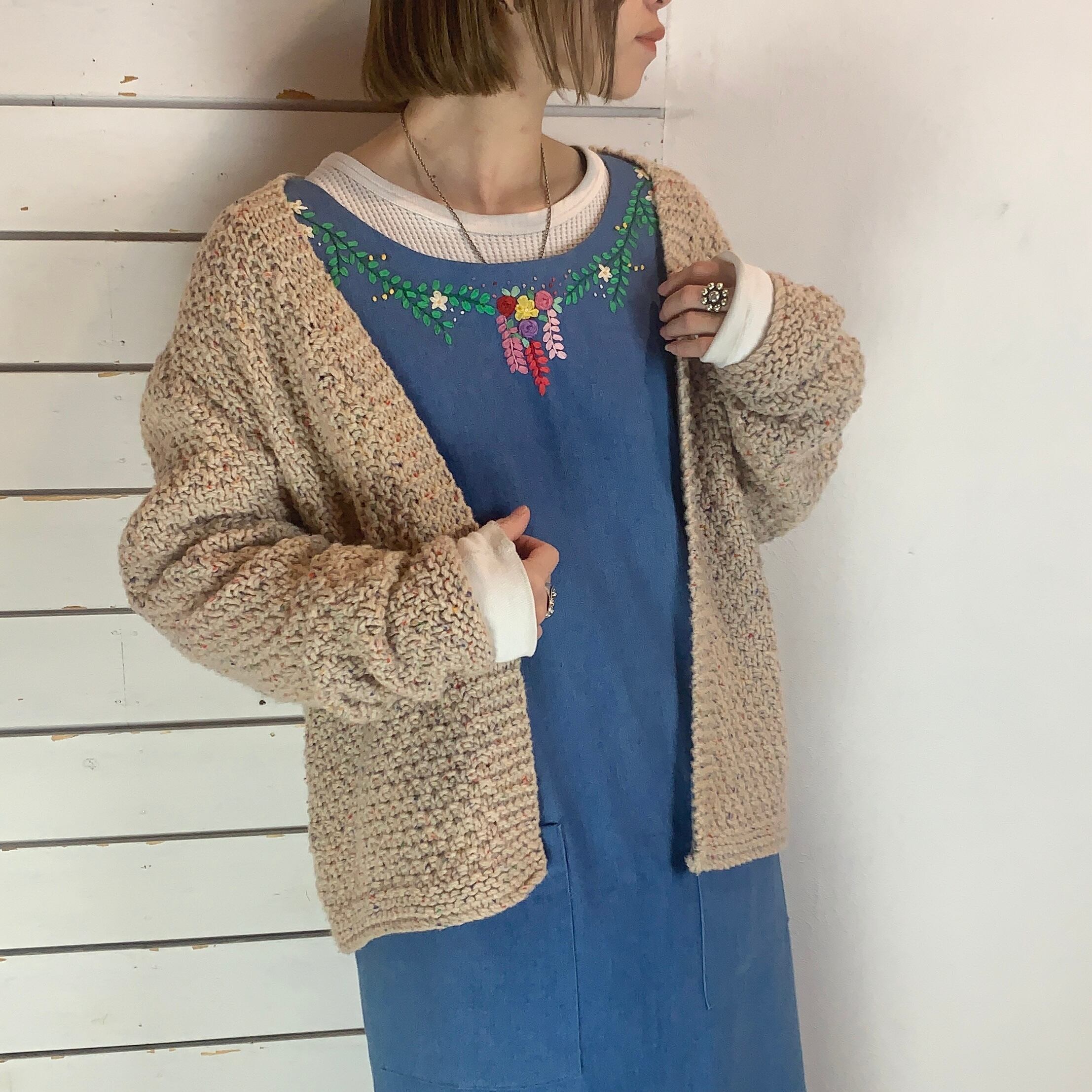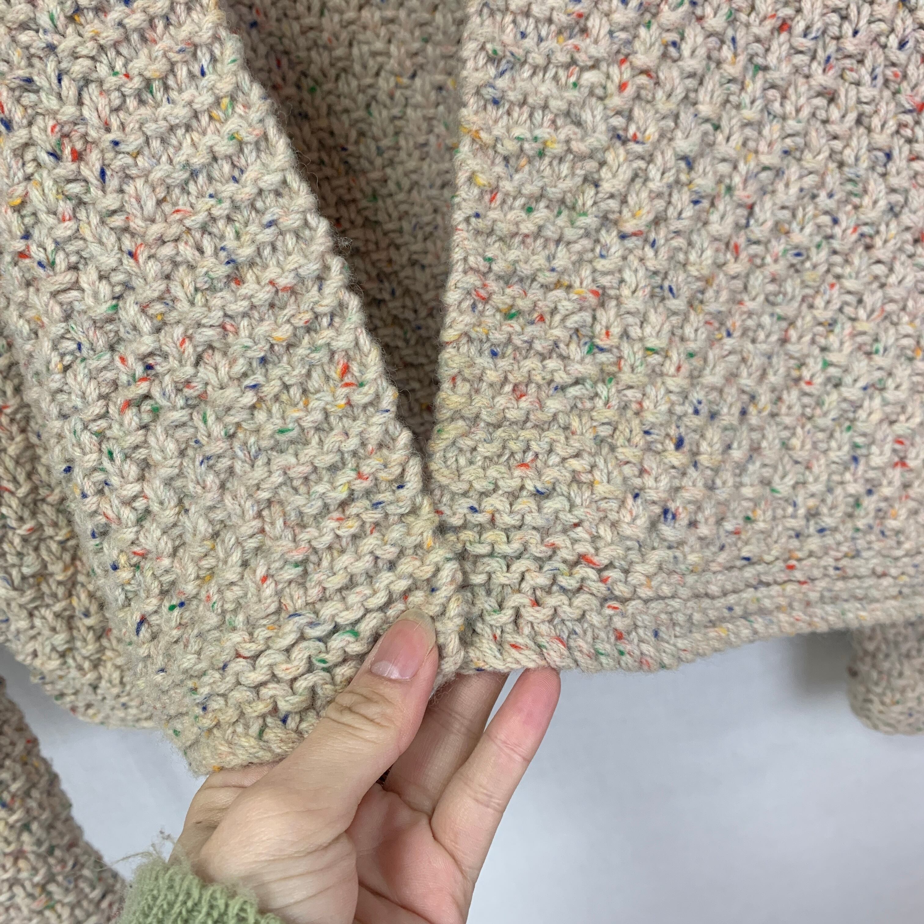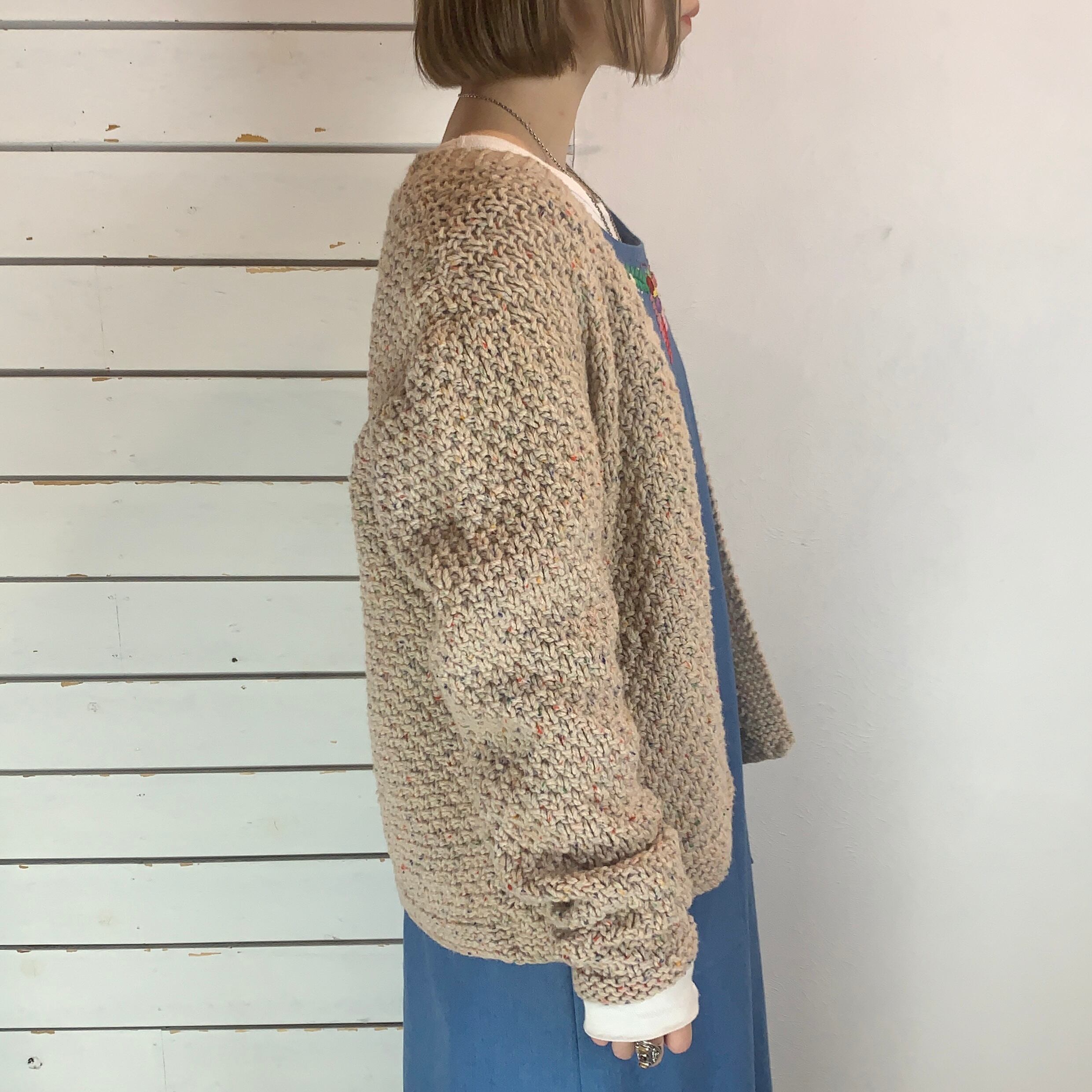 春らしいベビーピンクにカラフルなネップが入ったニットカーディガン