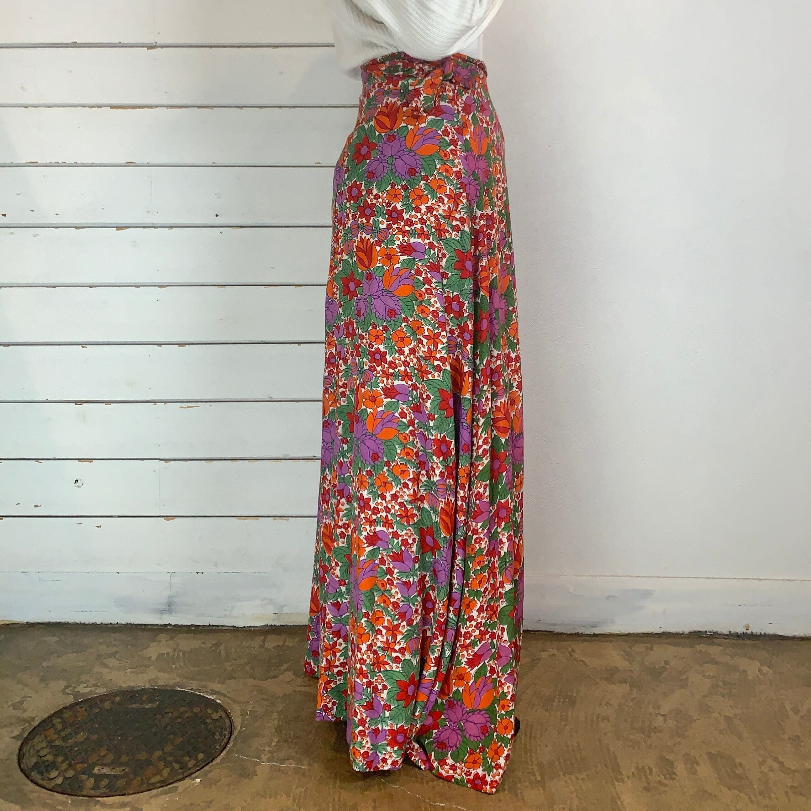 華やかさと大人っぽさが両方見える花柄ラップスカート