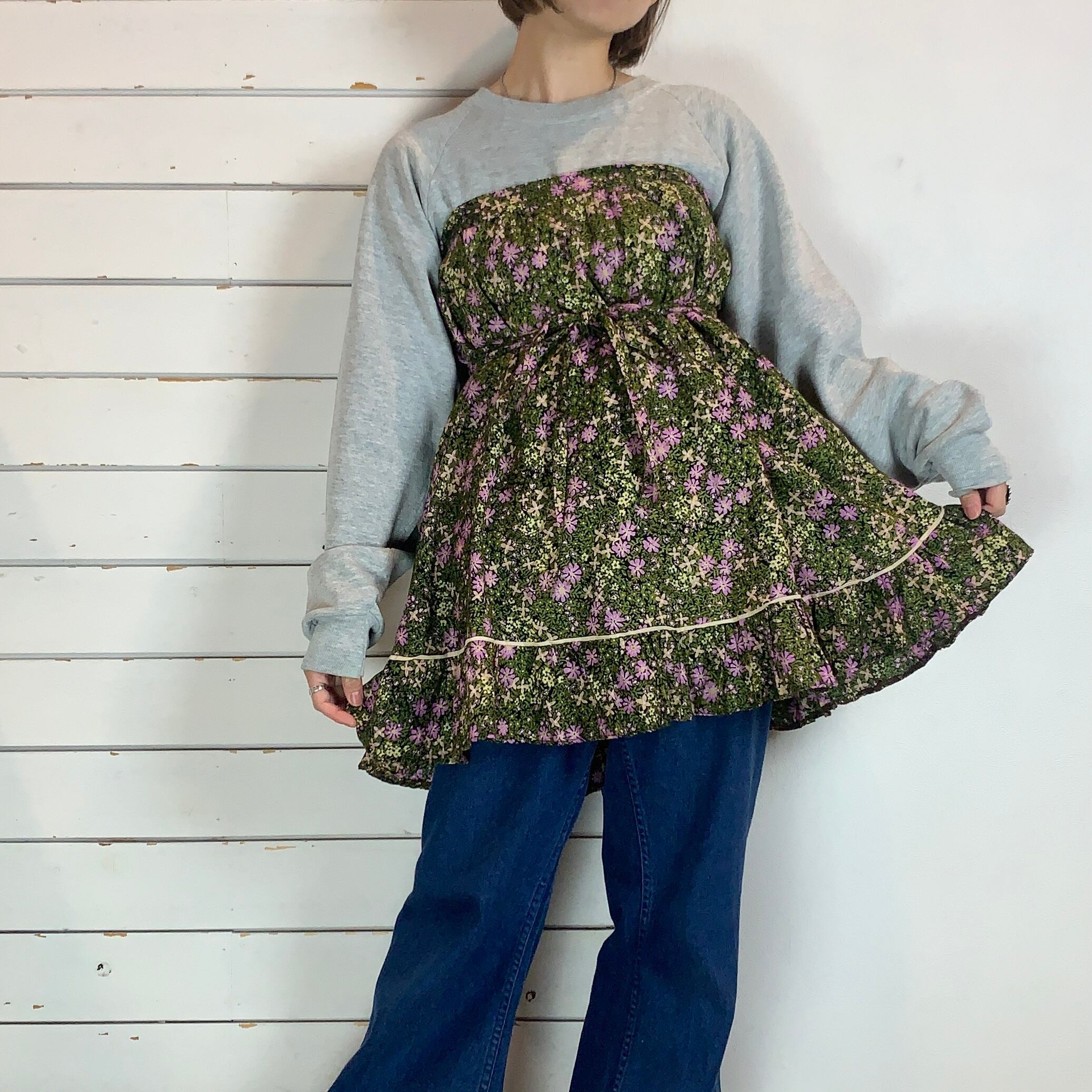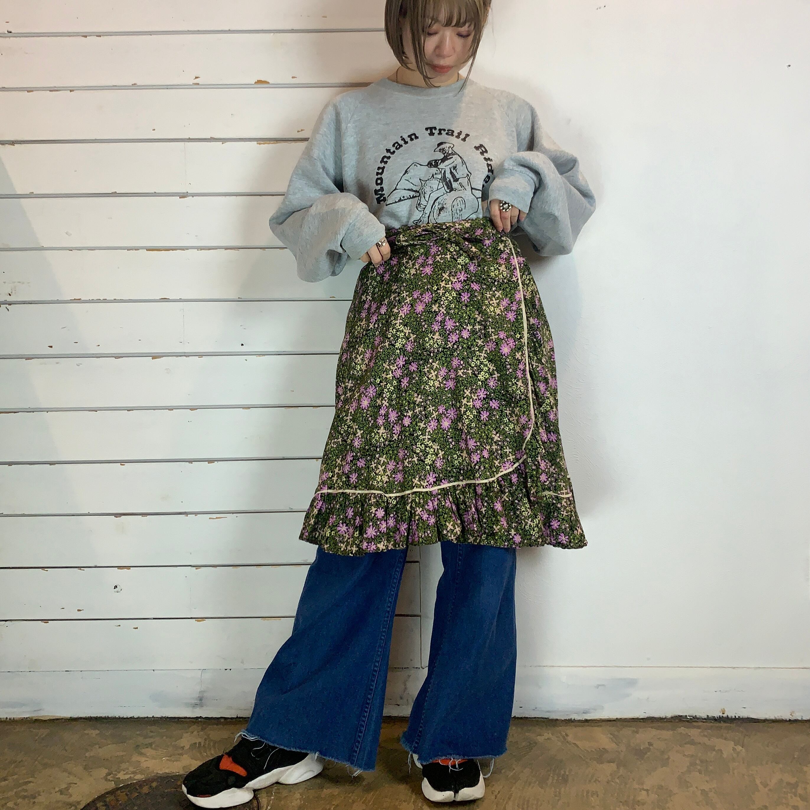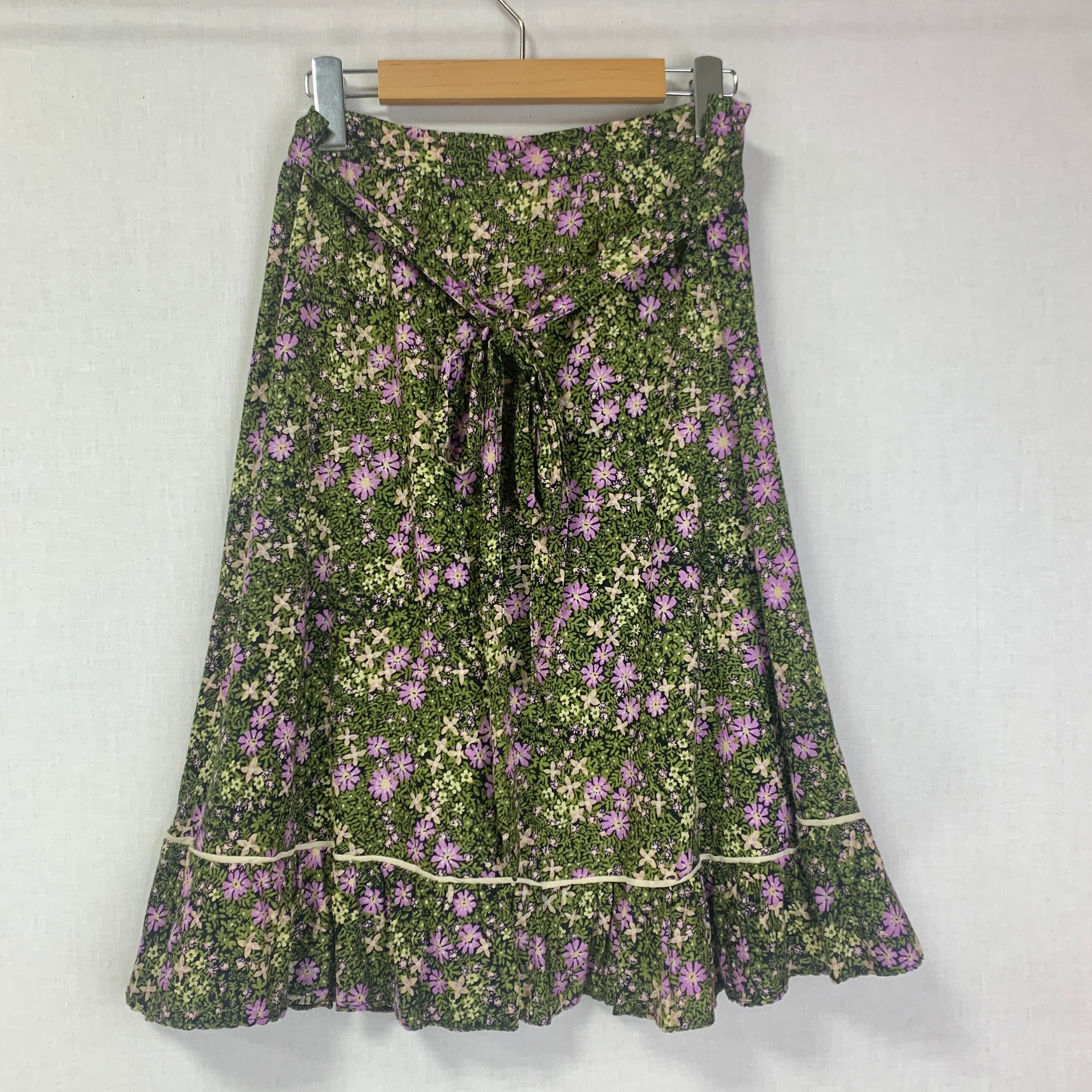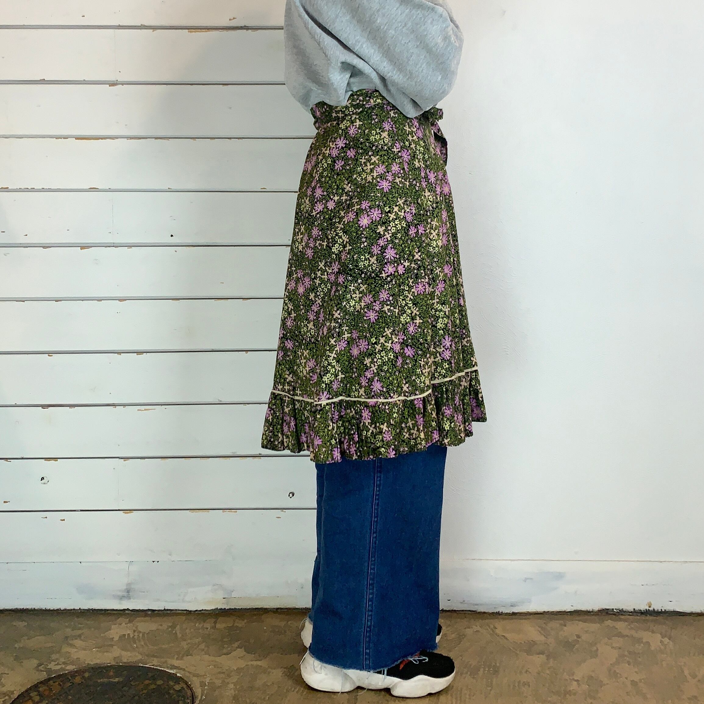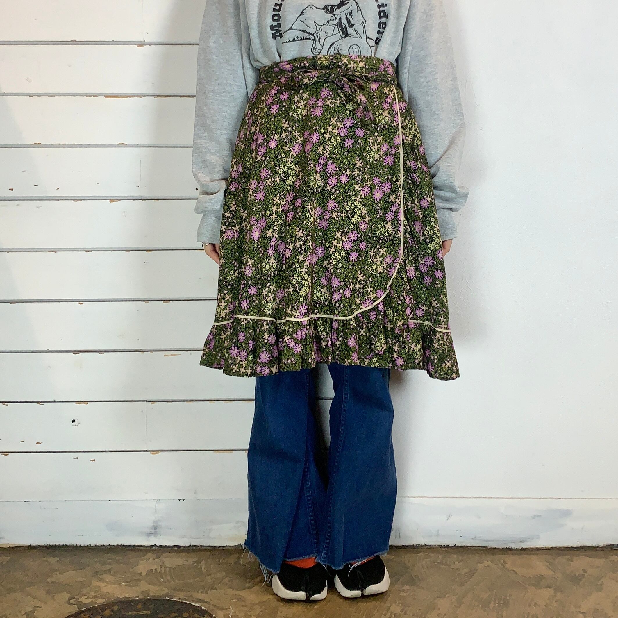 ラベンダー色のお花がアクセントの花柄巻きスカート