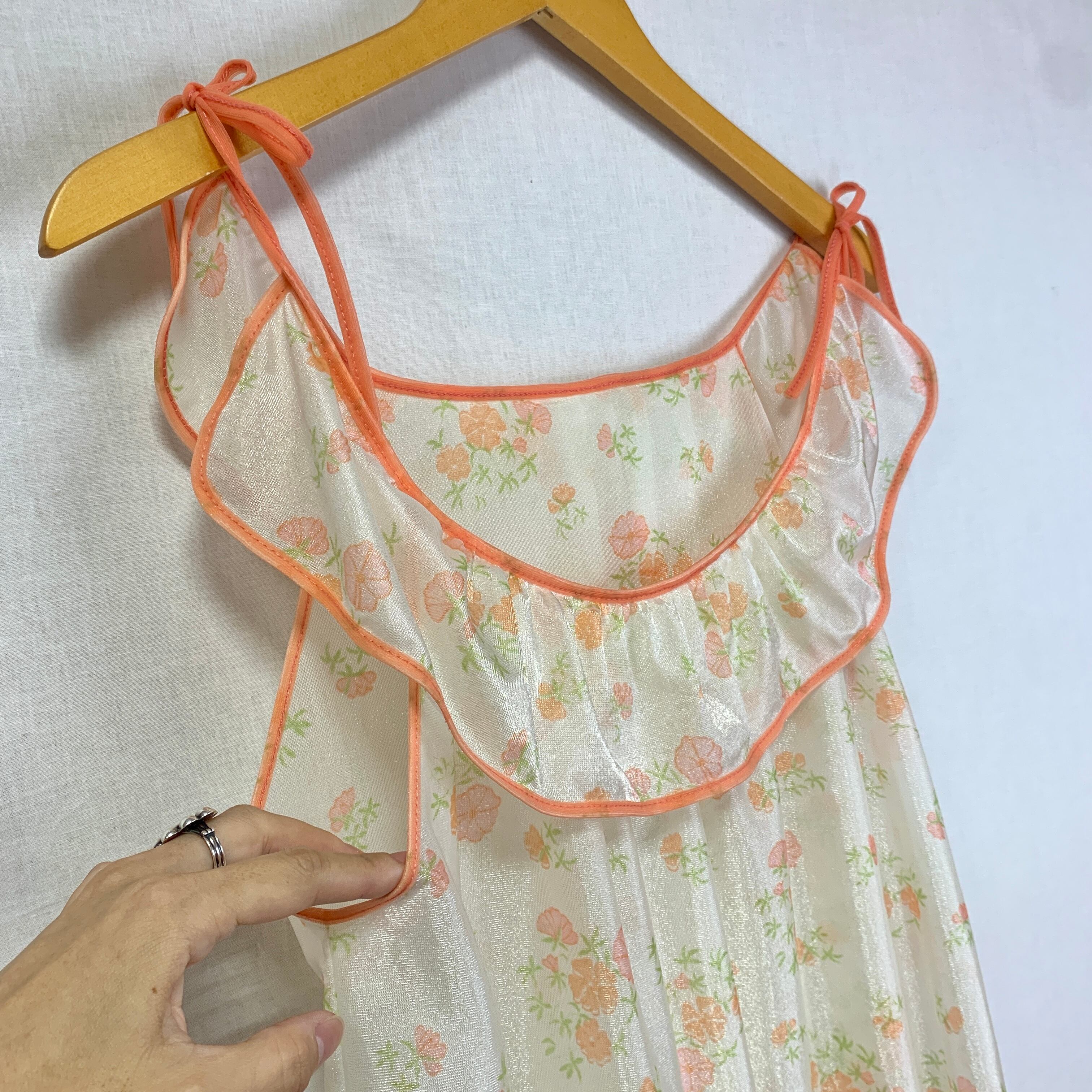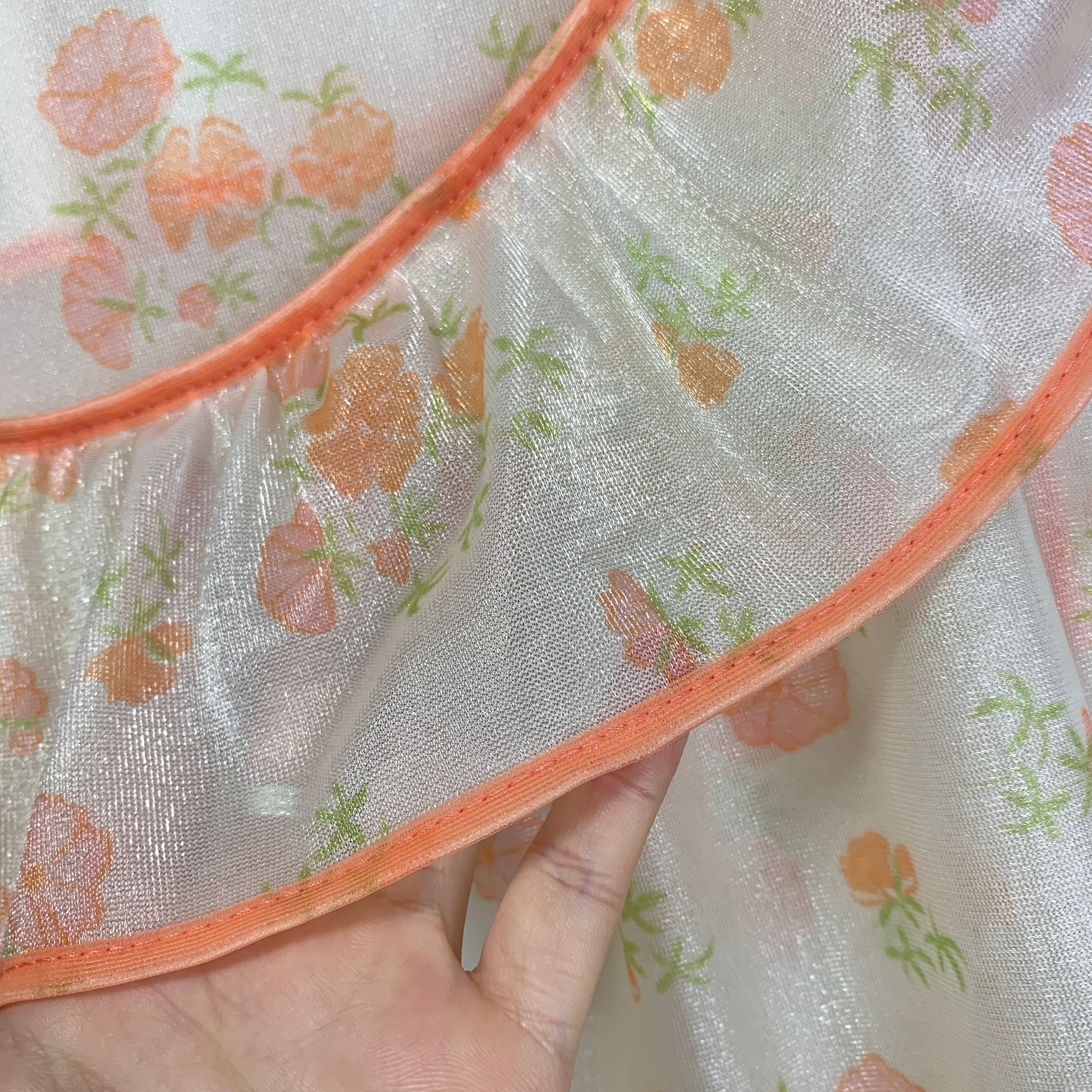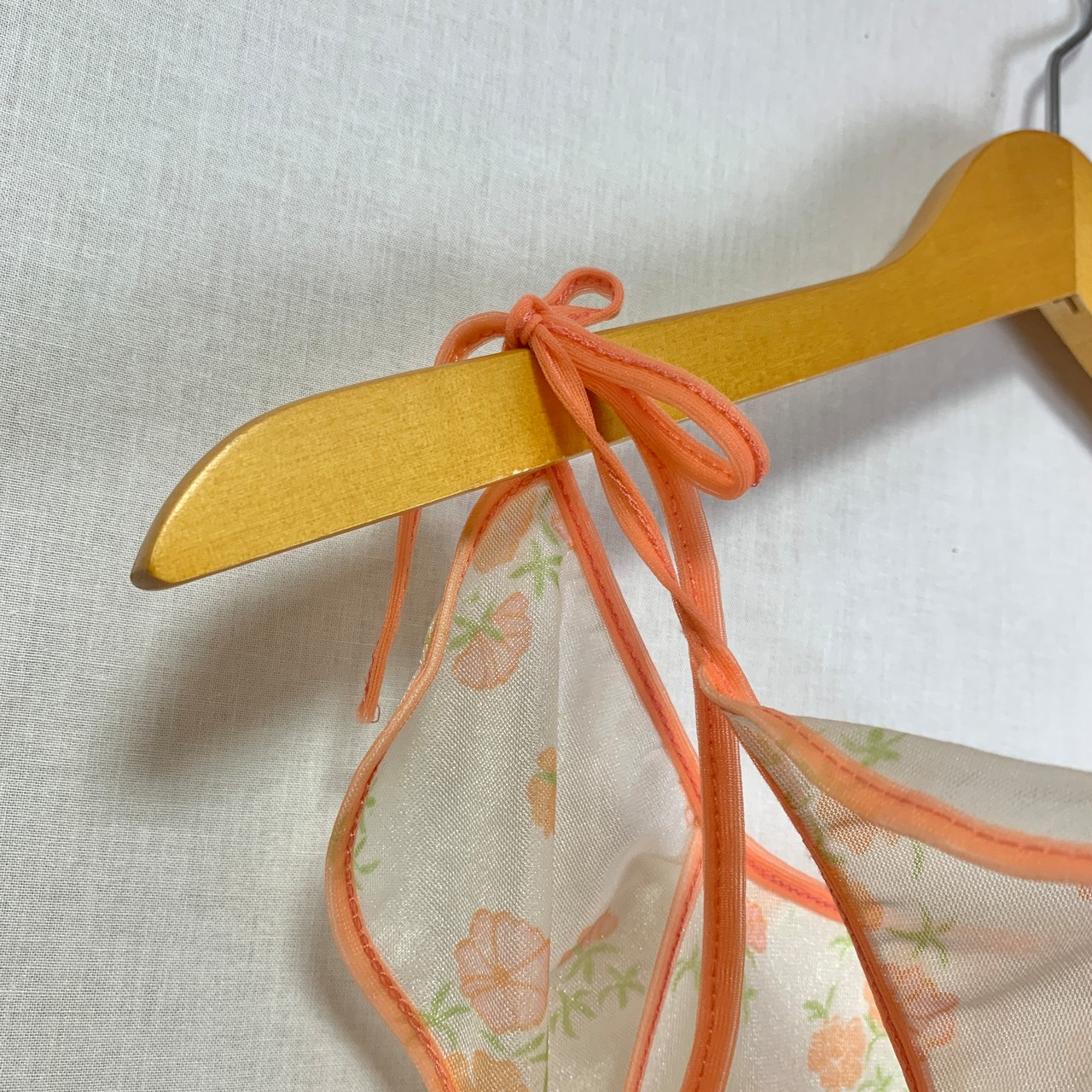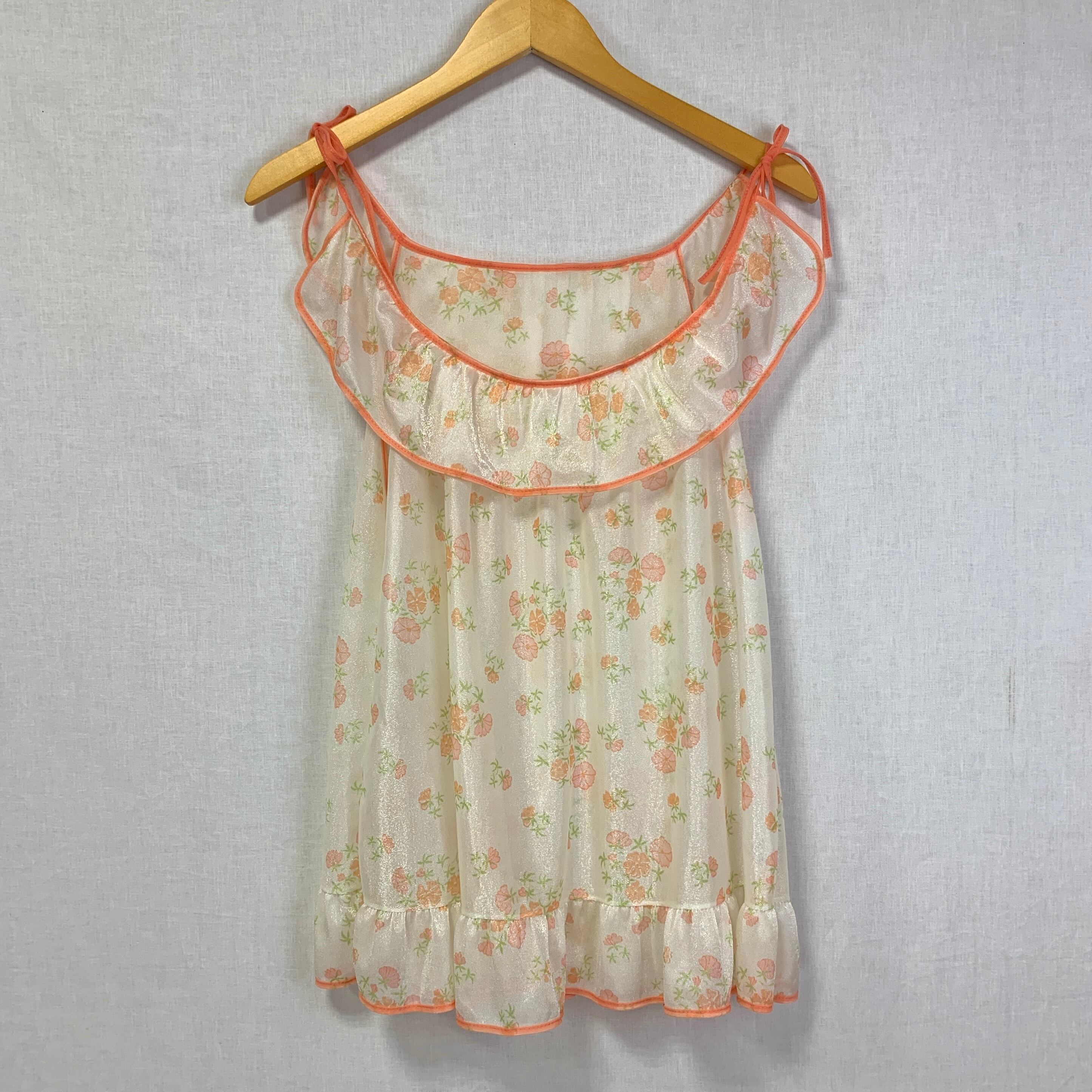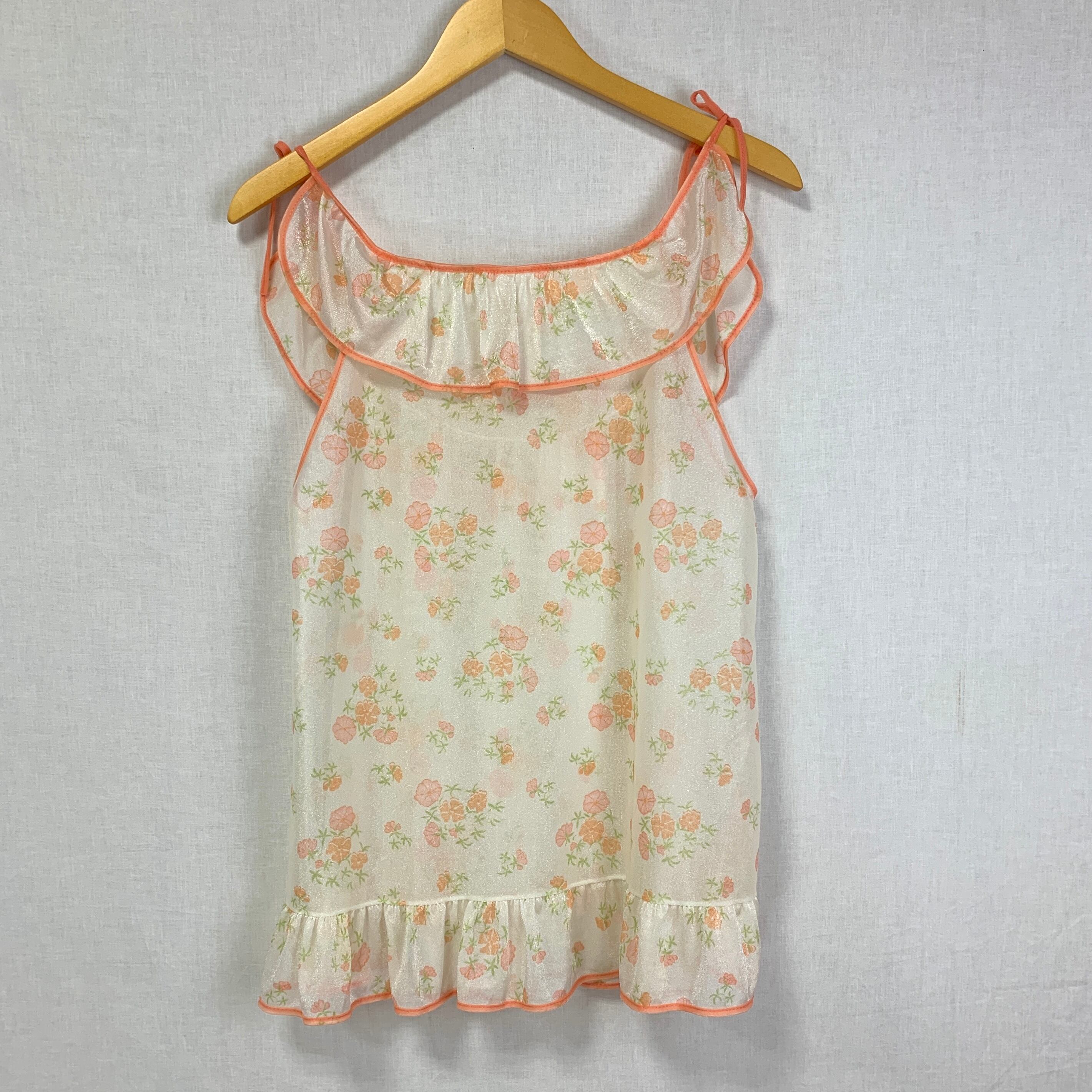花柄にコーラルピンクのパイピングがかわいいランジェリートップス