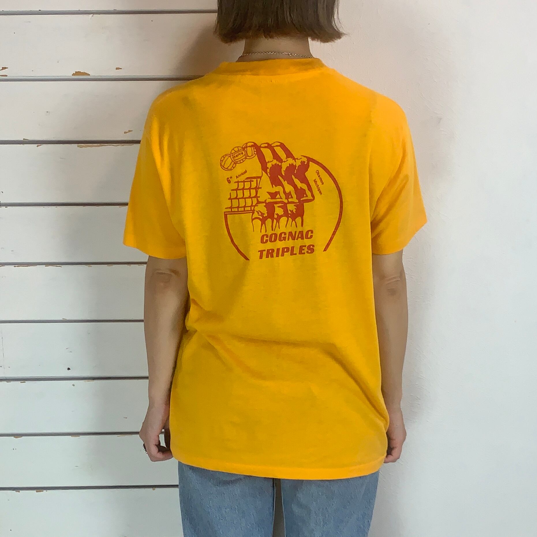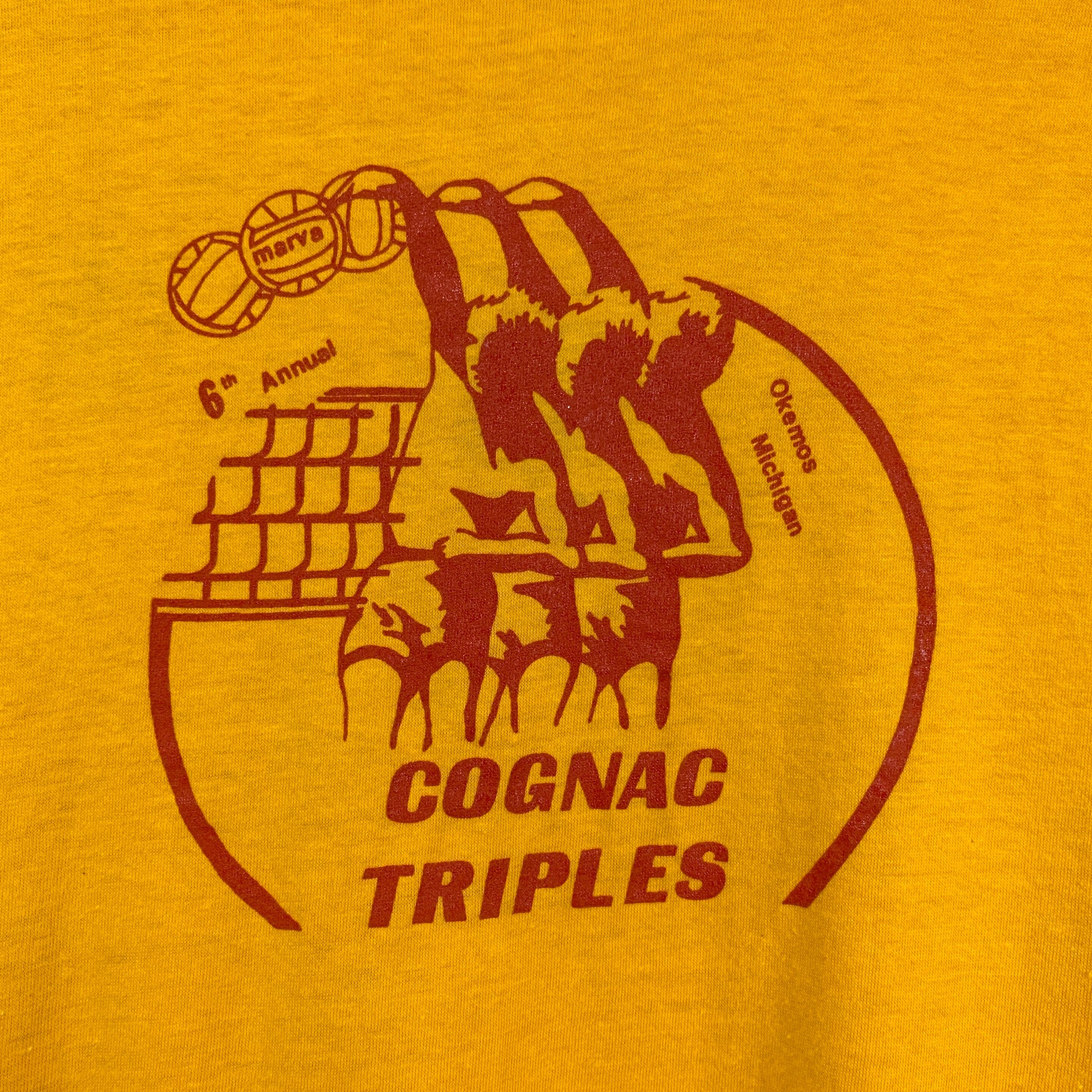 おそらくブランデーvsop cognacにまつわるプリント(バックに3人いるのtriplesとかけてるのかな)