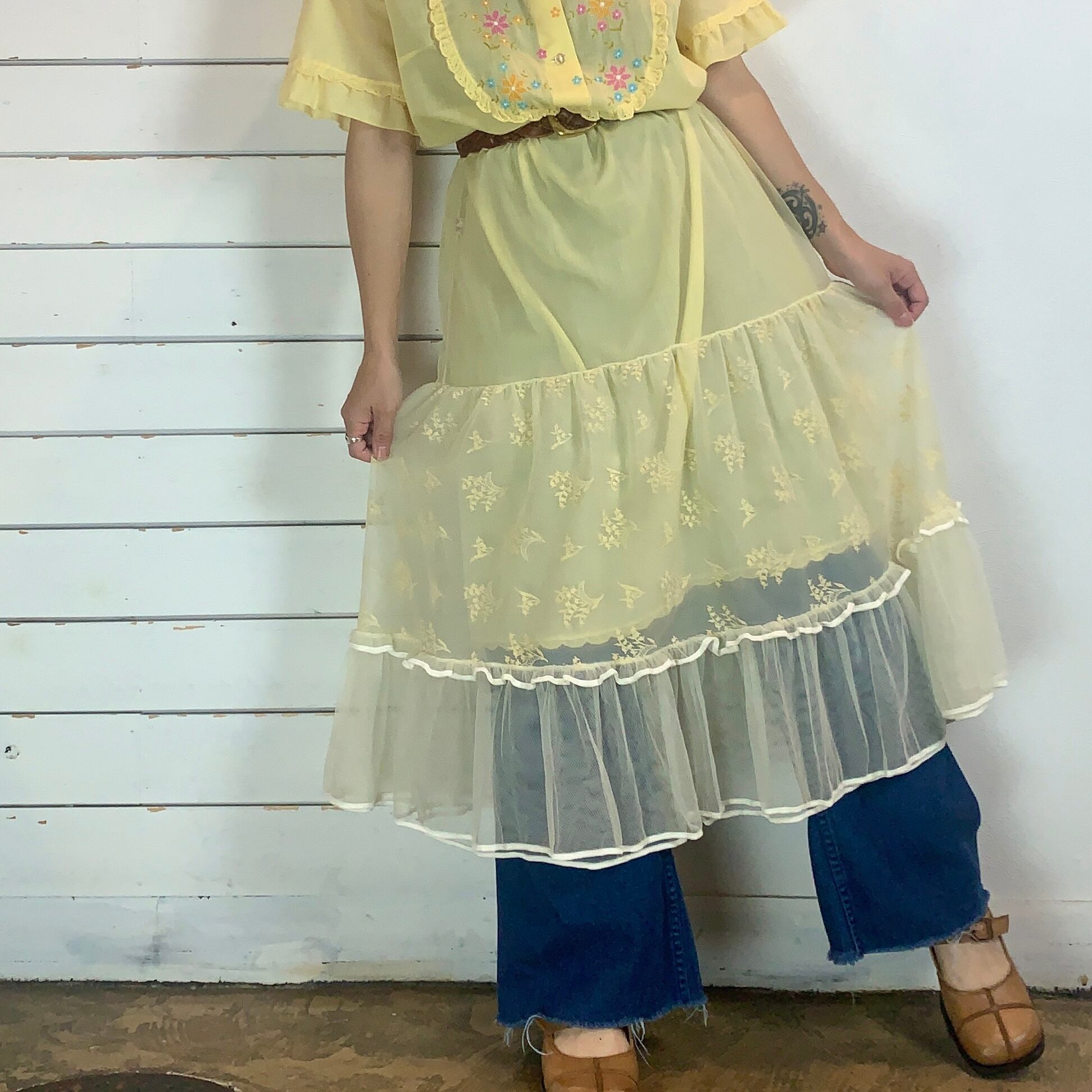 パンツやスカートの上から重ねて透け感を楽しむのも良し、下にしのばせ裾だけ見せても◉