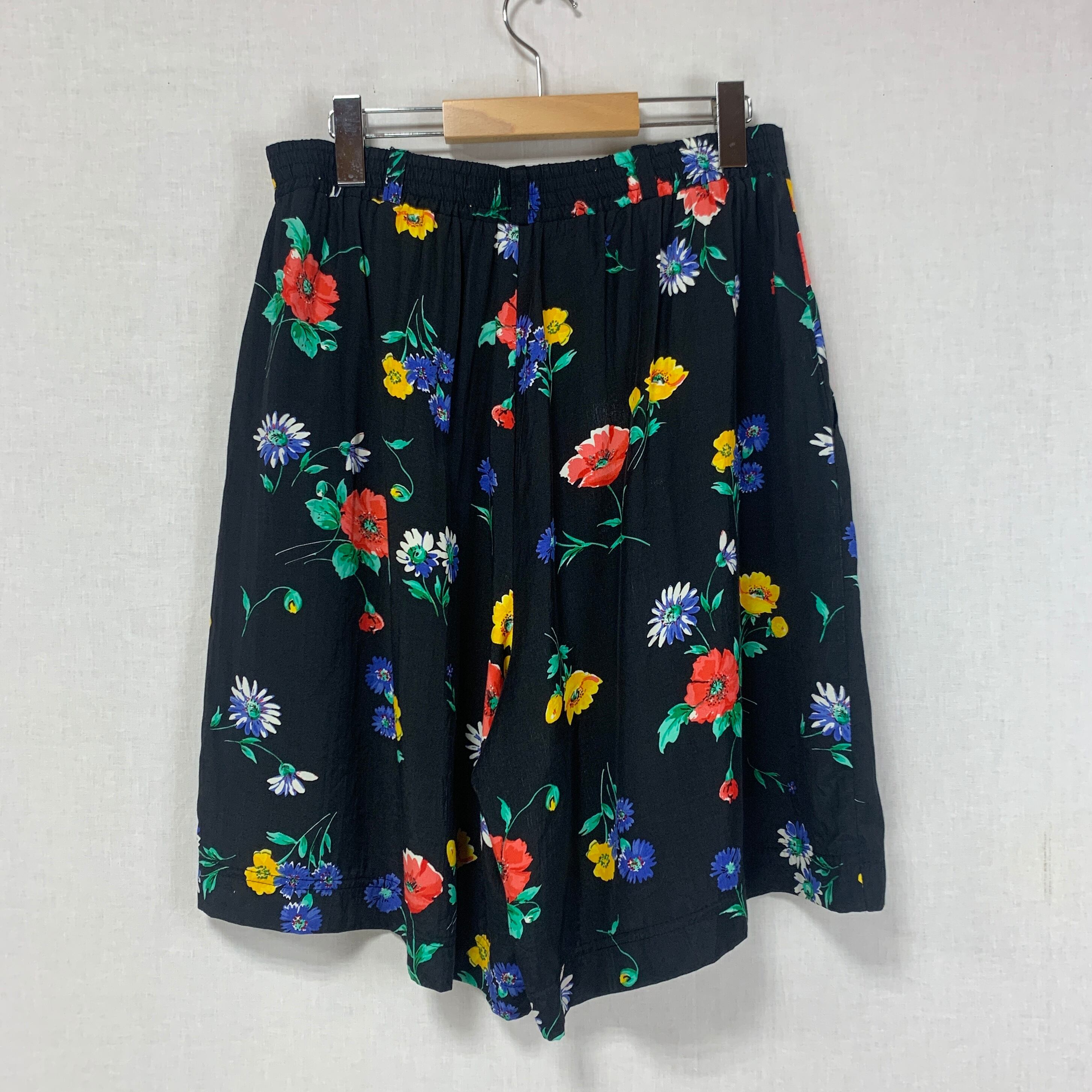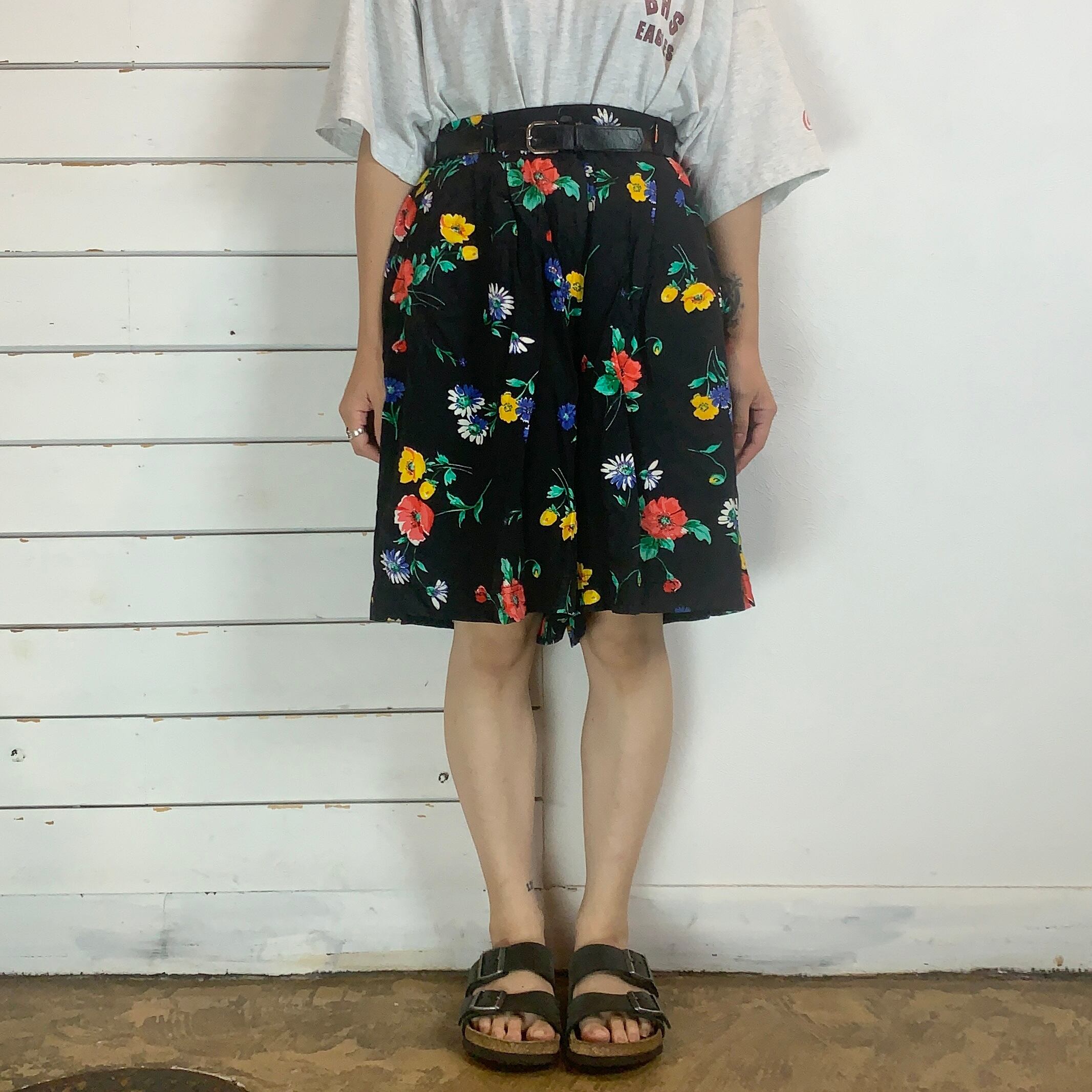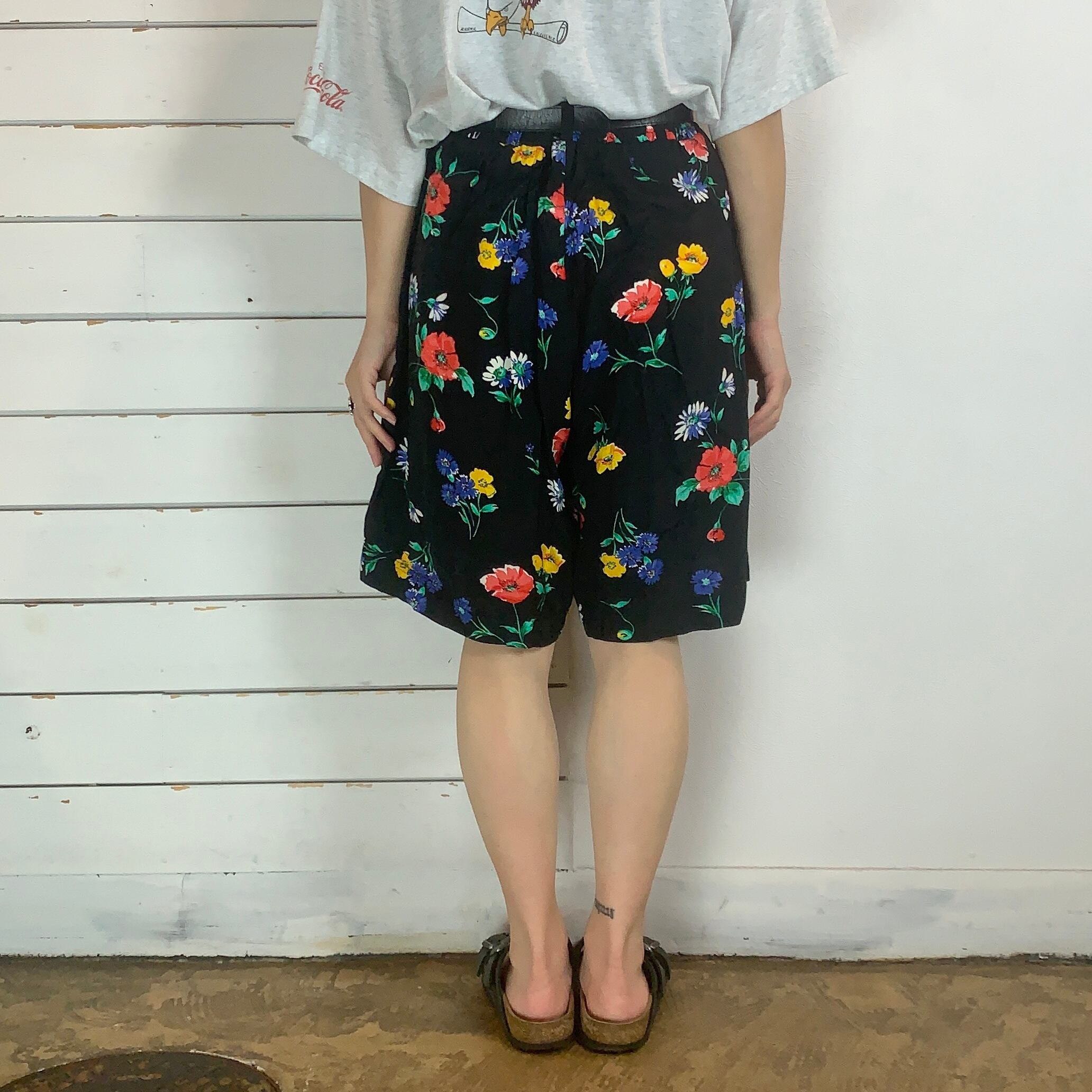 ブラックにカラフルな花柄で大人めなハーフパンツ