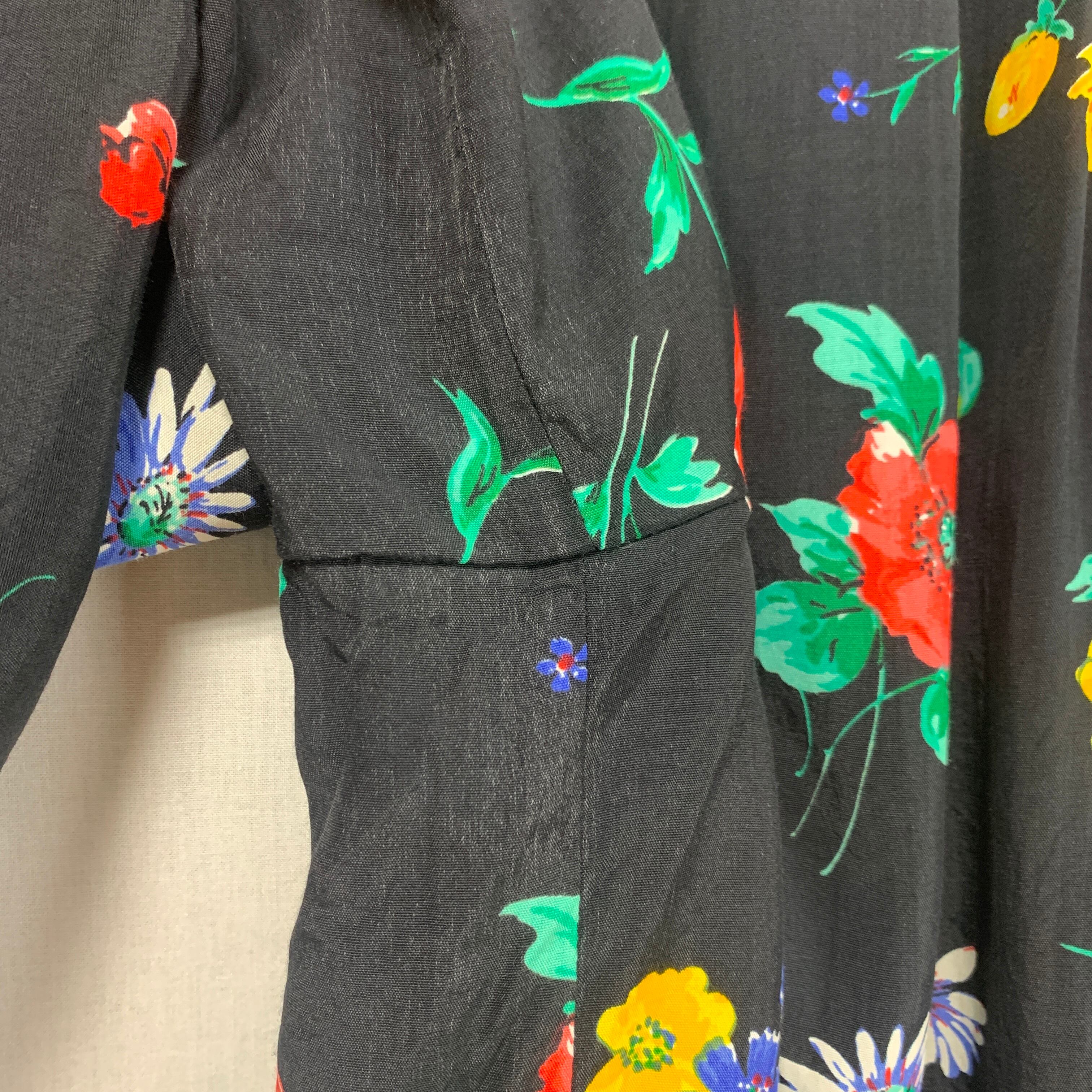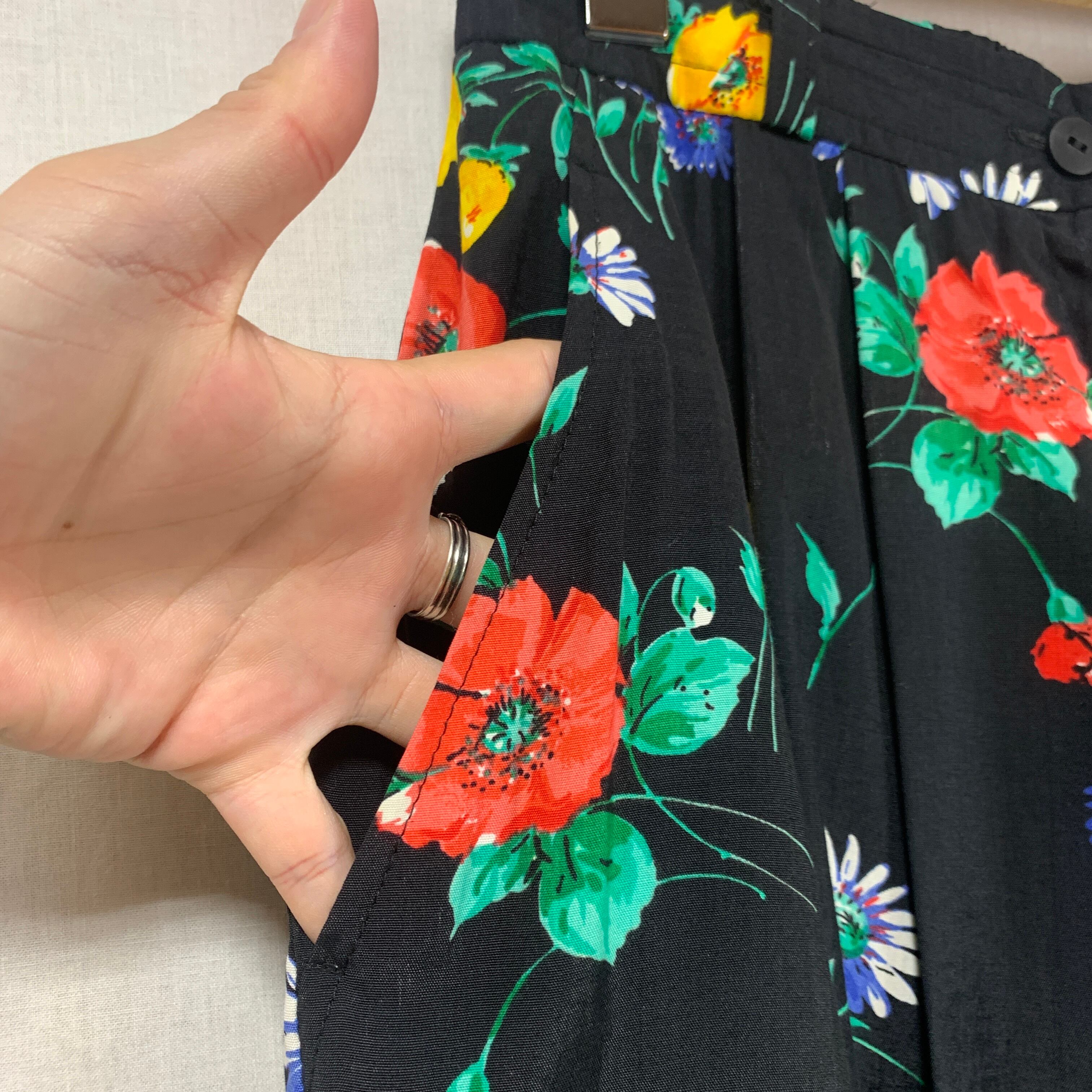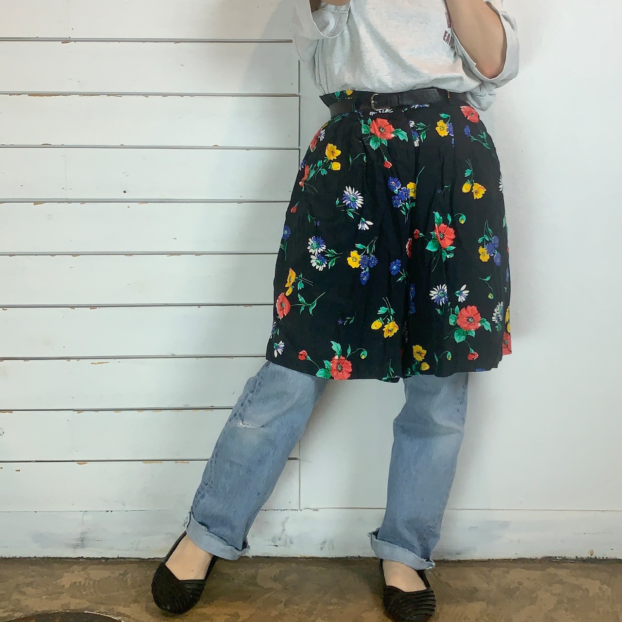 ブラックにカラフルな花柄で大人めなハーフパンツ