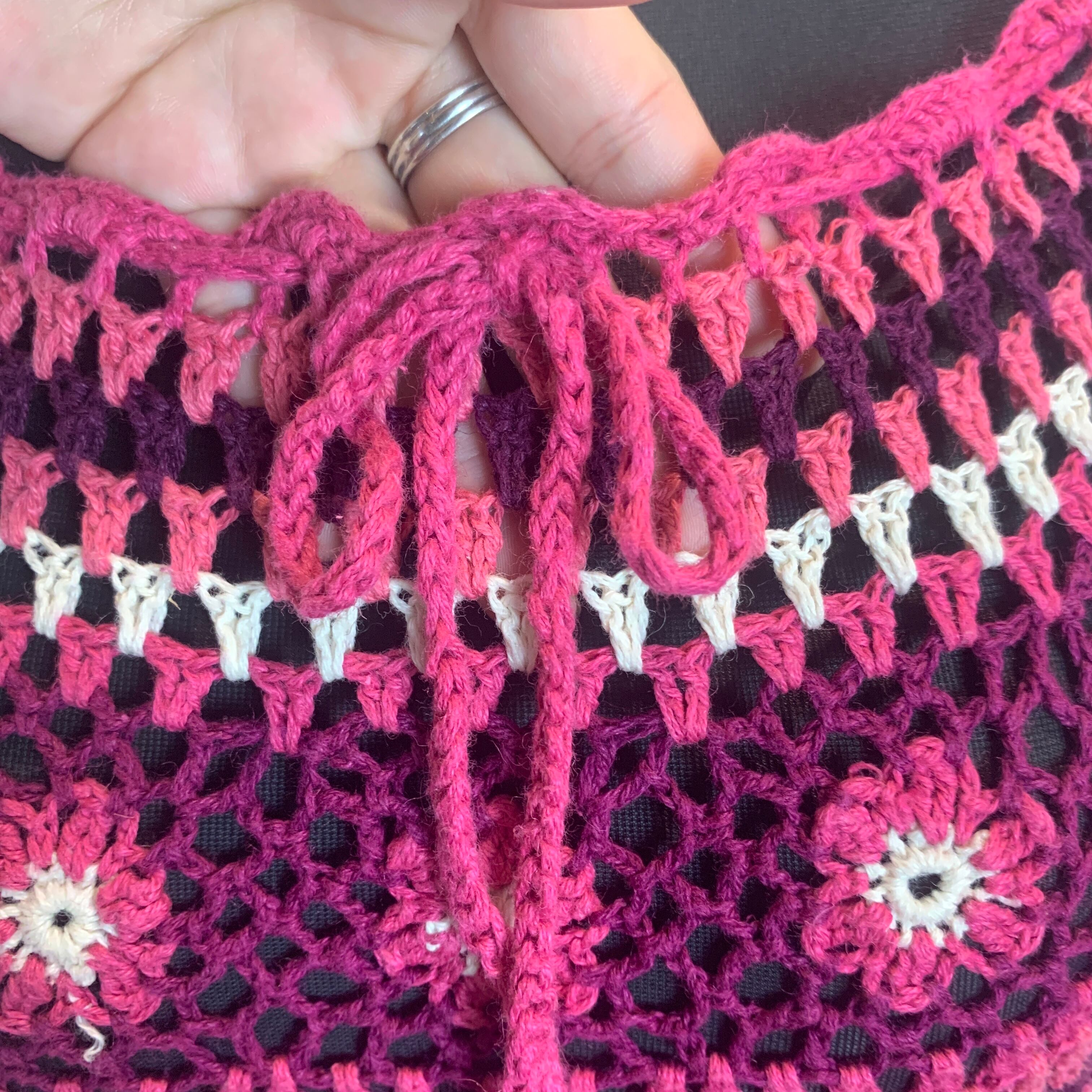 flower design crochet knit tops (pink×purple)