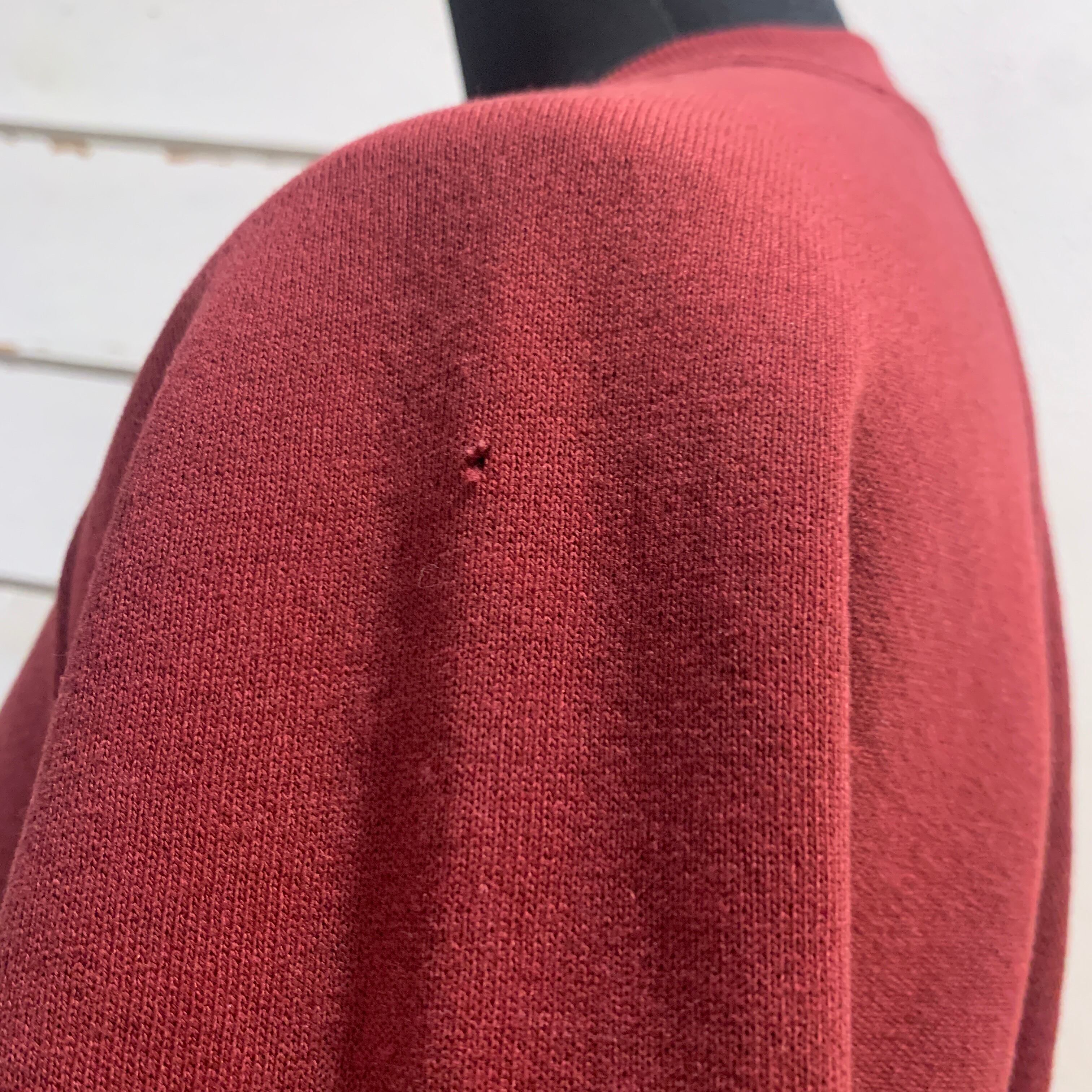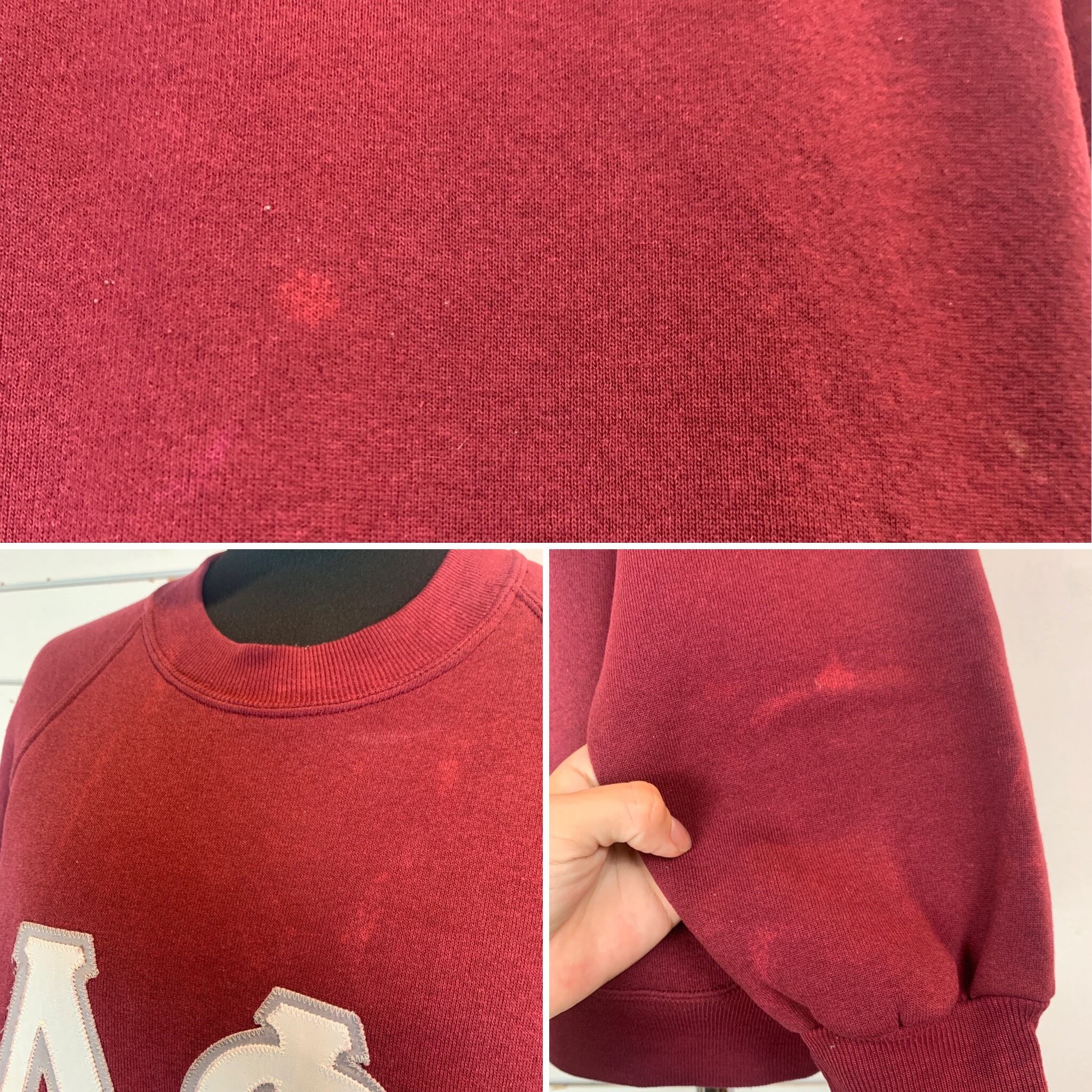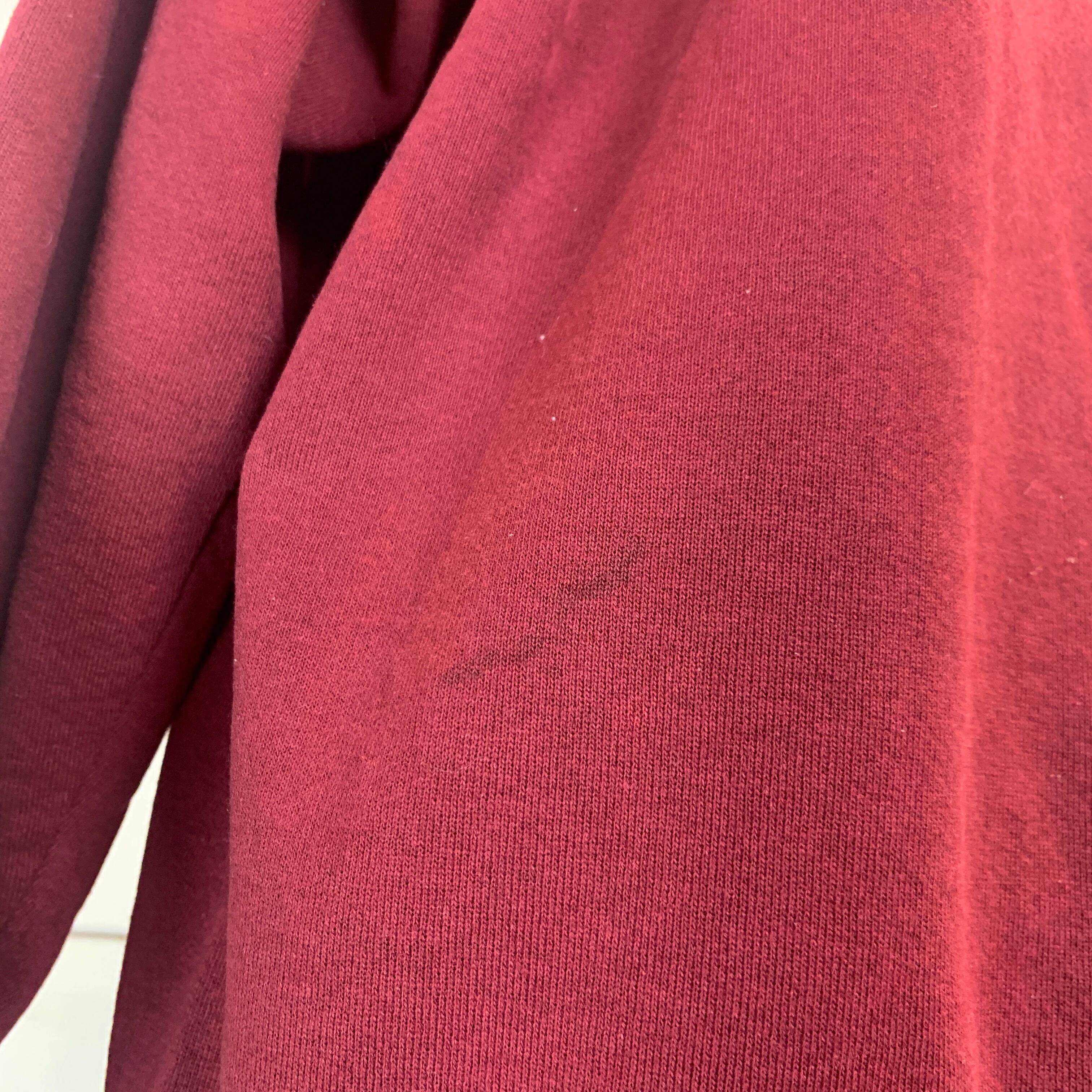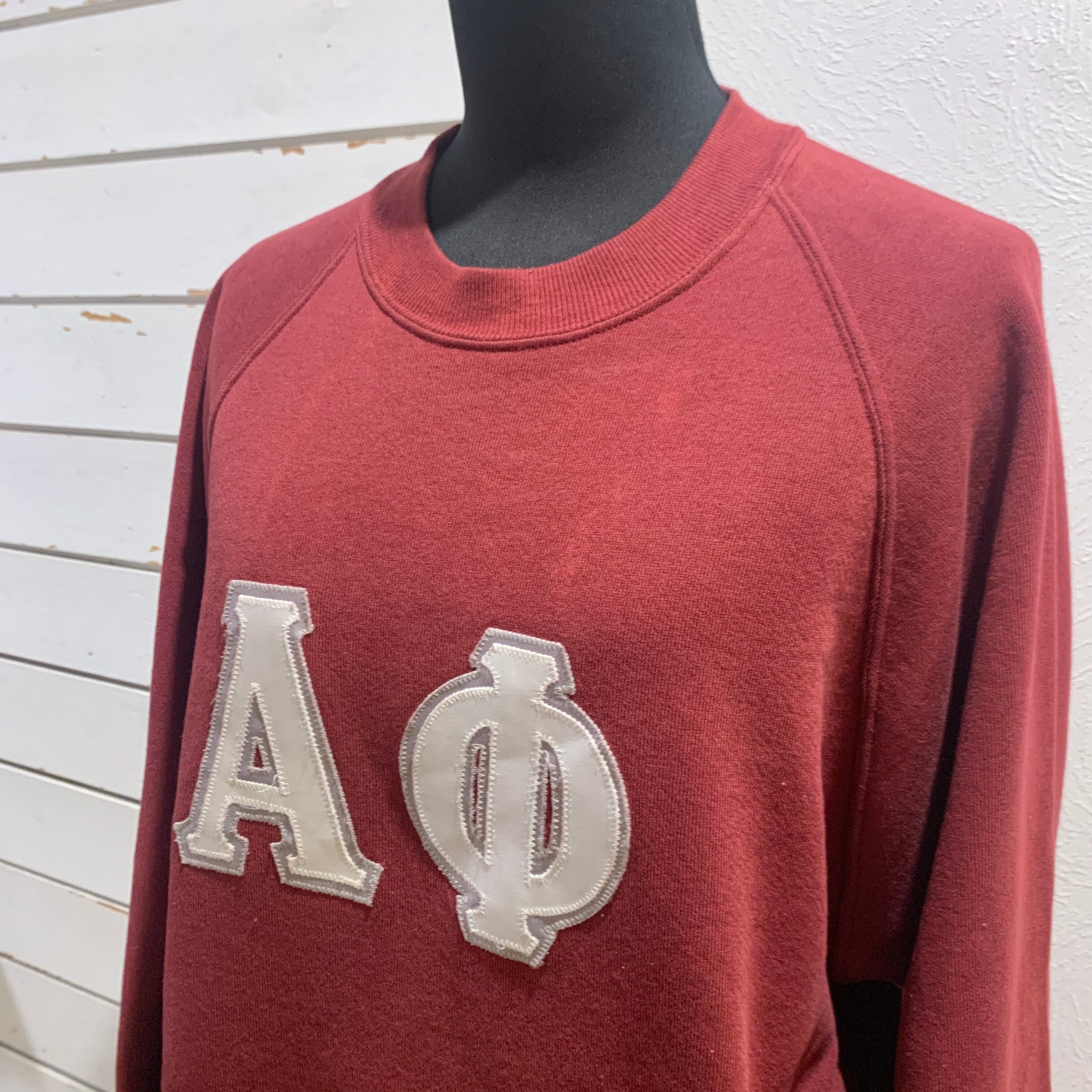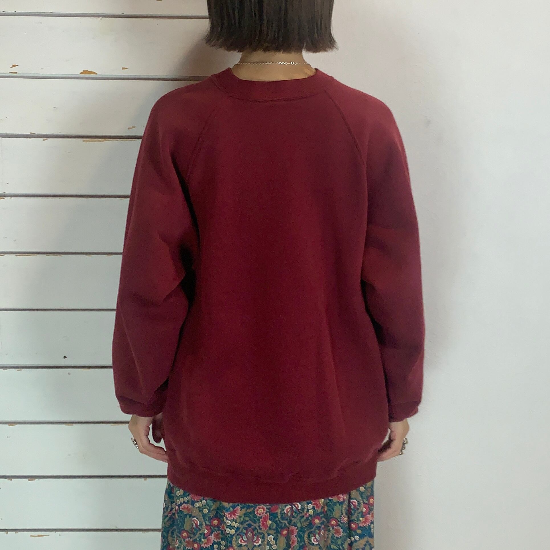 秋冬らしいワインレッドカラーにギリシャ文字のパッチがついたスウェット