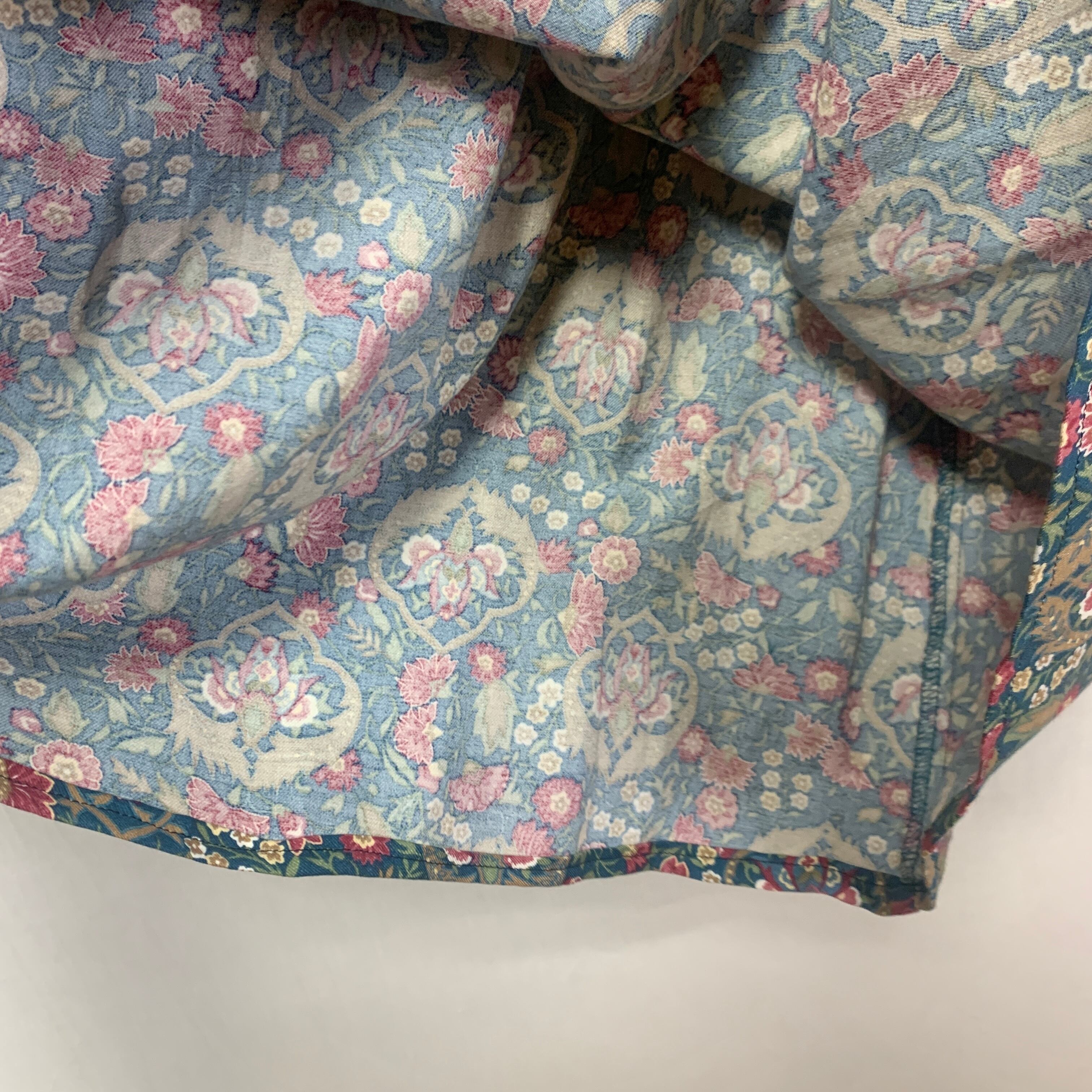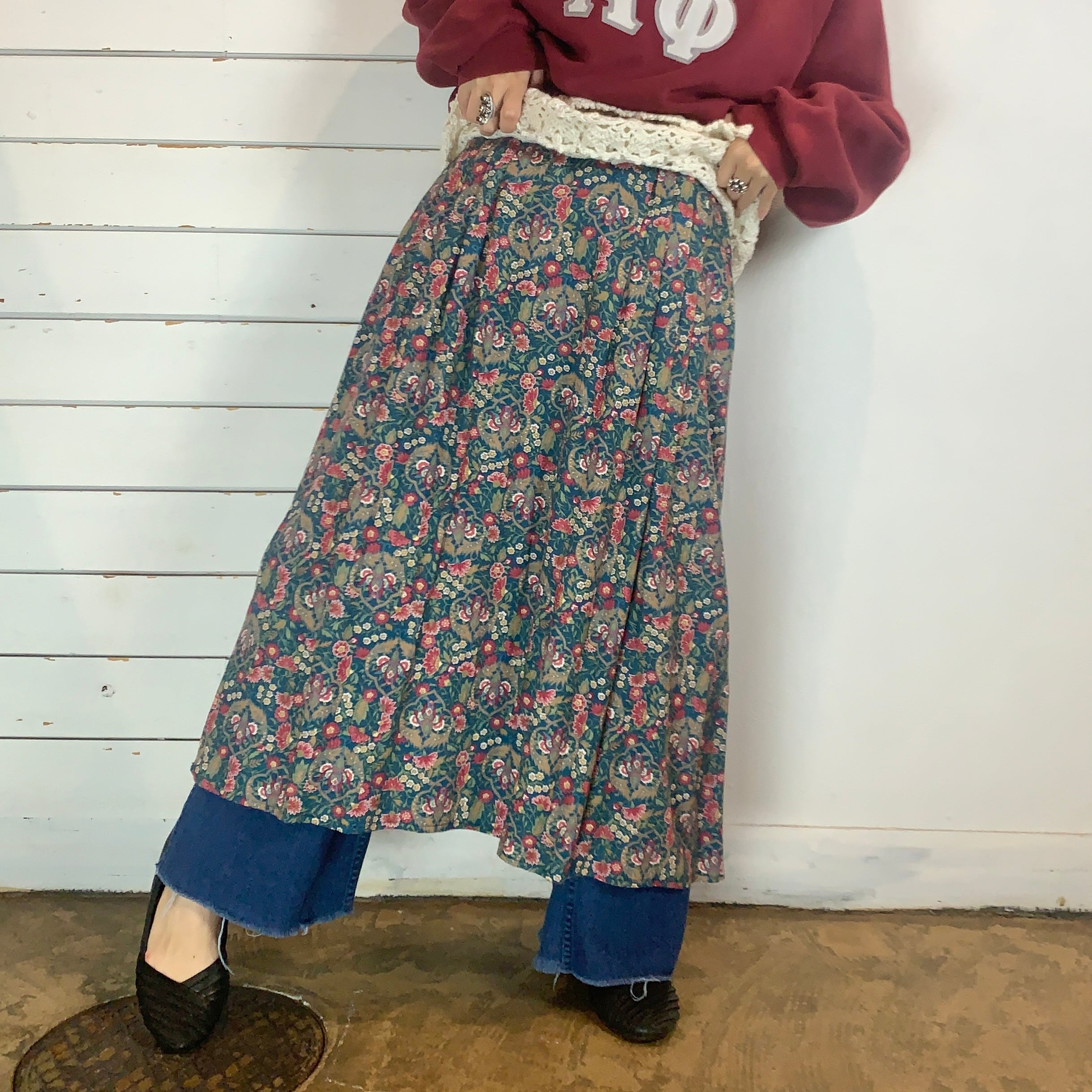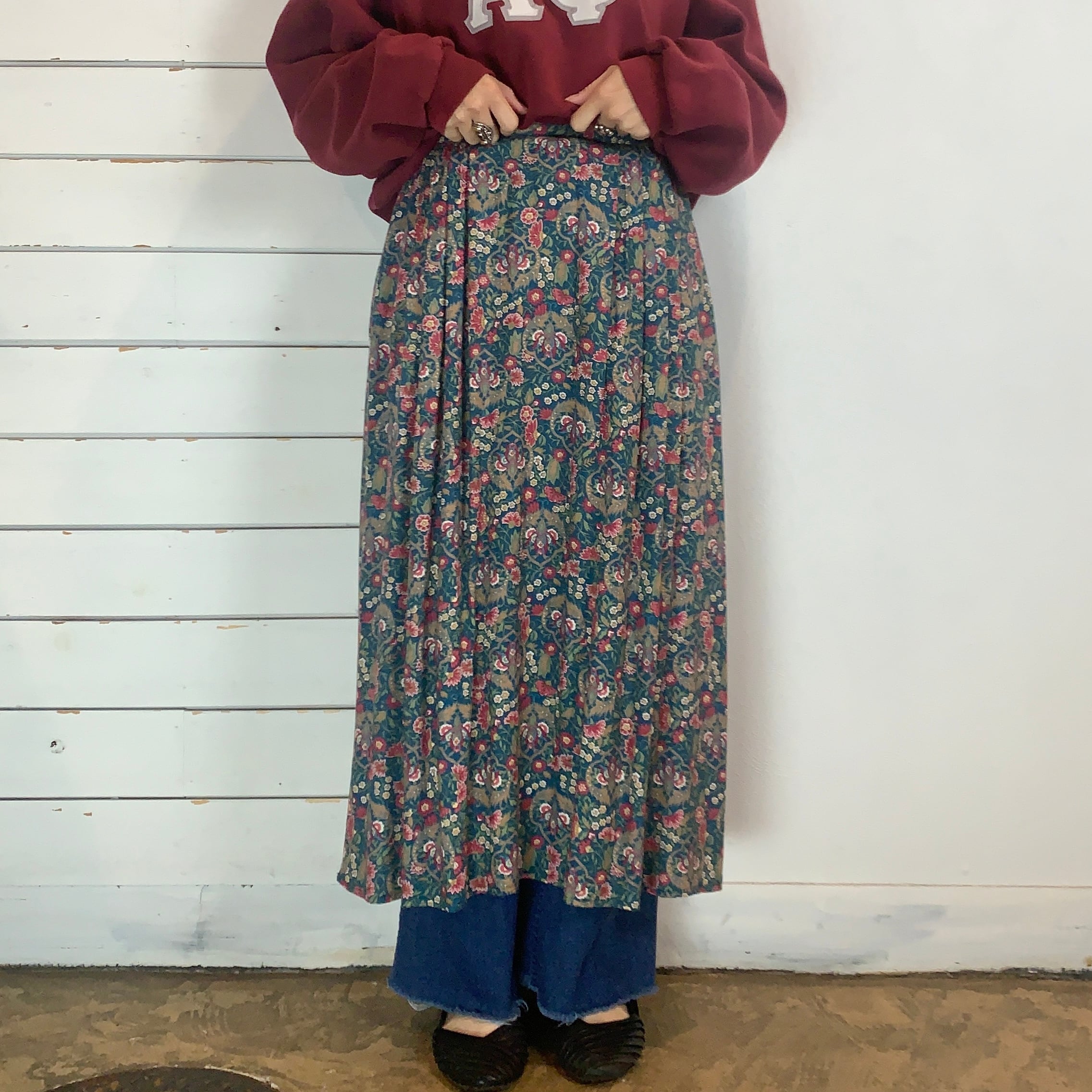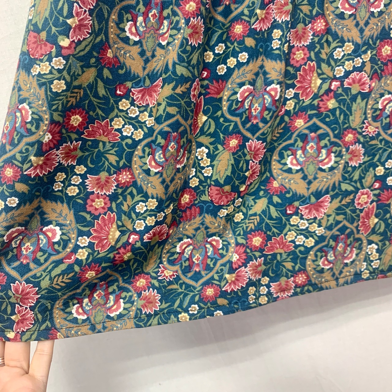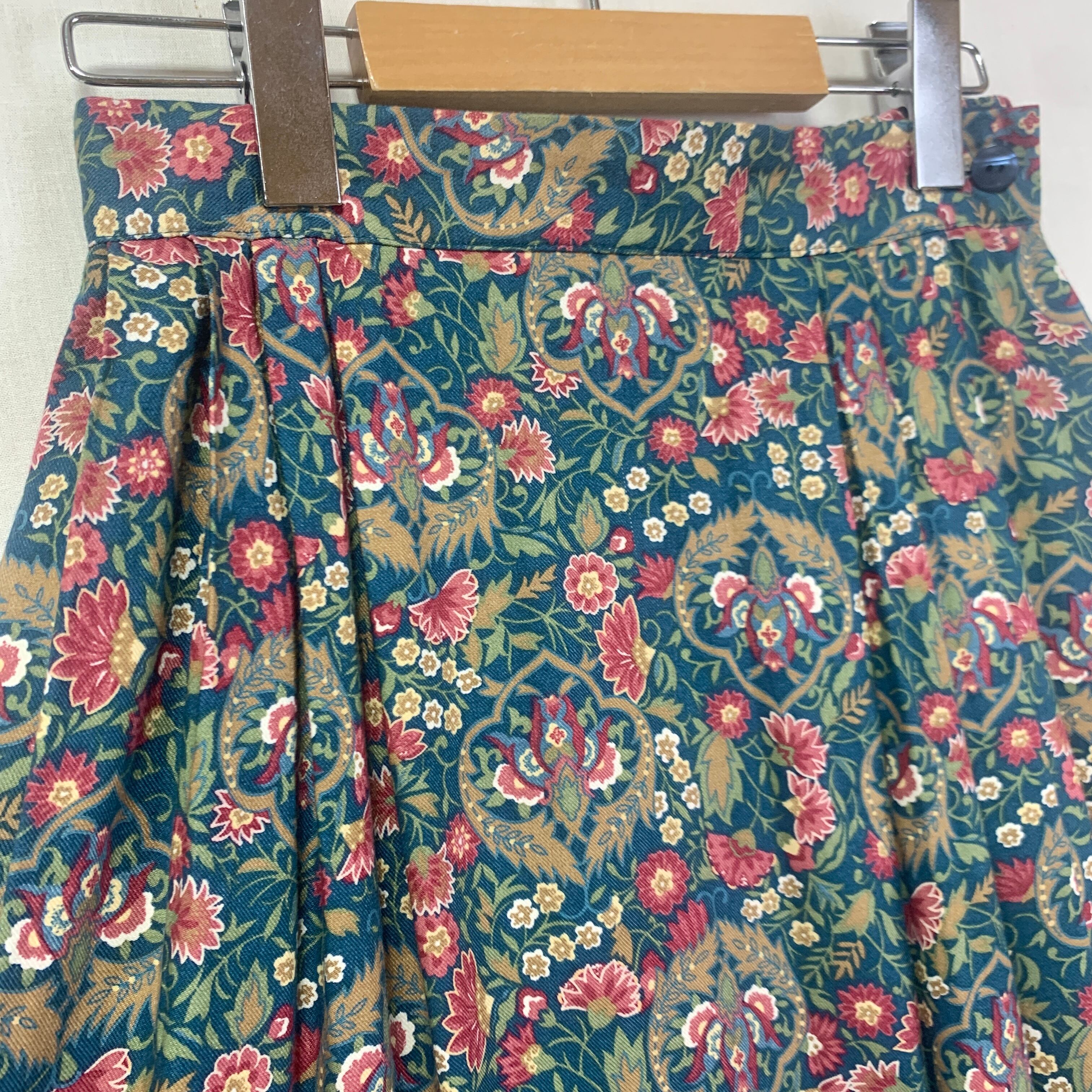キレイなエメラルドグリーンをベースにオリエンタル調のピンク花柄がかわいいスカート