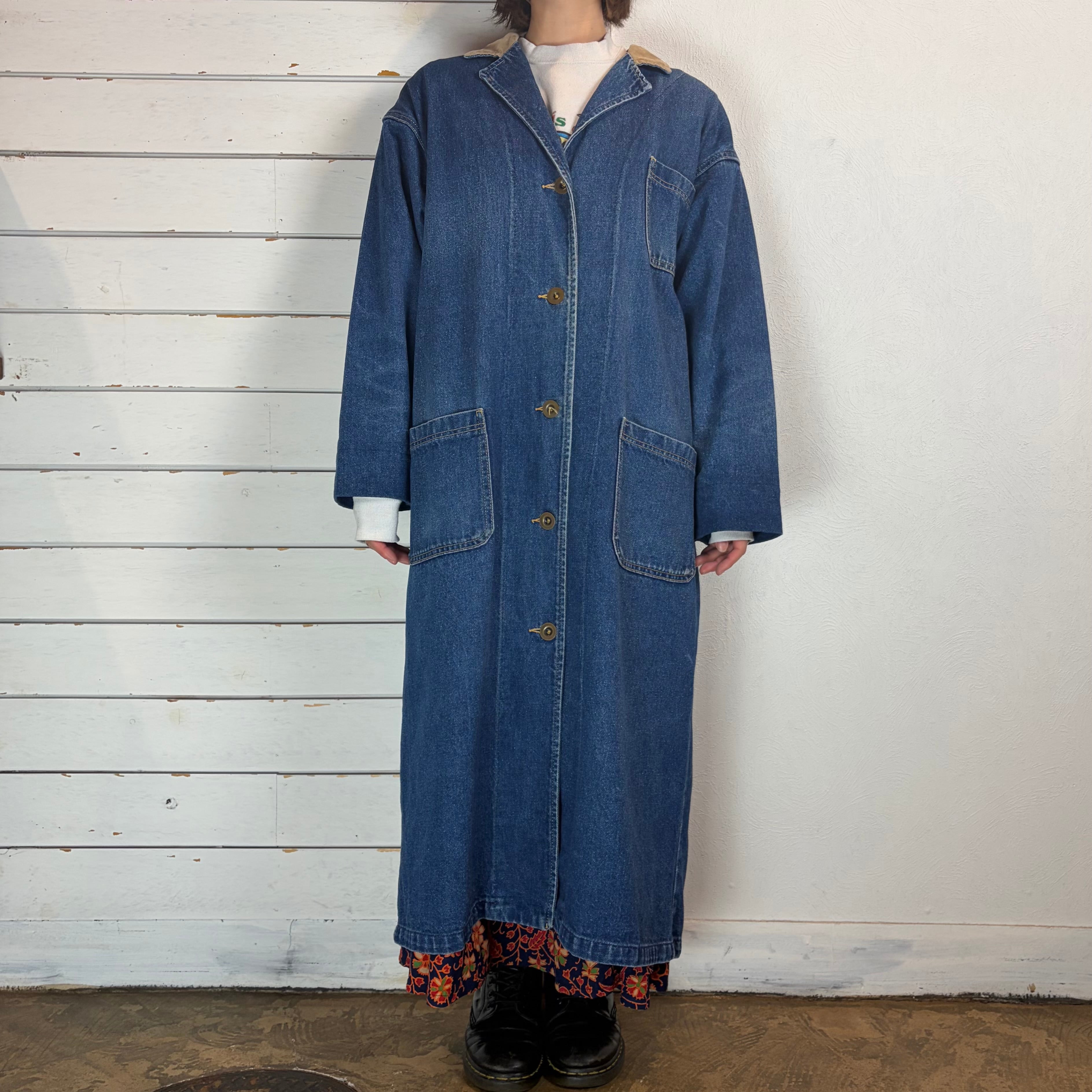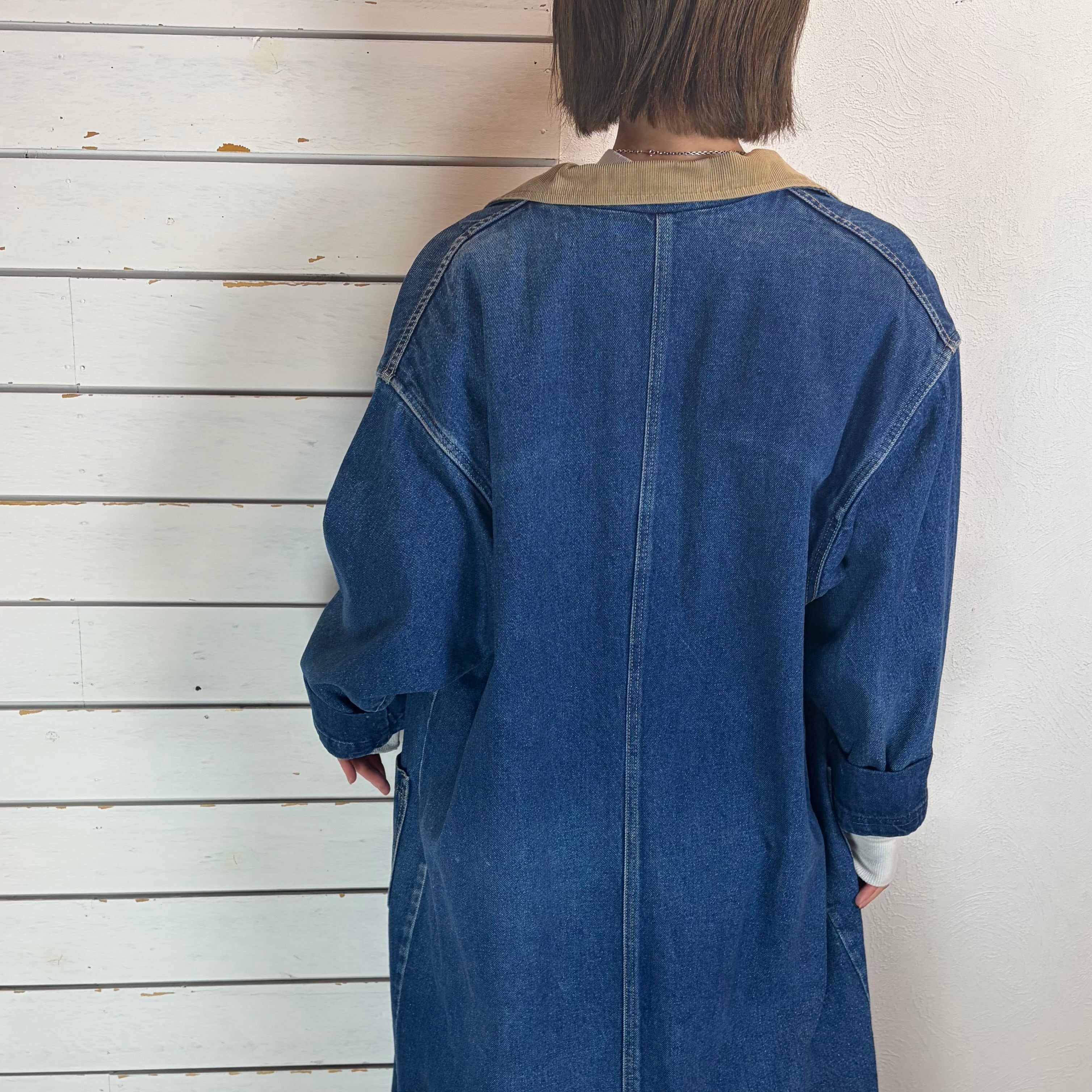 Lee / corduroy collar long denim coat