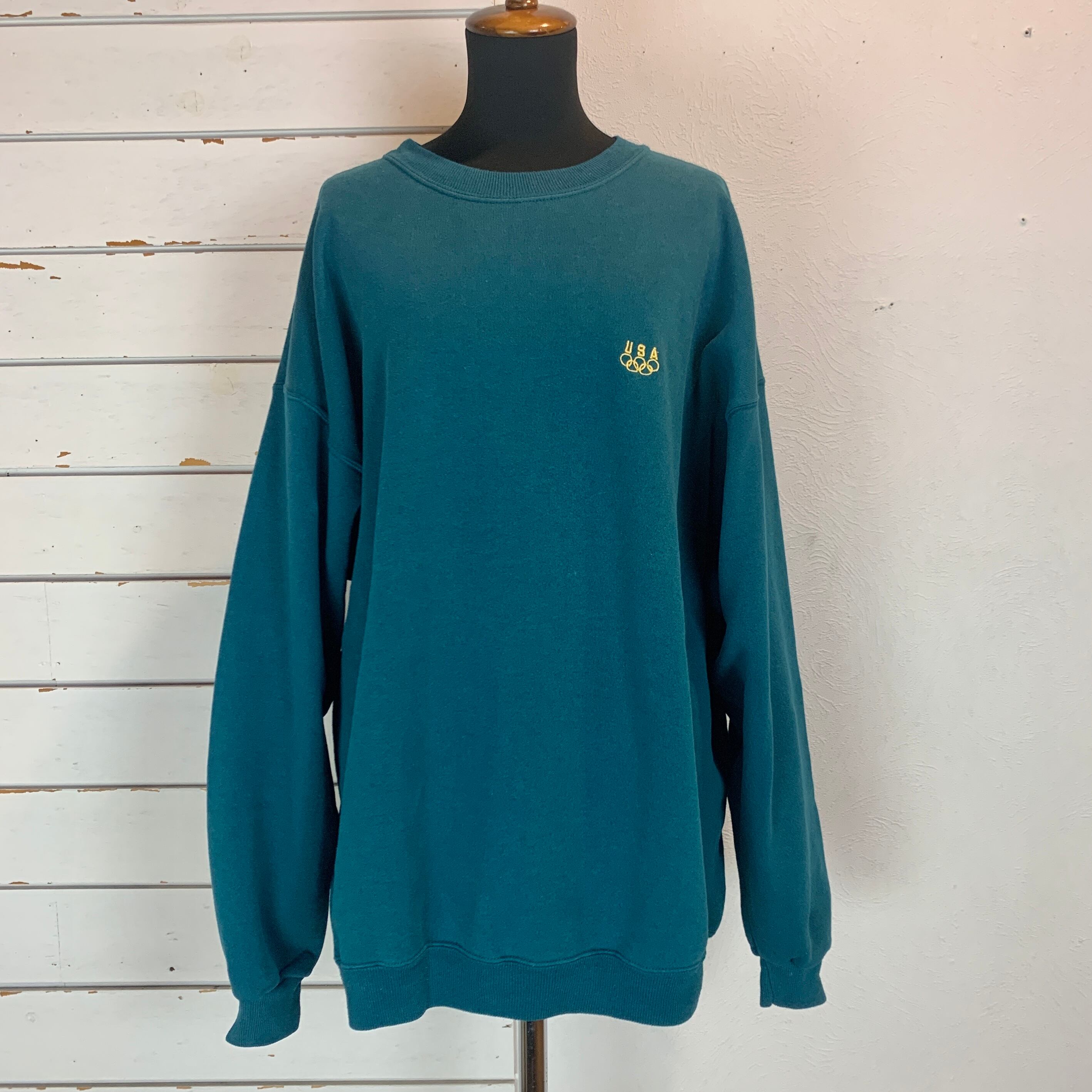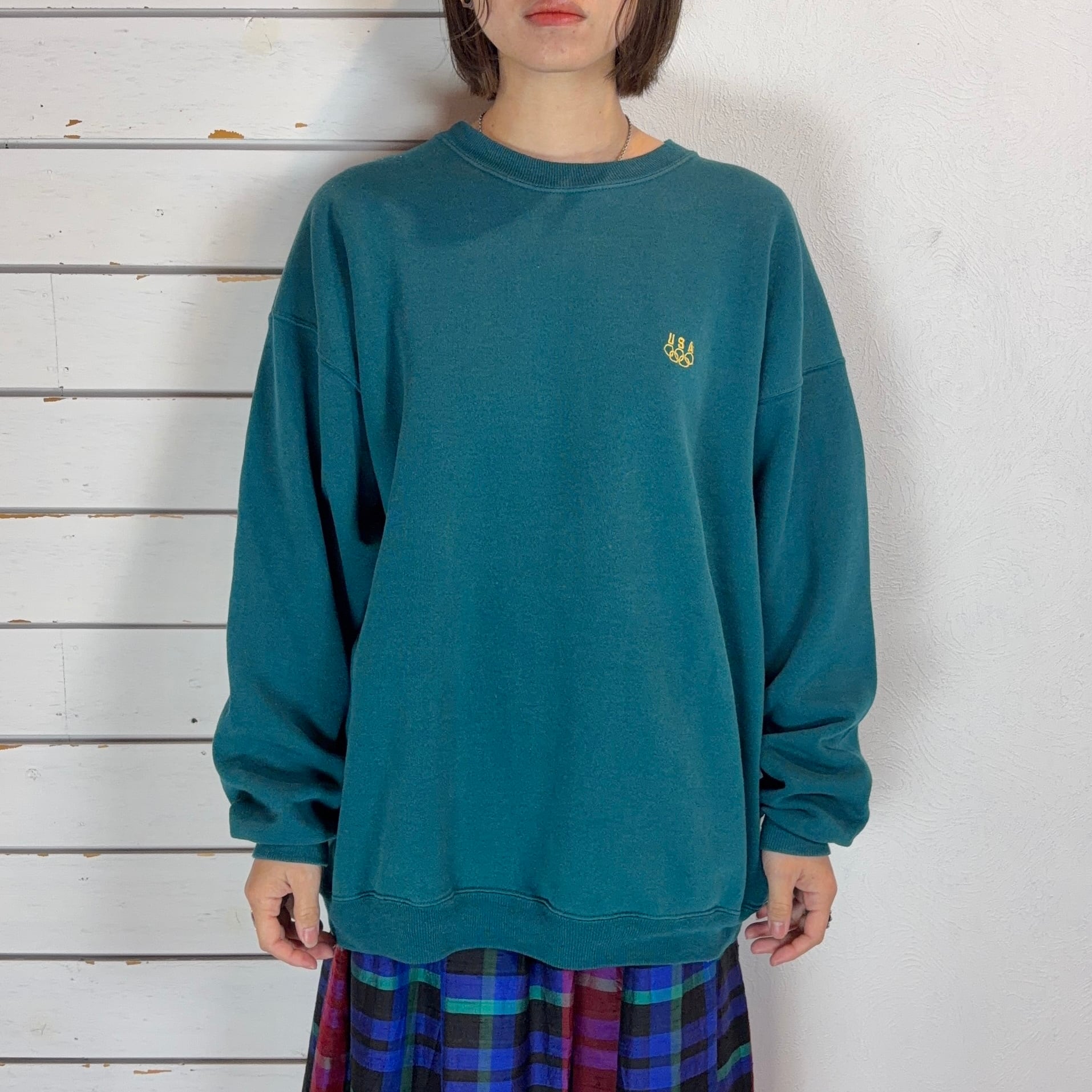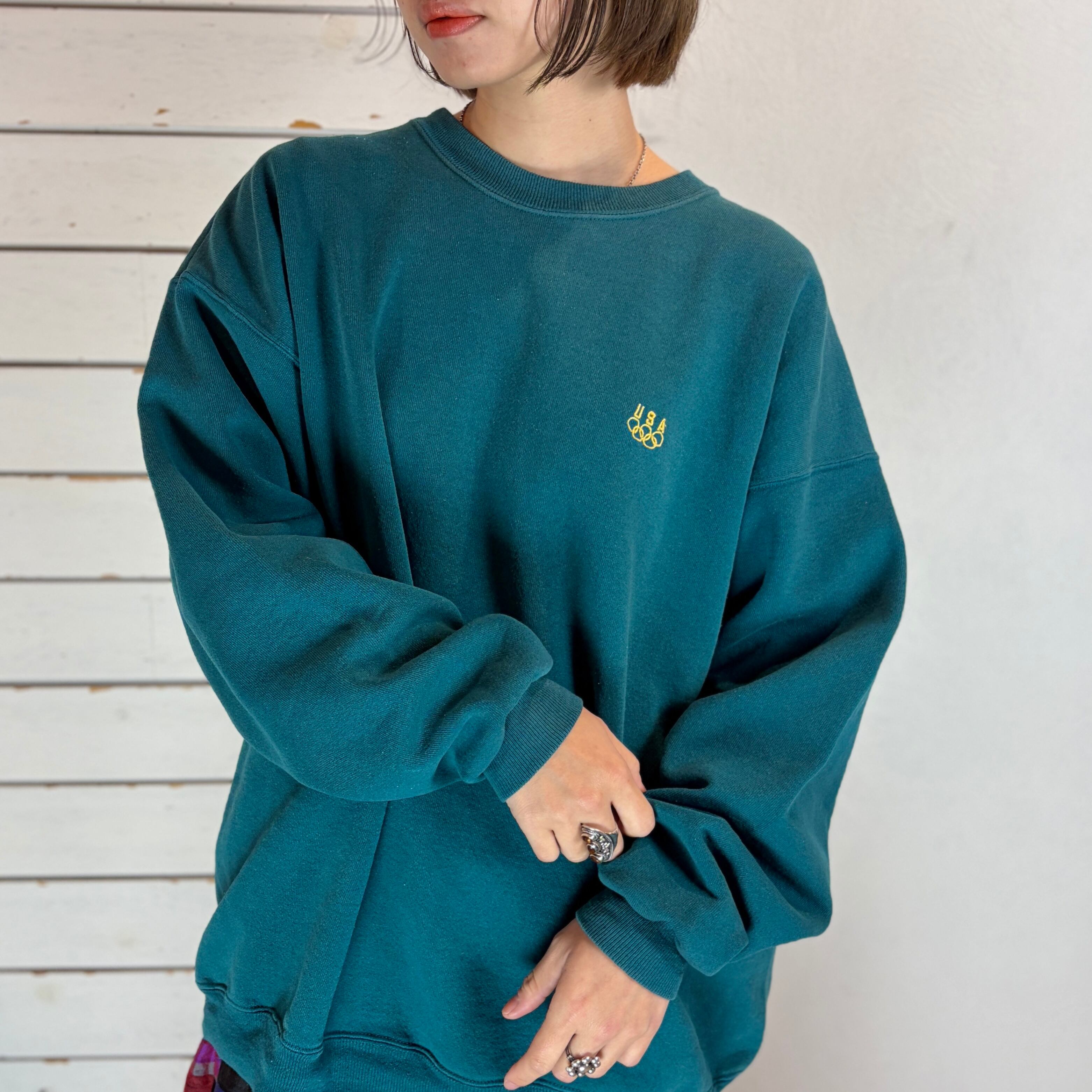 鮮やかなエメラルドグリーンにワンポイントのオリンピック刺繍が映えるスウェット