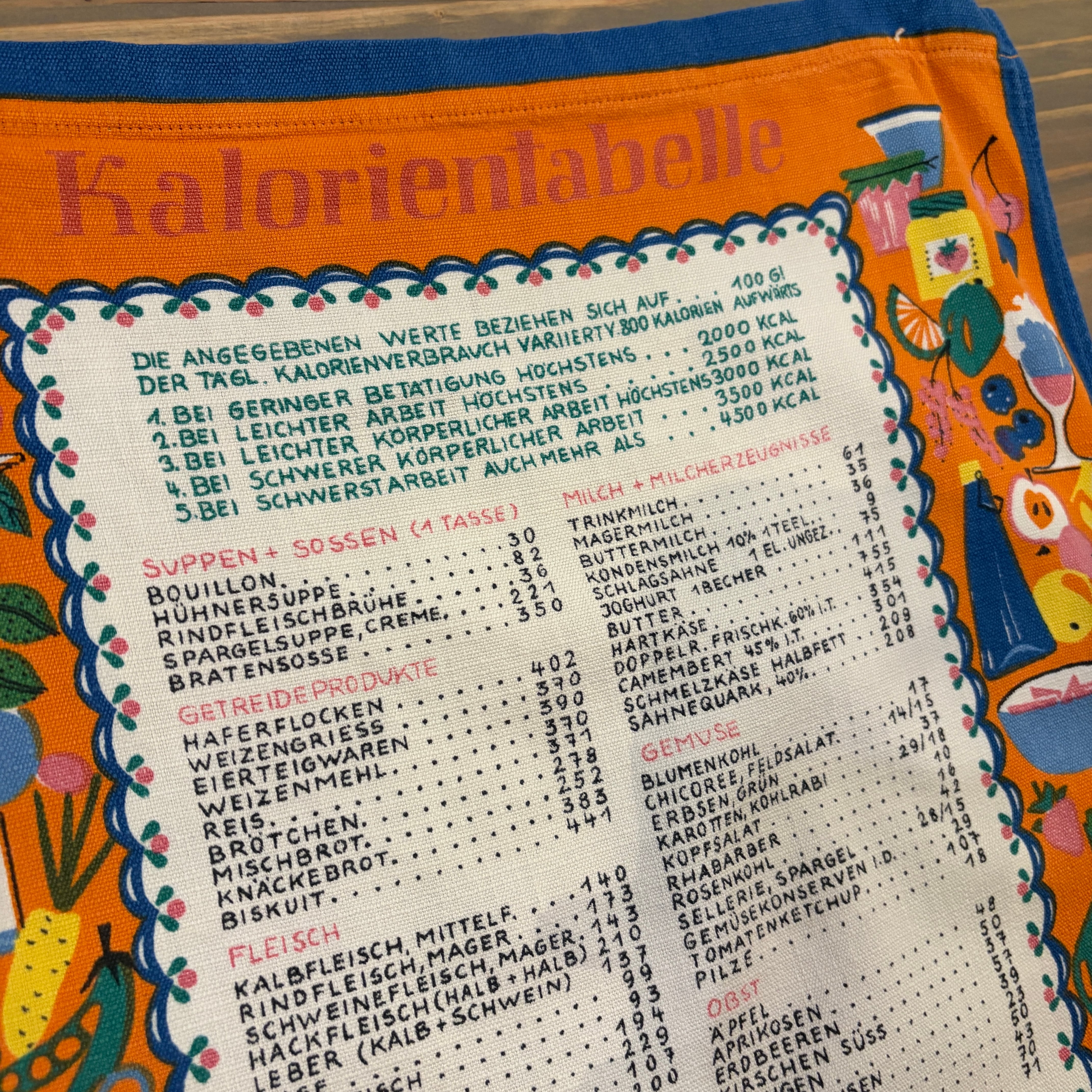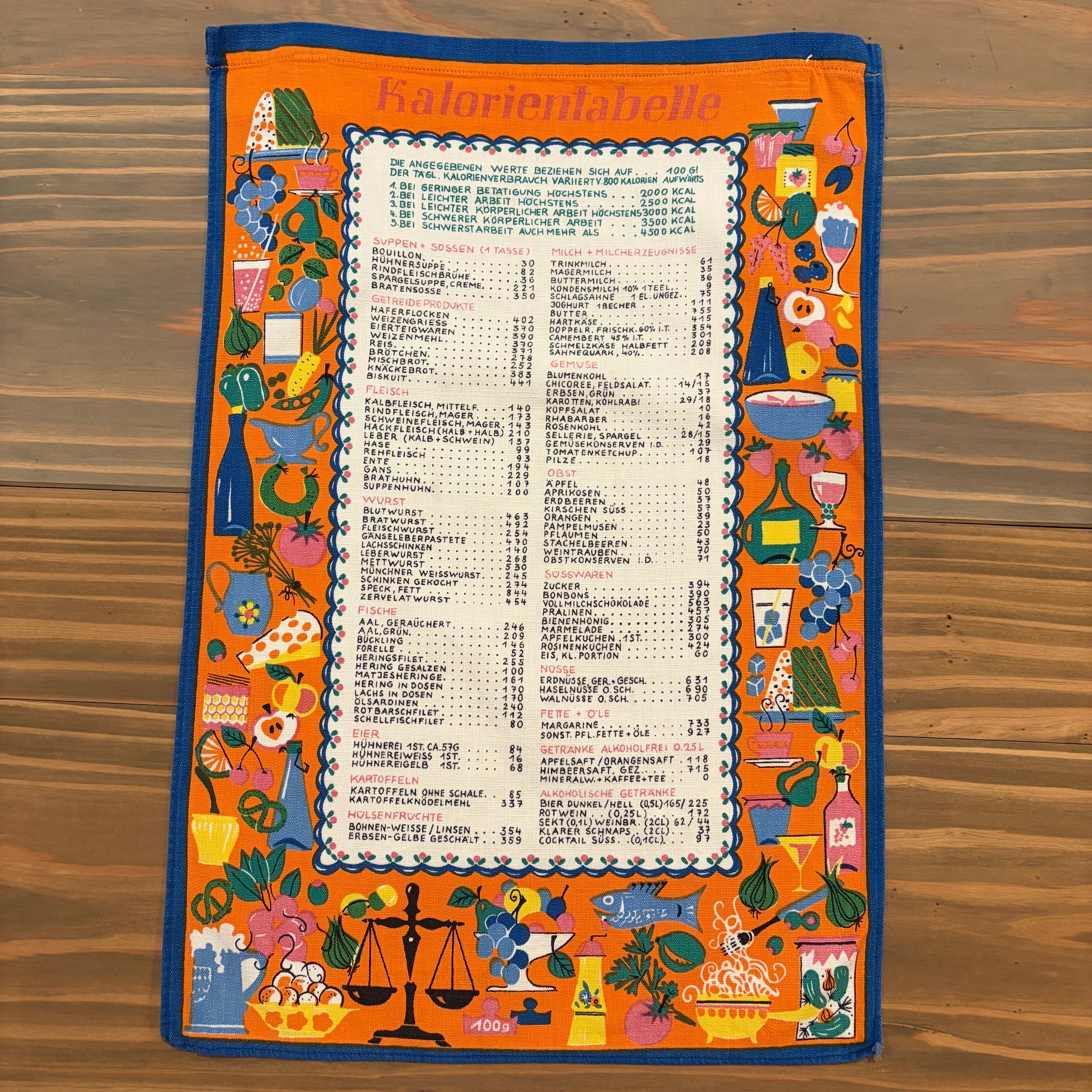 calorie table tapestry