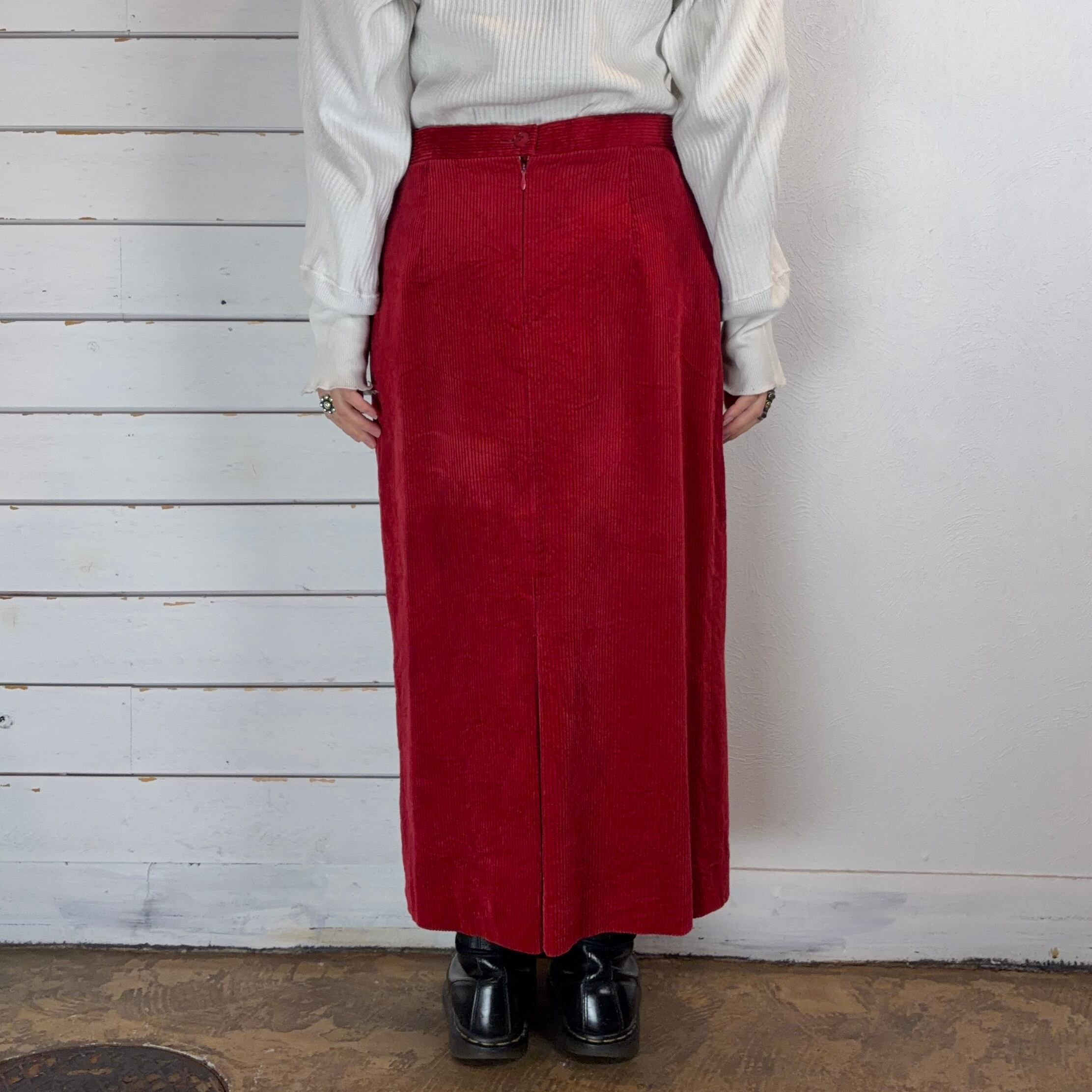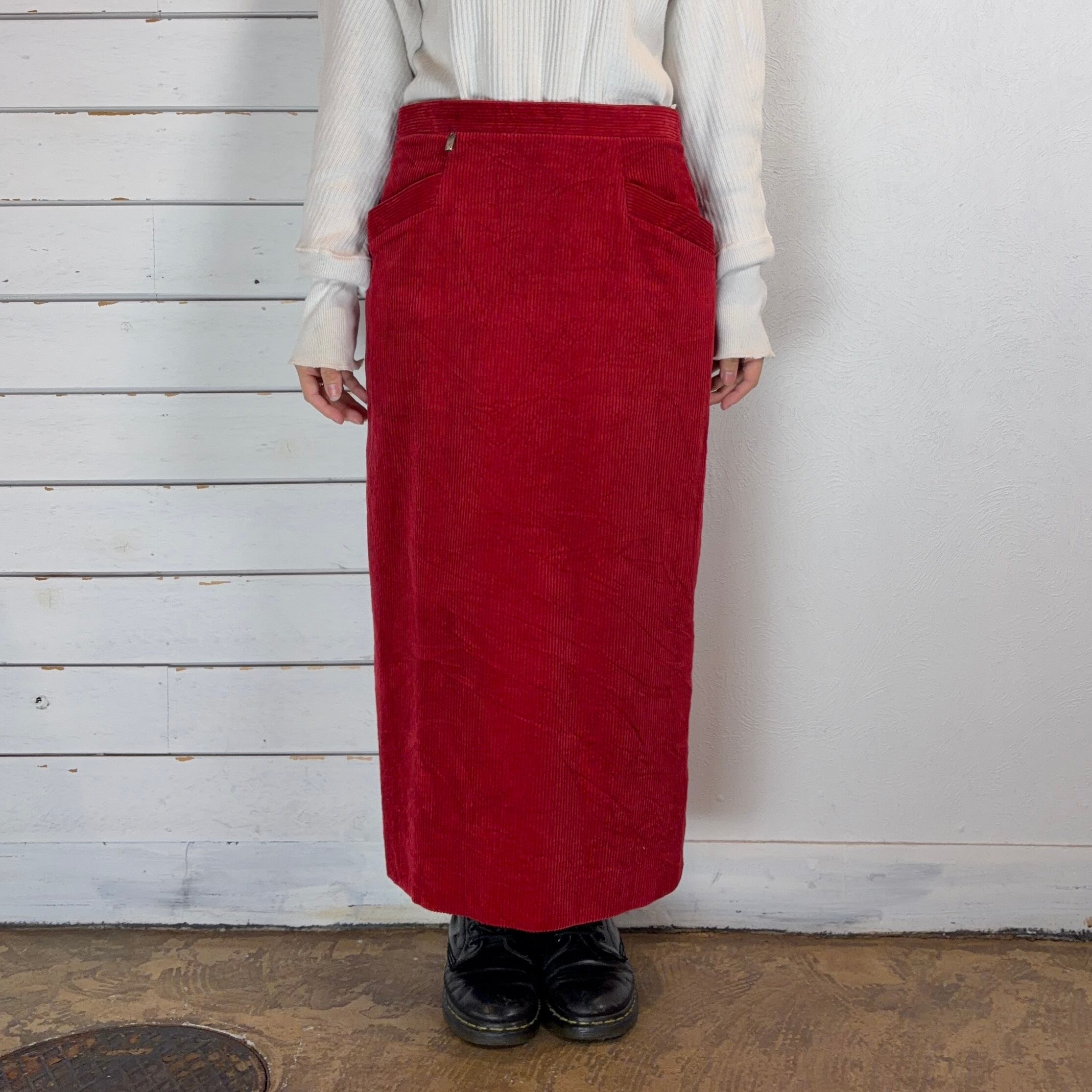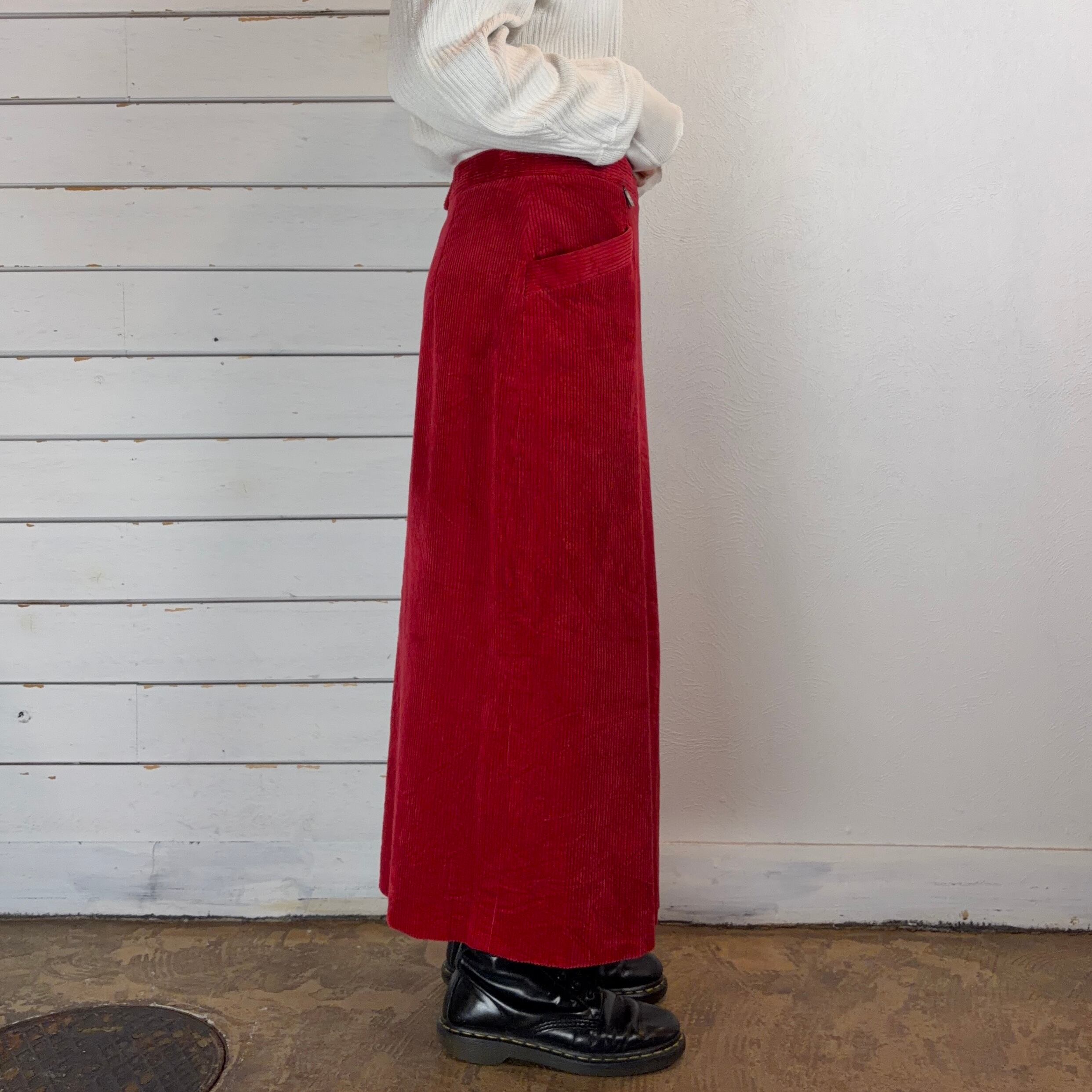 少し深めのレッドのコーデュロイスカート