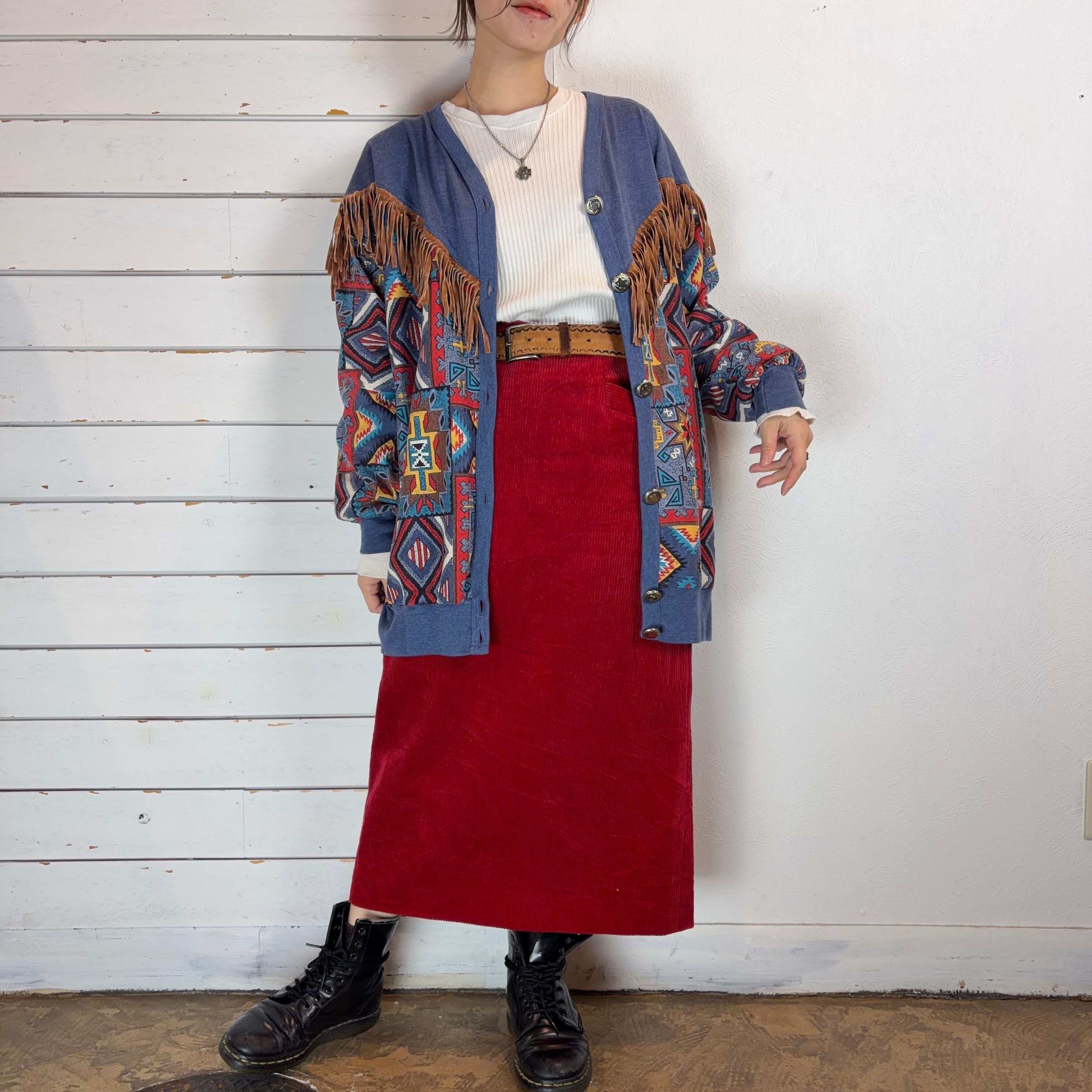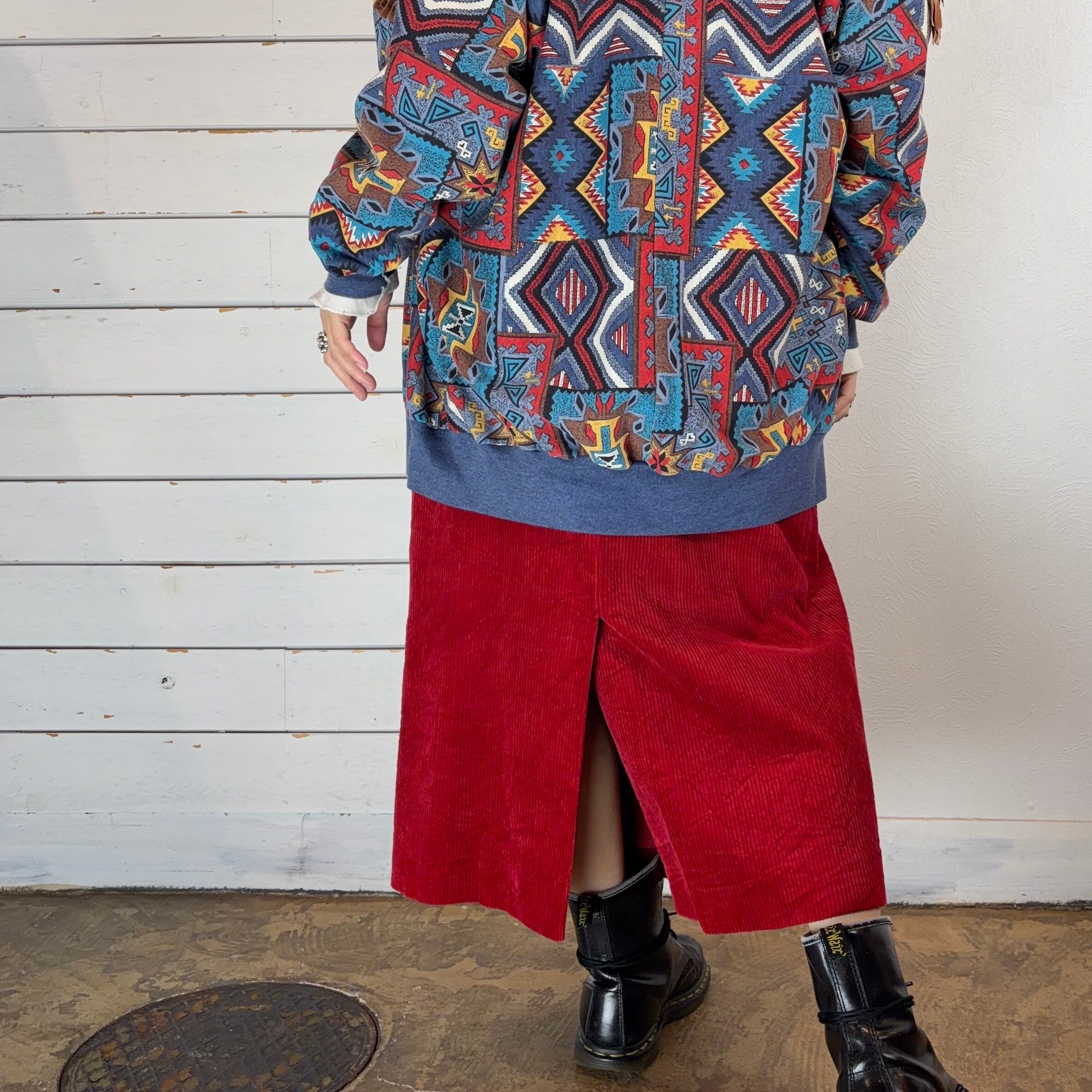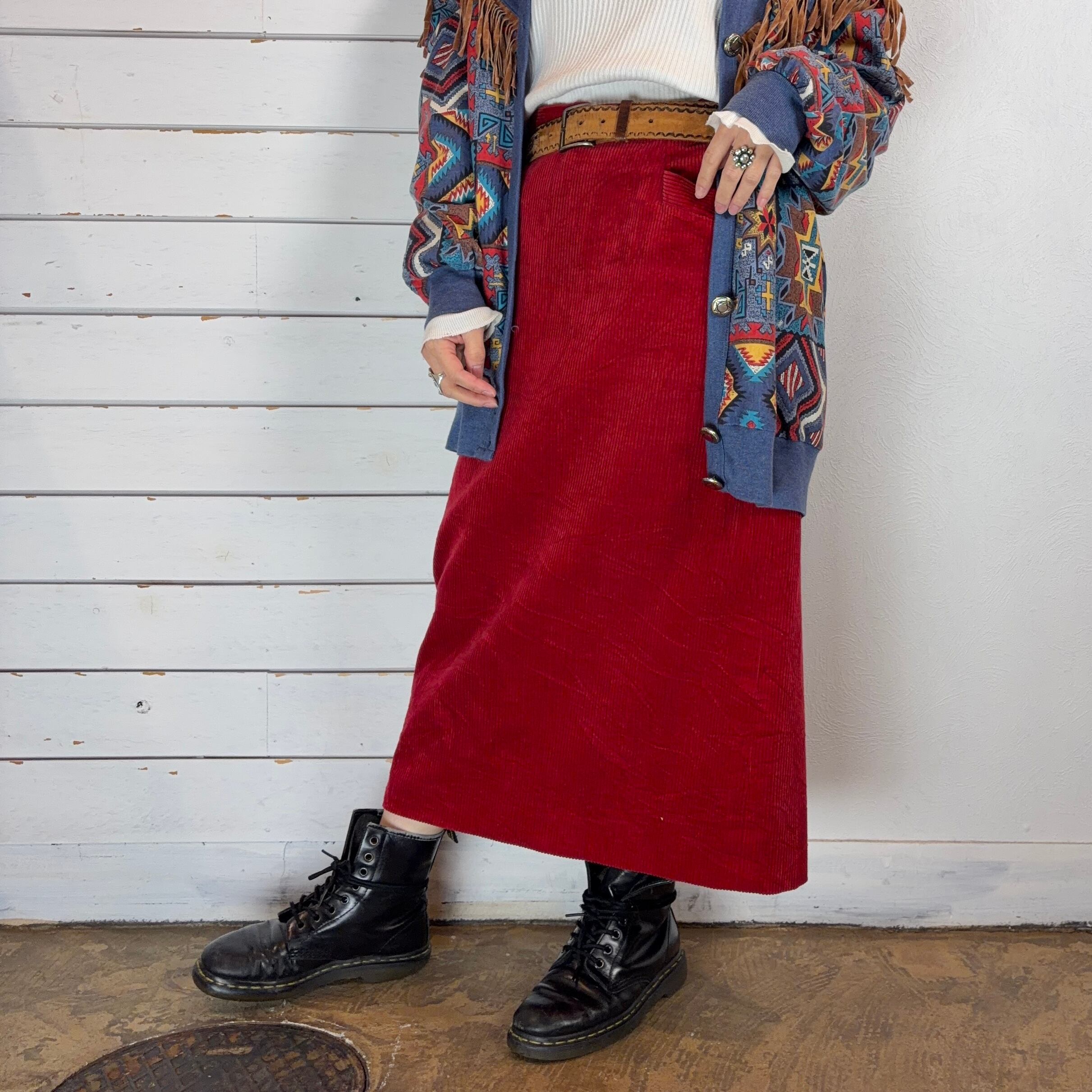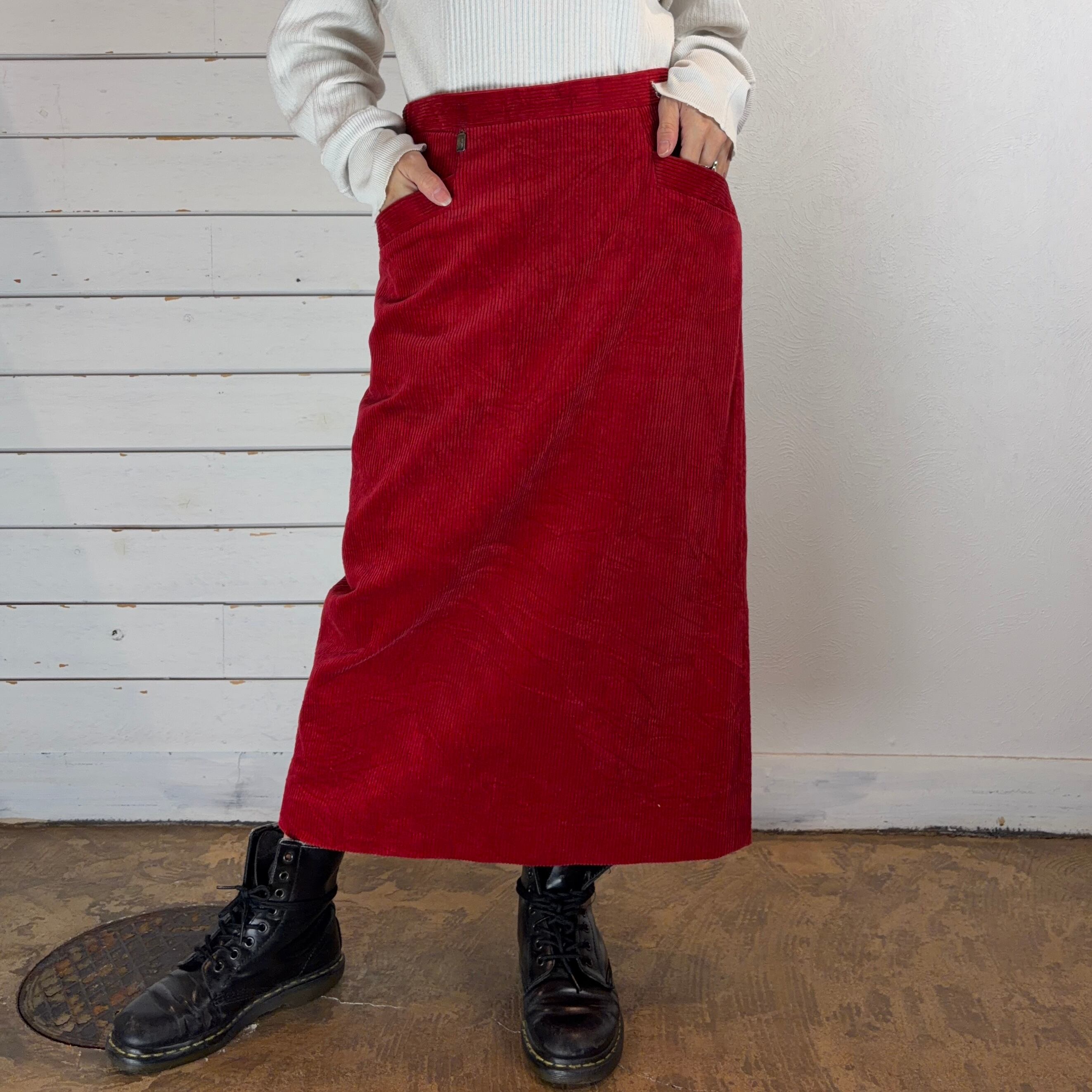 少し深めのレッドのコーデュロイスカート
