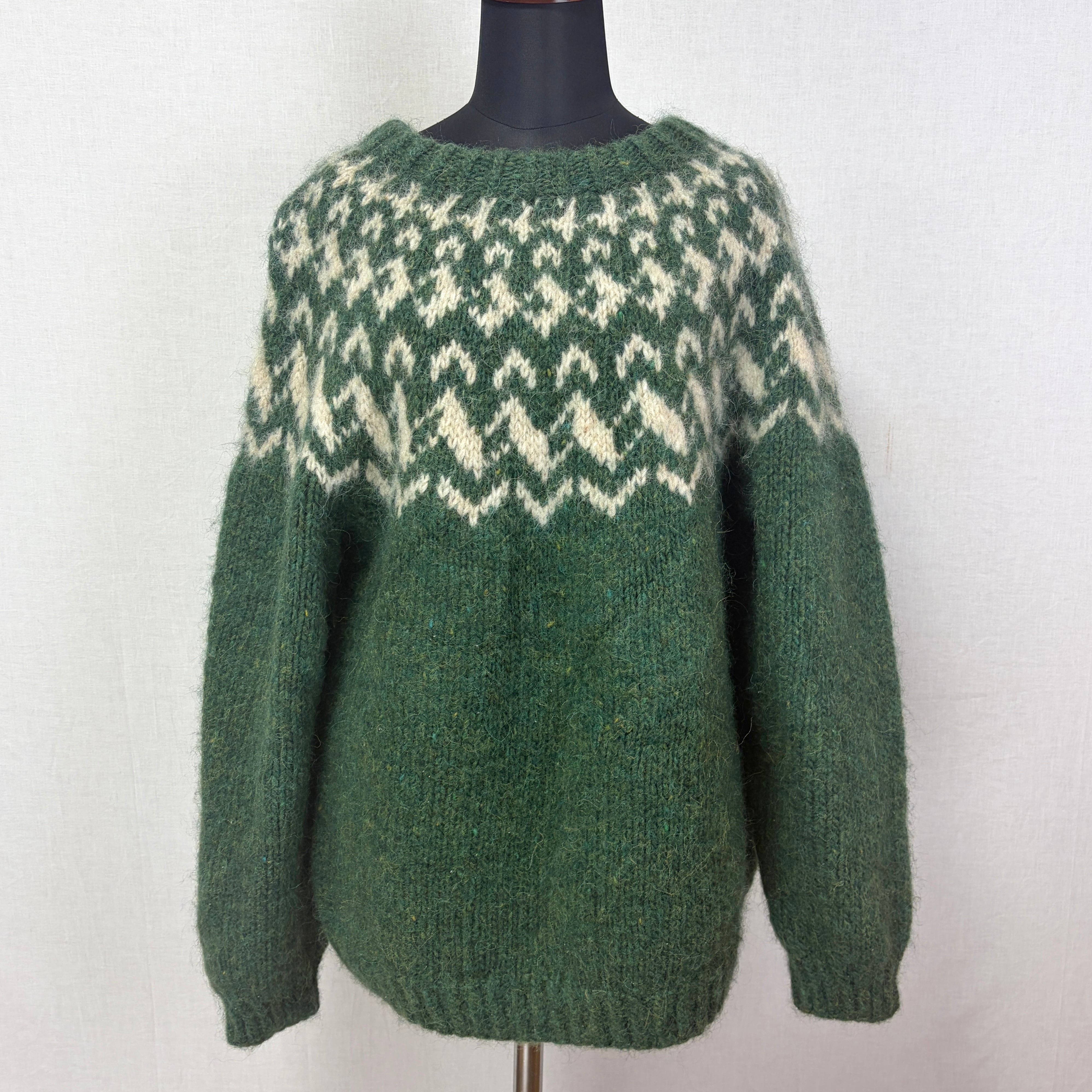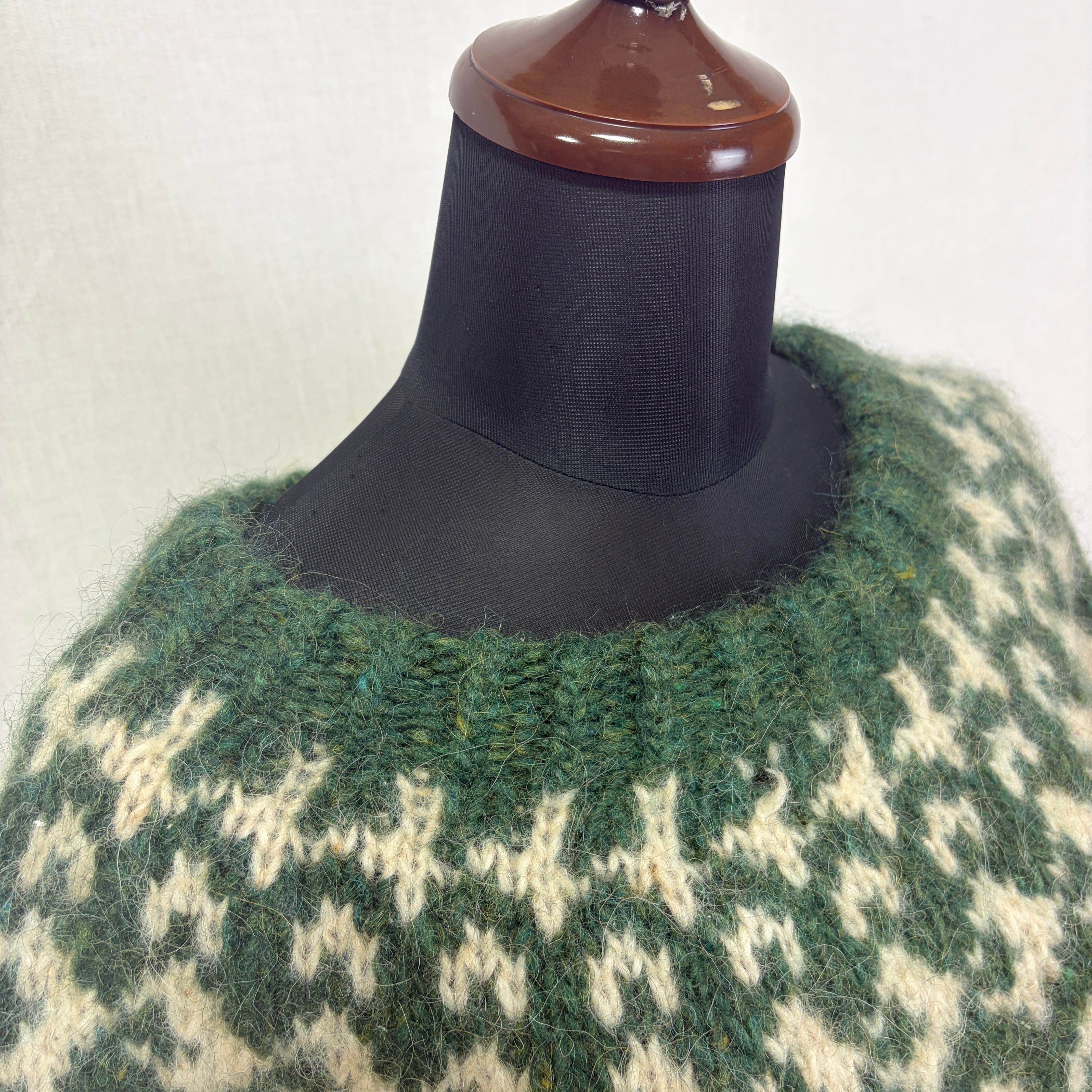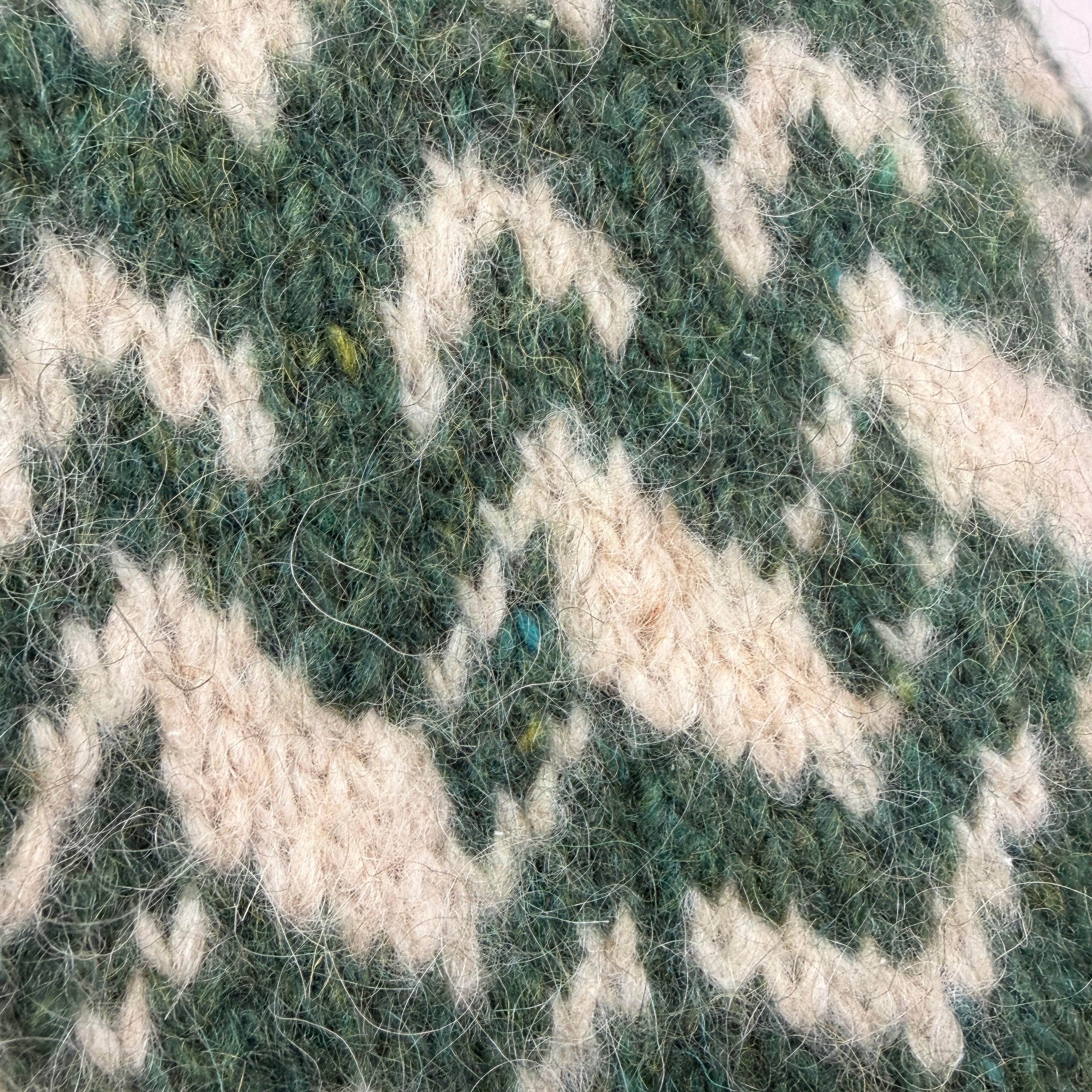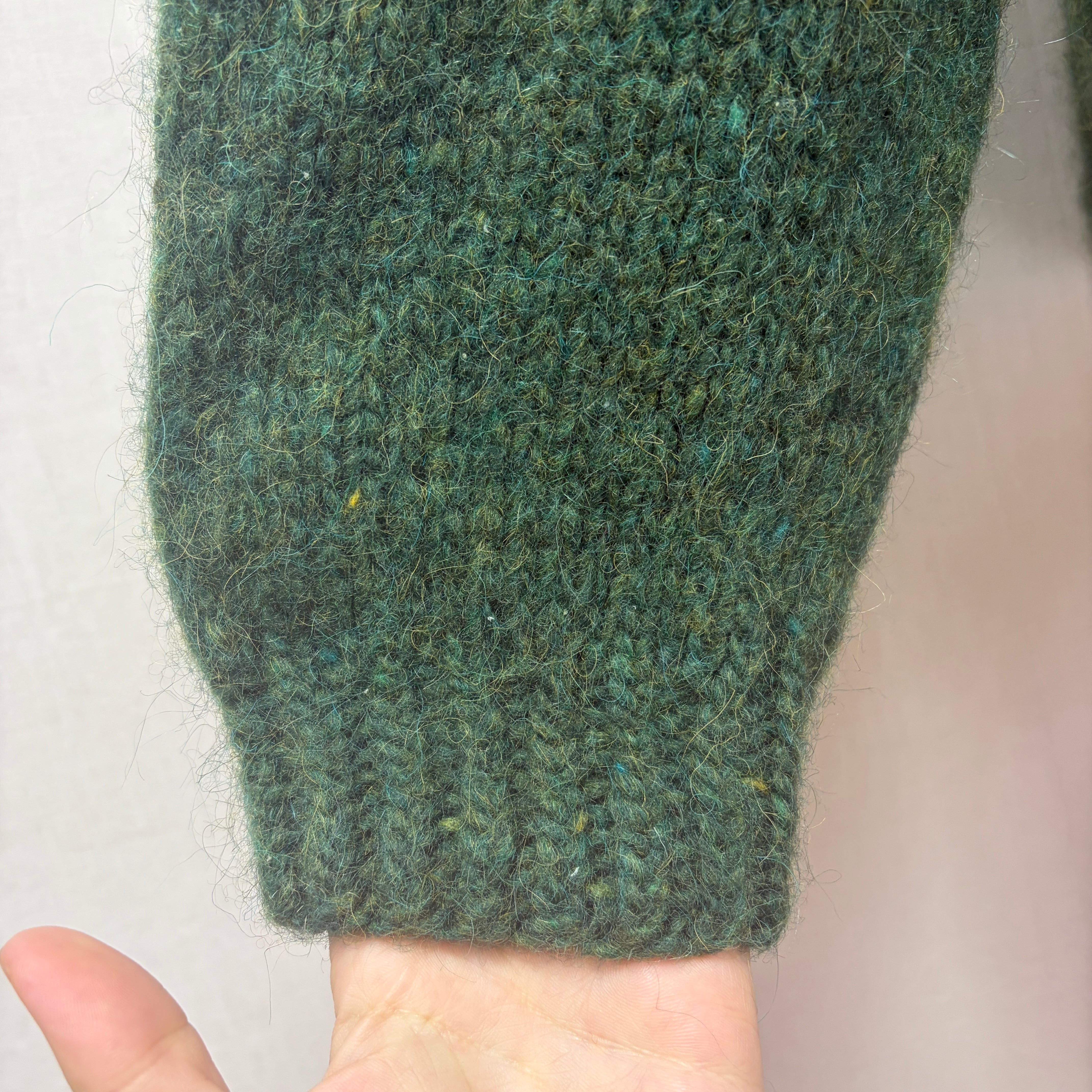 差し色にも最適な落ち着いたグリーンのフェアアイル柄ニット