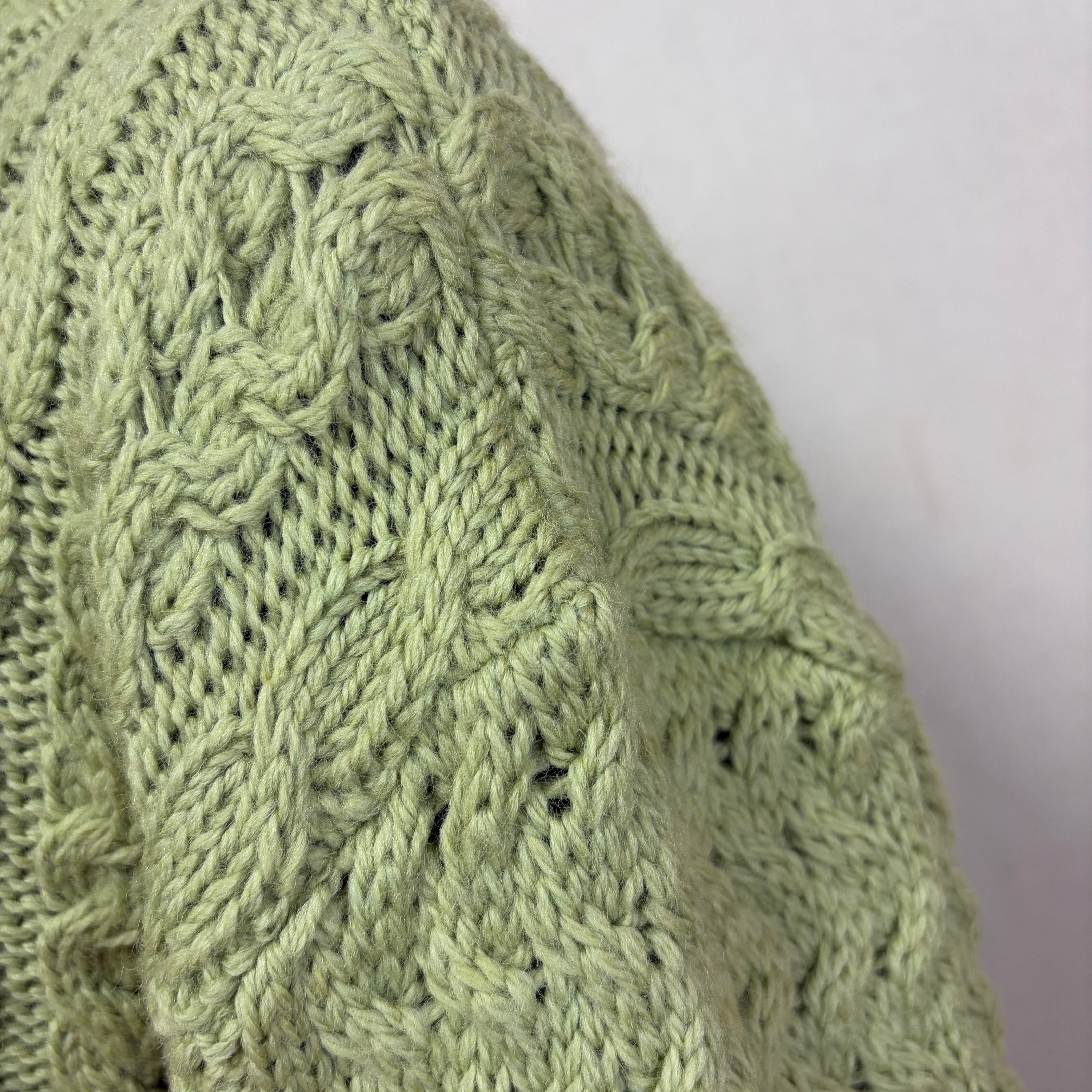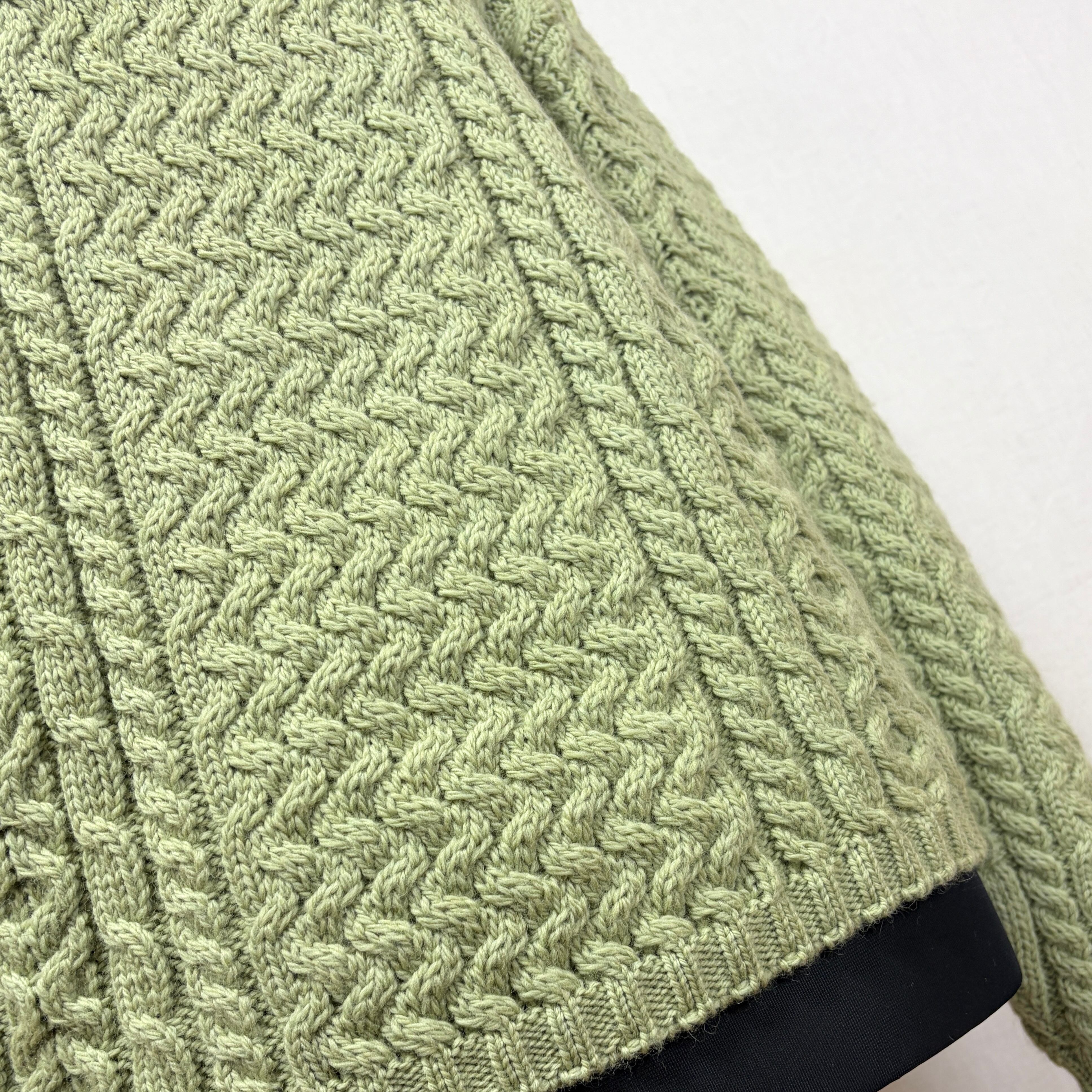 春先に向けてピッタリなやさしい黄緑のアラン編みニット