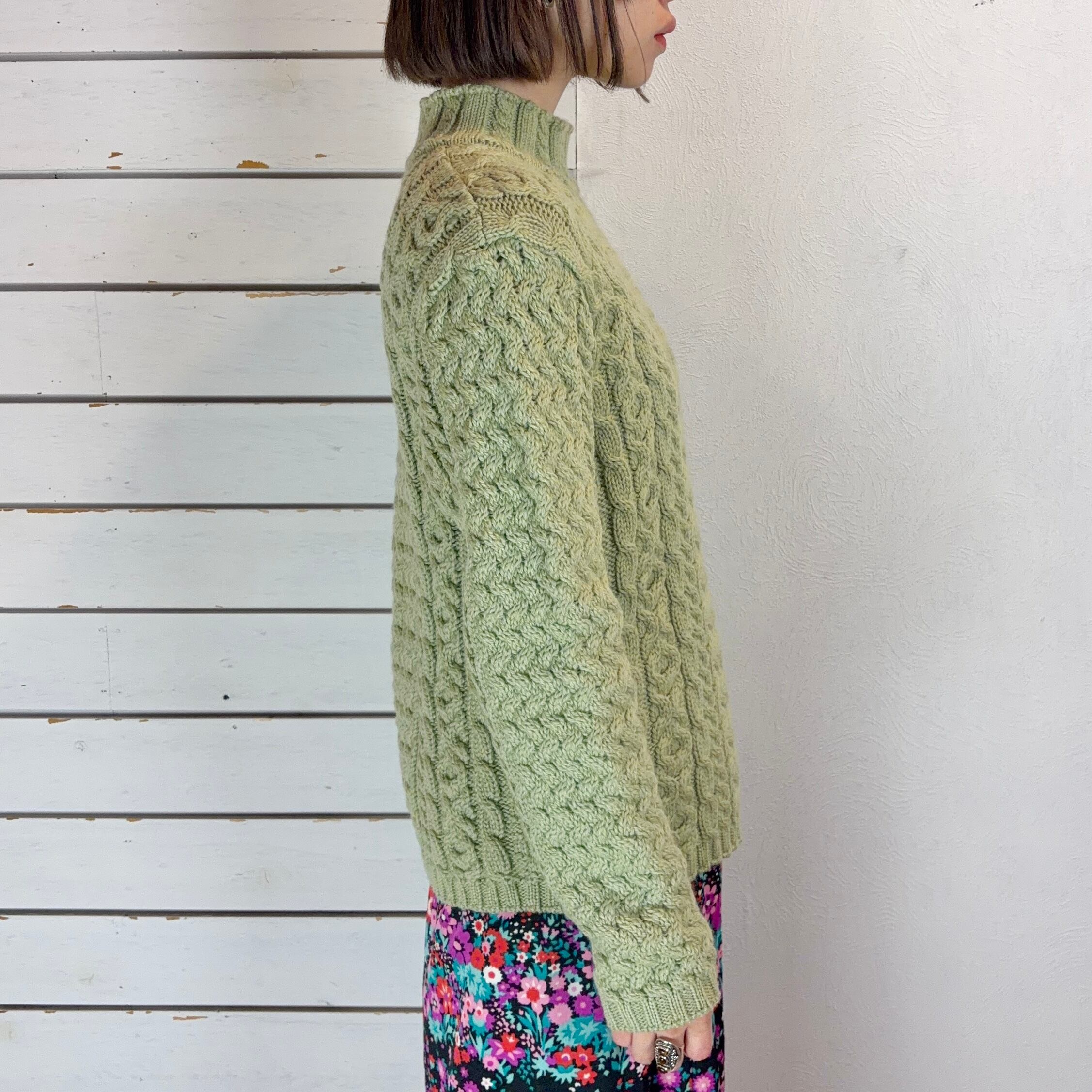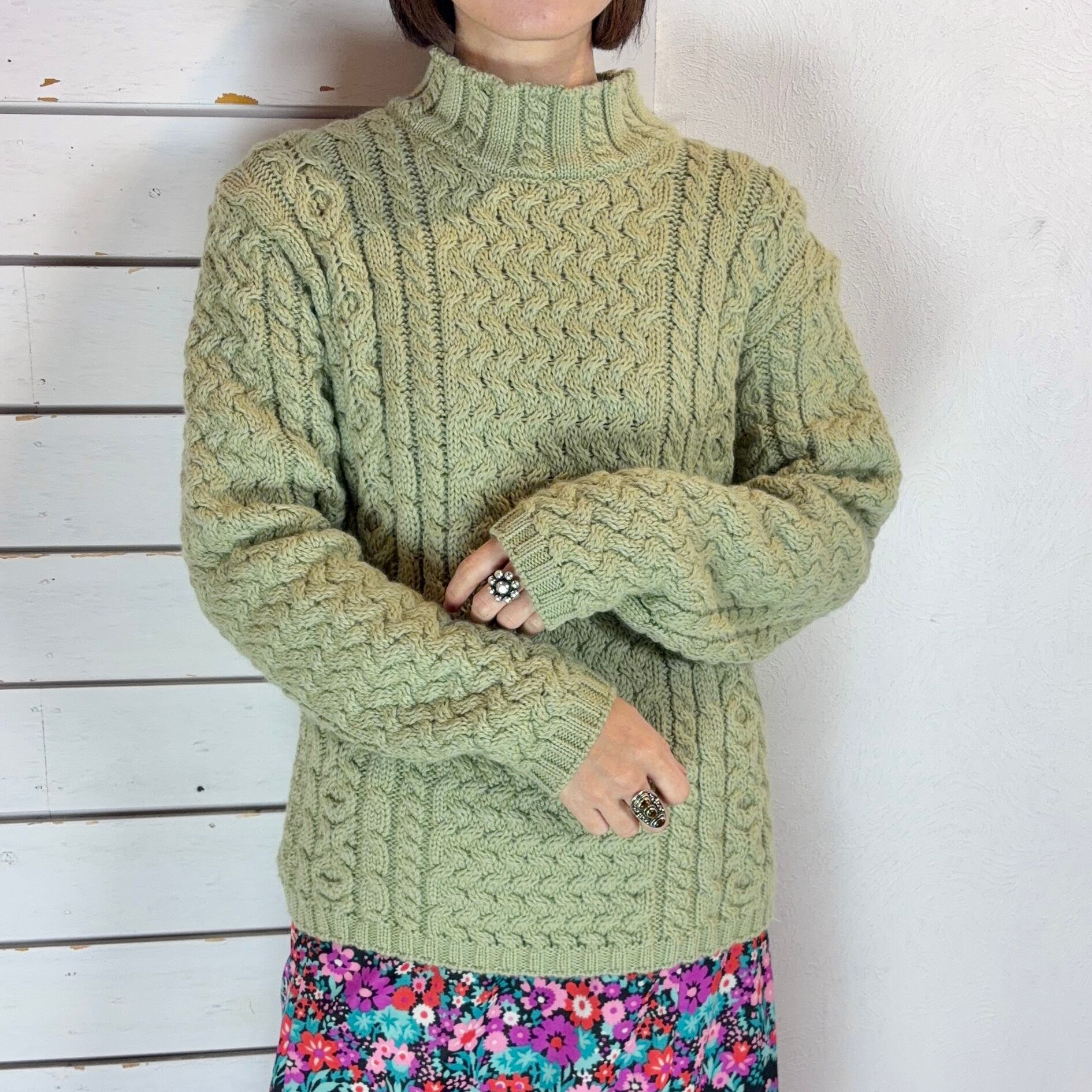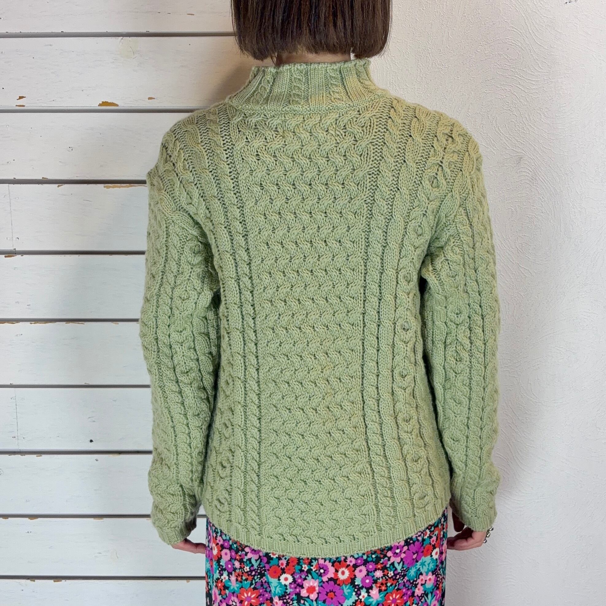 Ireland / light green mock neck hand knit