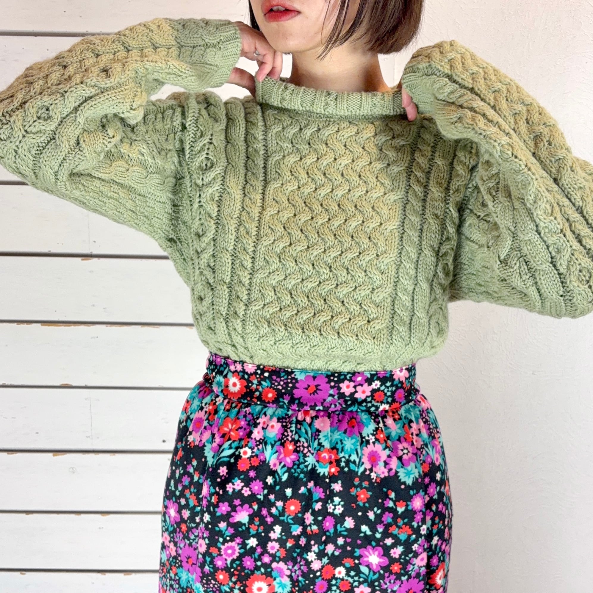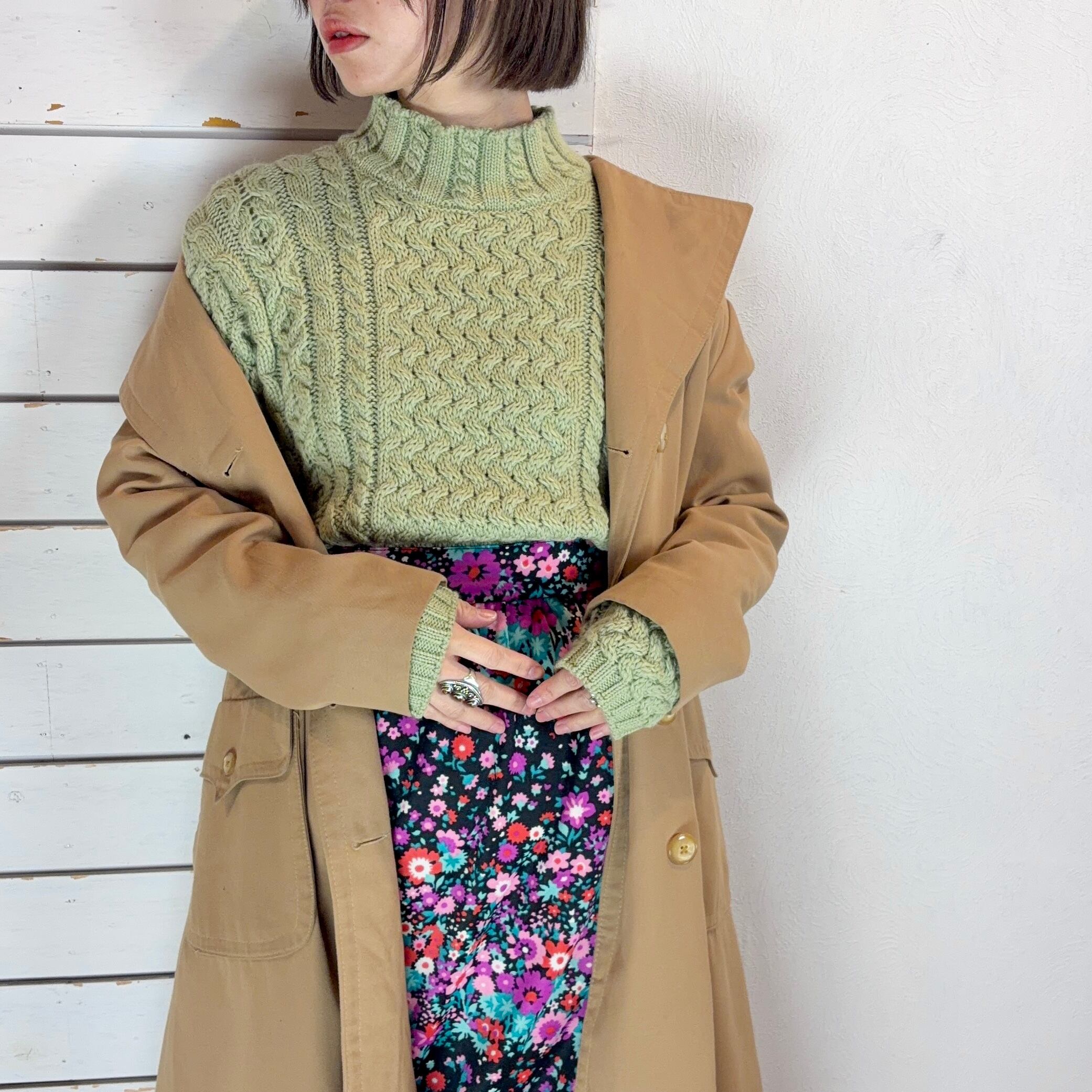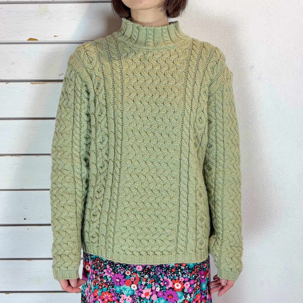 Ireland / light green mock neck hand knit