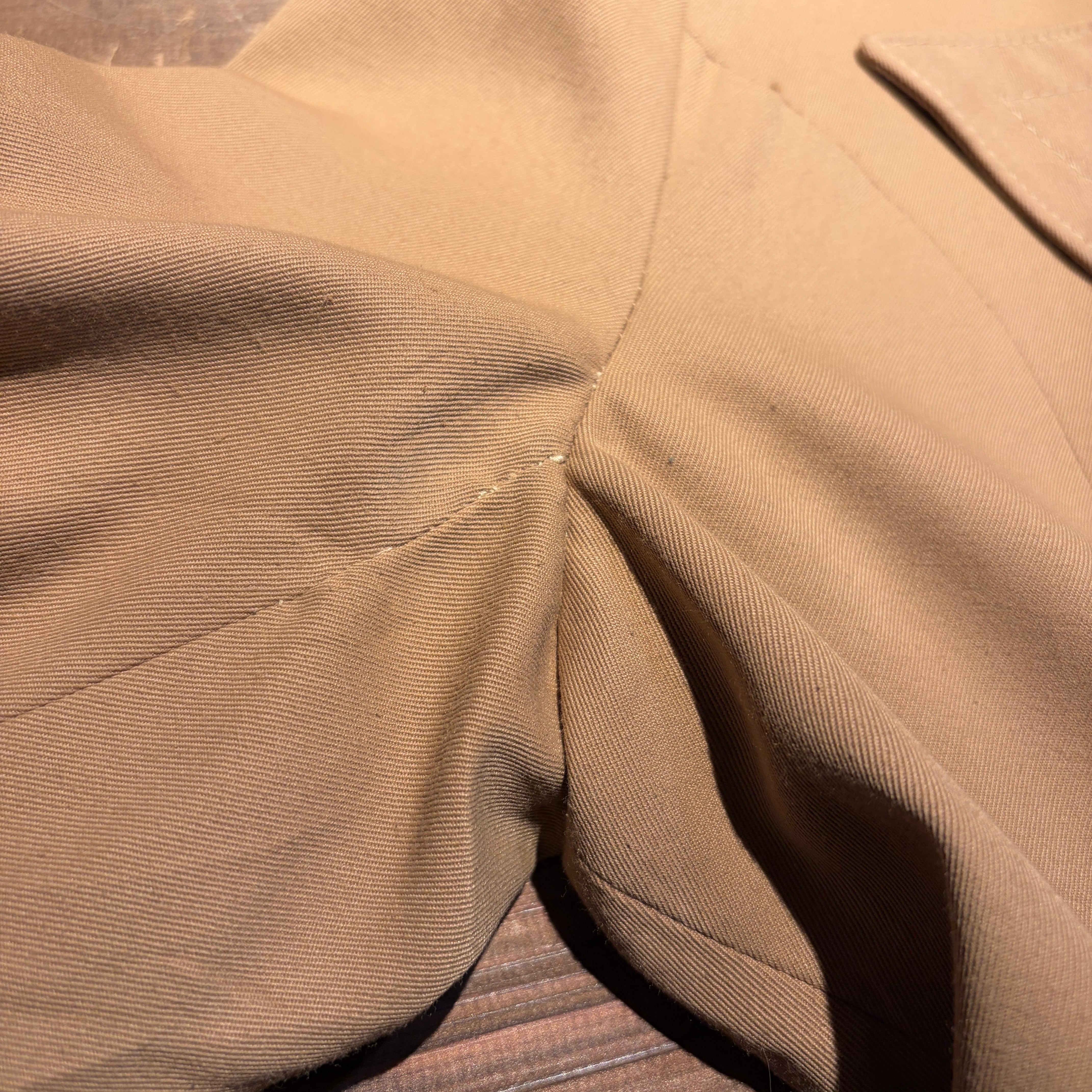 【 素材 】表記タグがなく不明ですがおそらくギャバジン生地(ポリエステル、コットン系の混合)かと思われます。