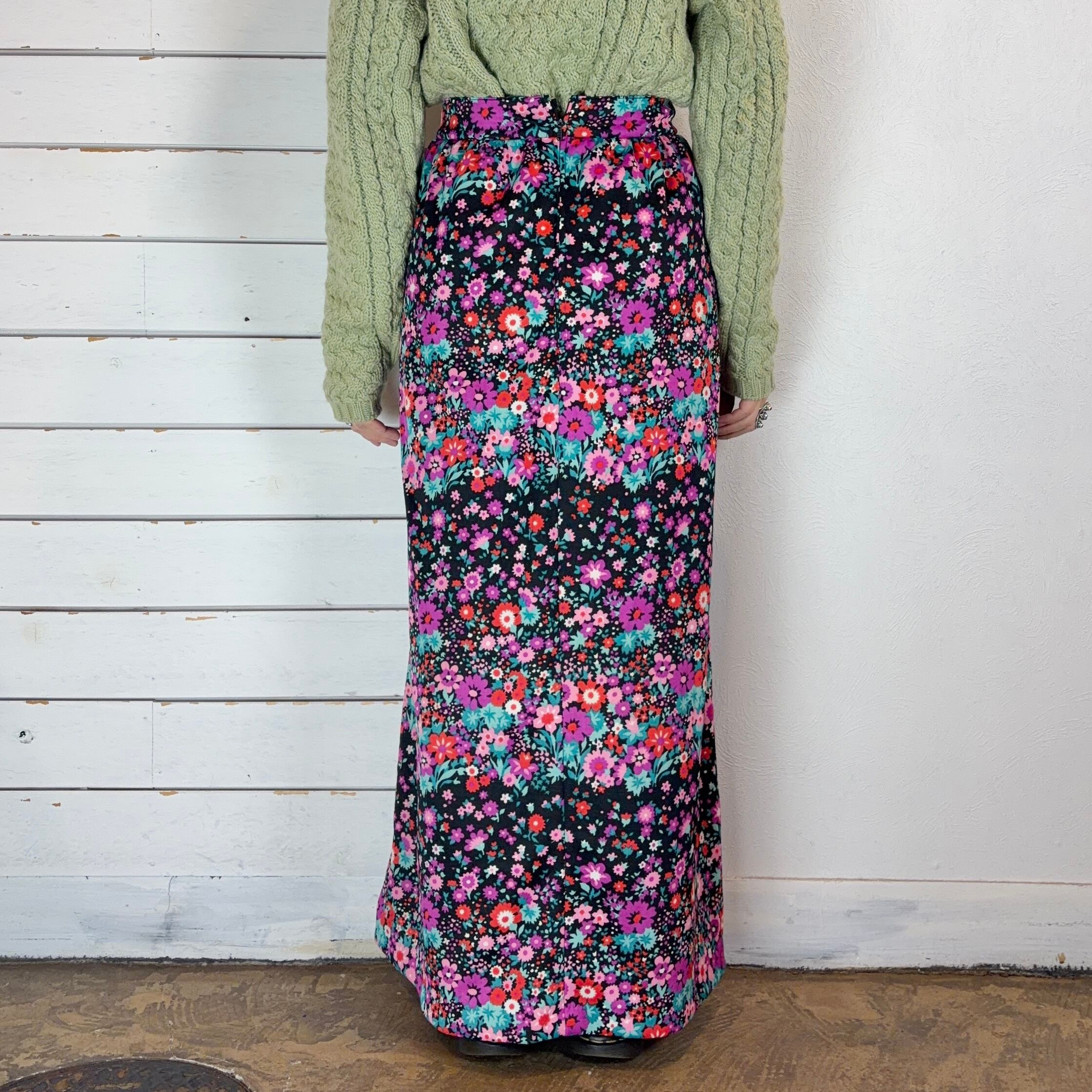 Euro 70s / flower print maxi skirt