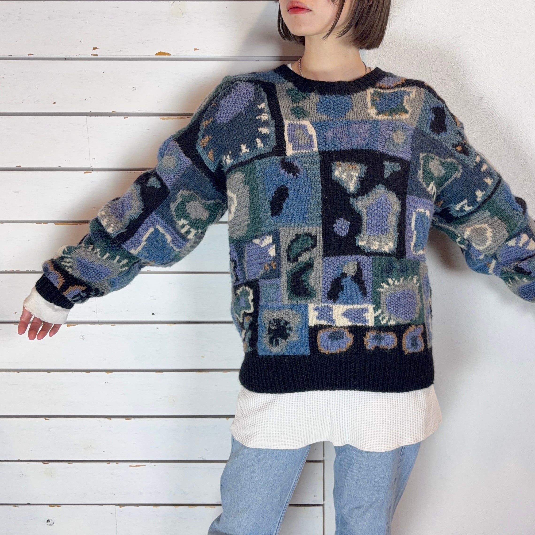 90s アートデザインウールニット