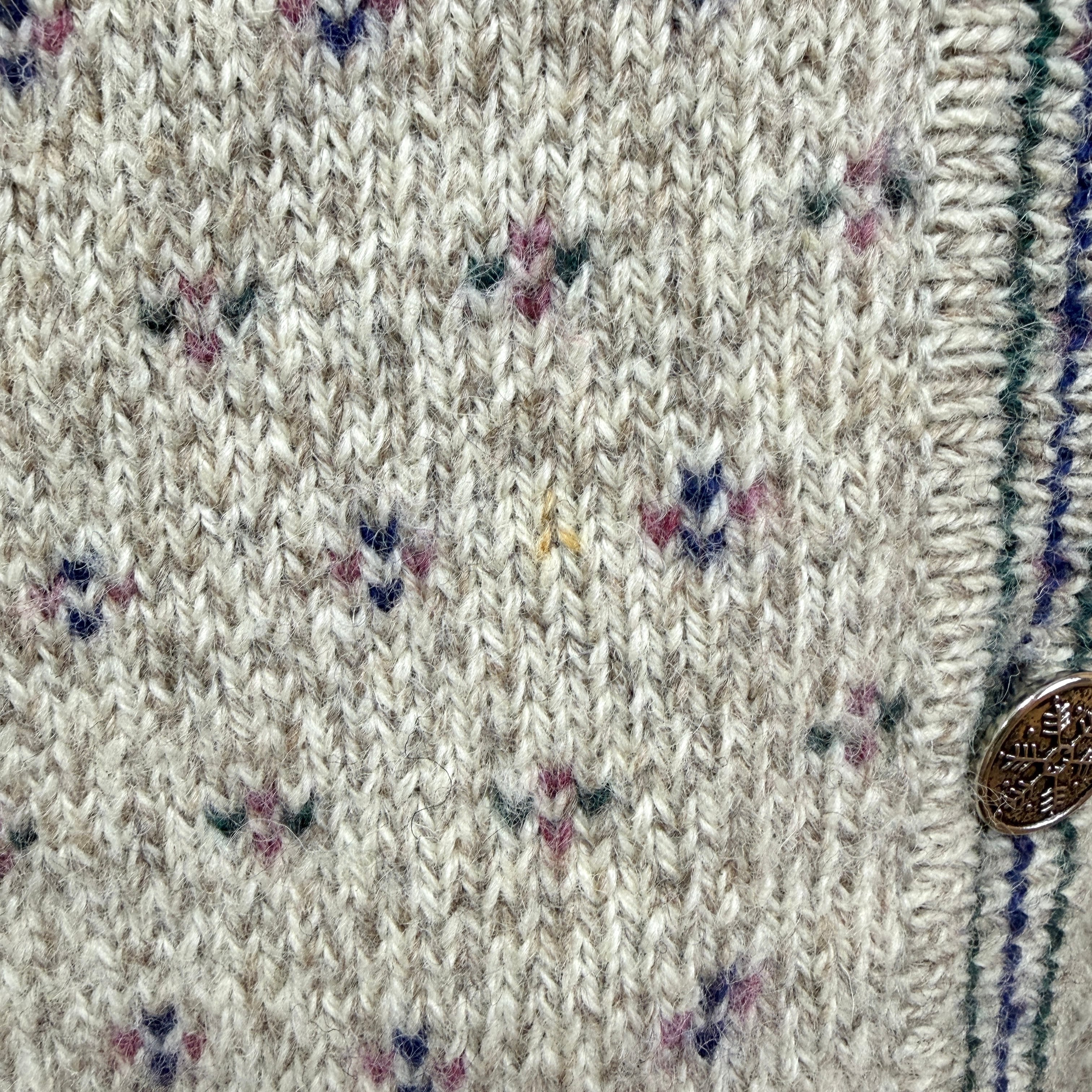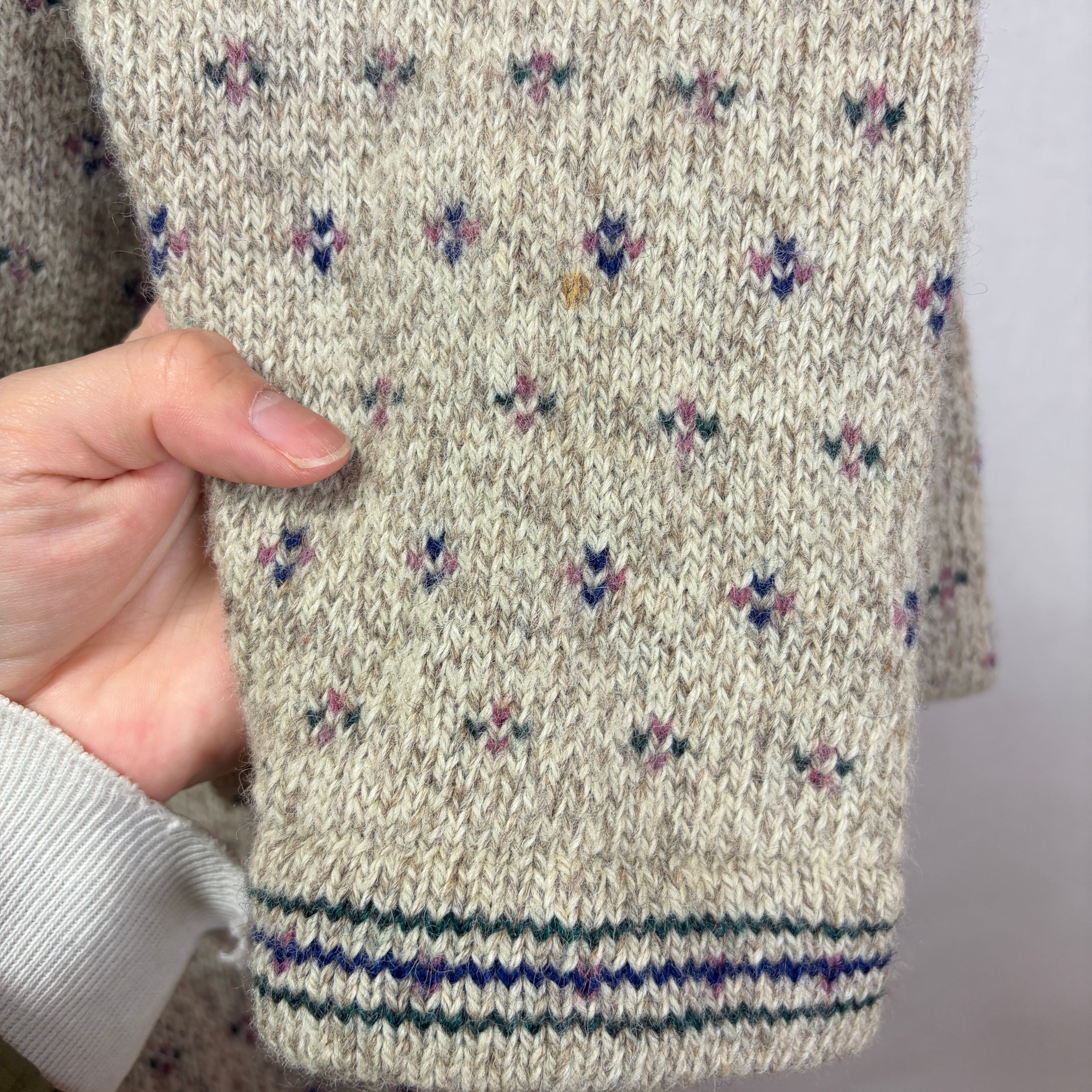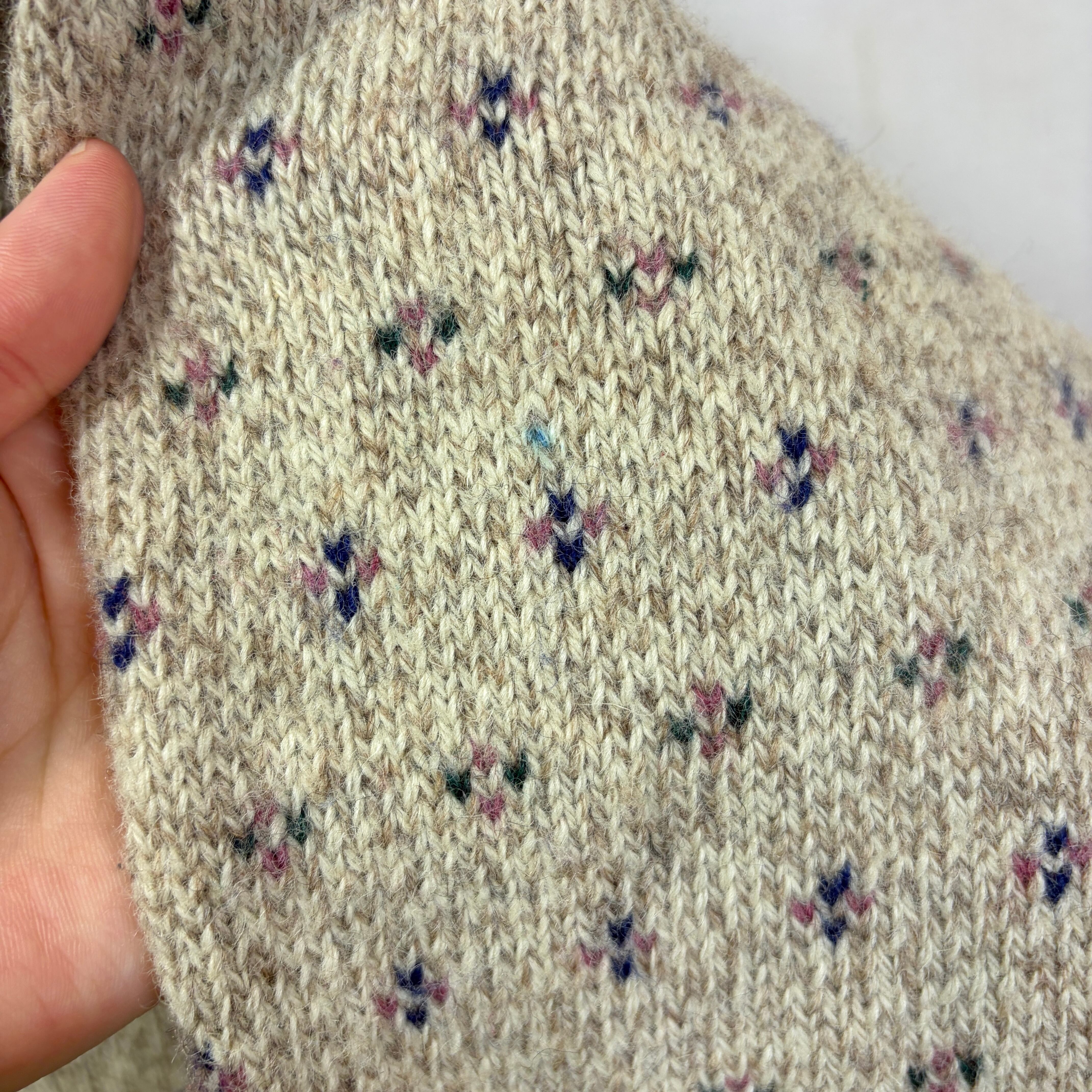 ベージュベースに小花のような細かな編み柄。