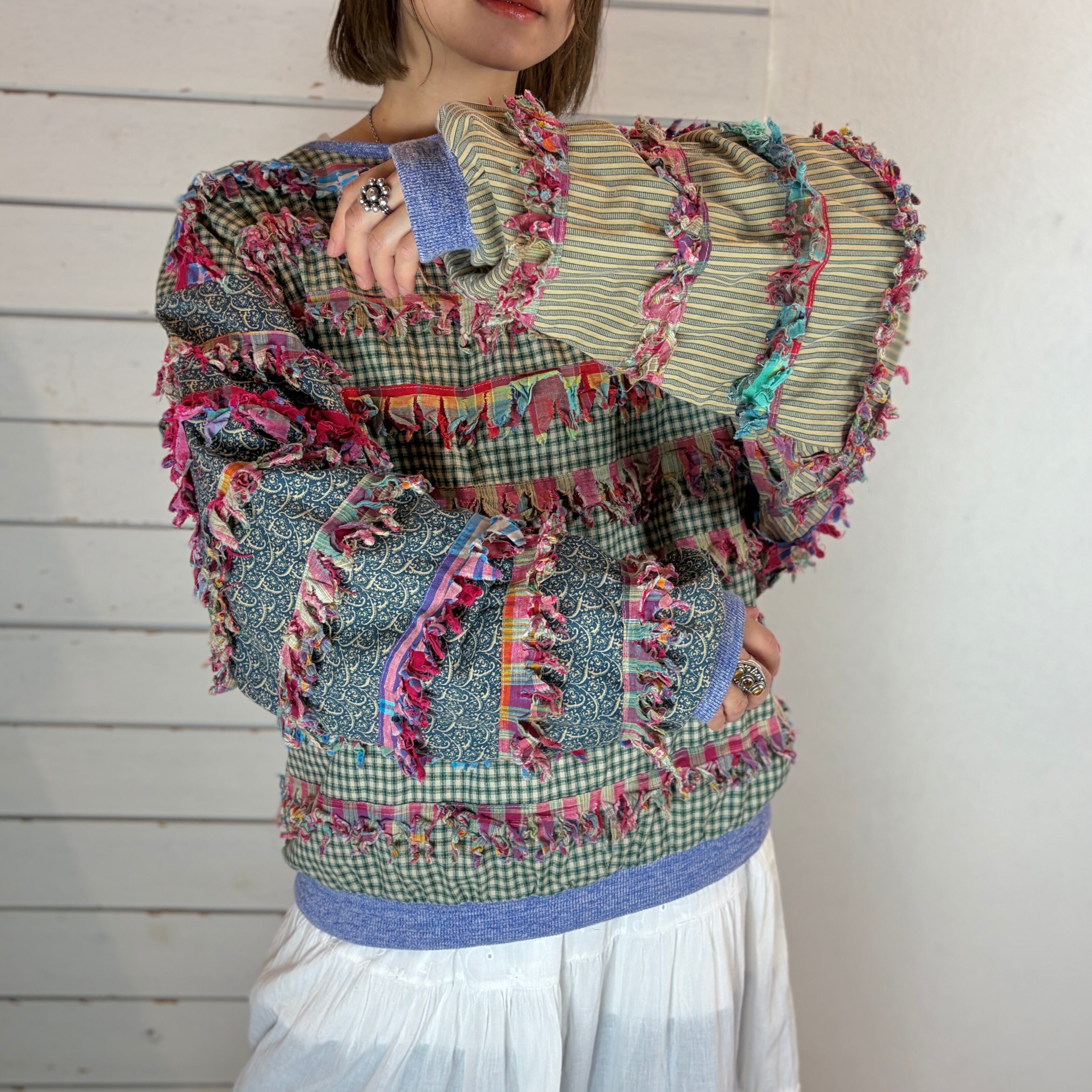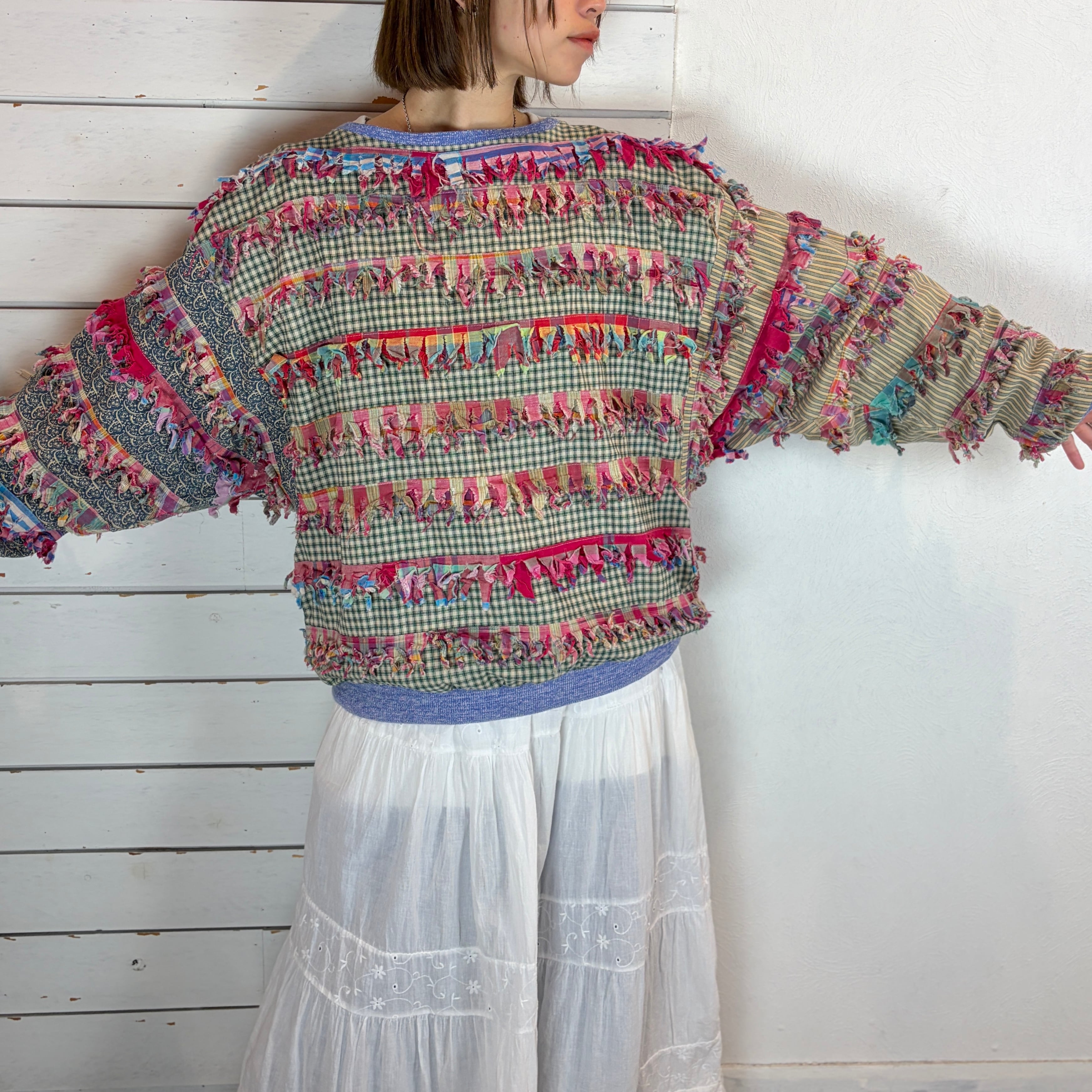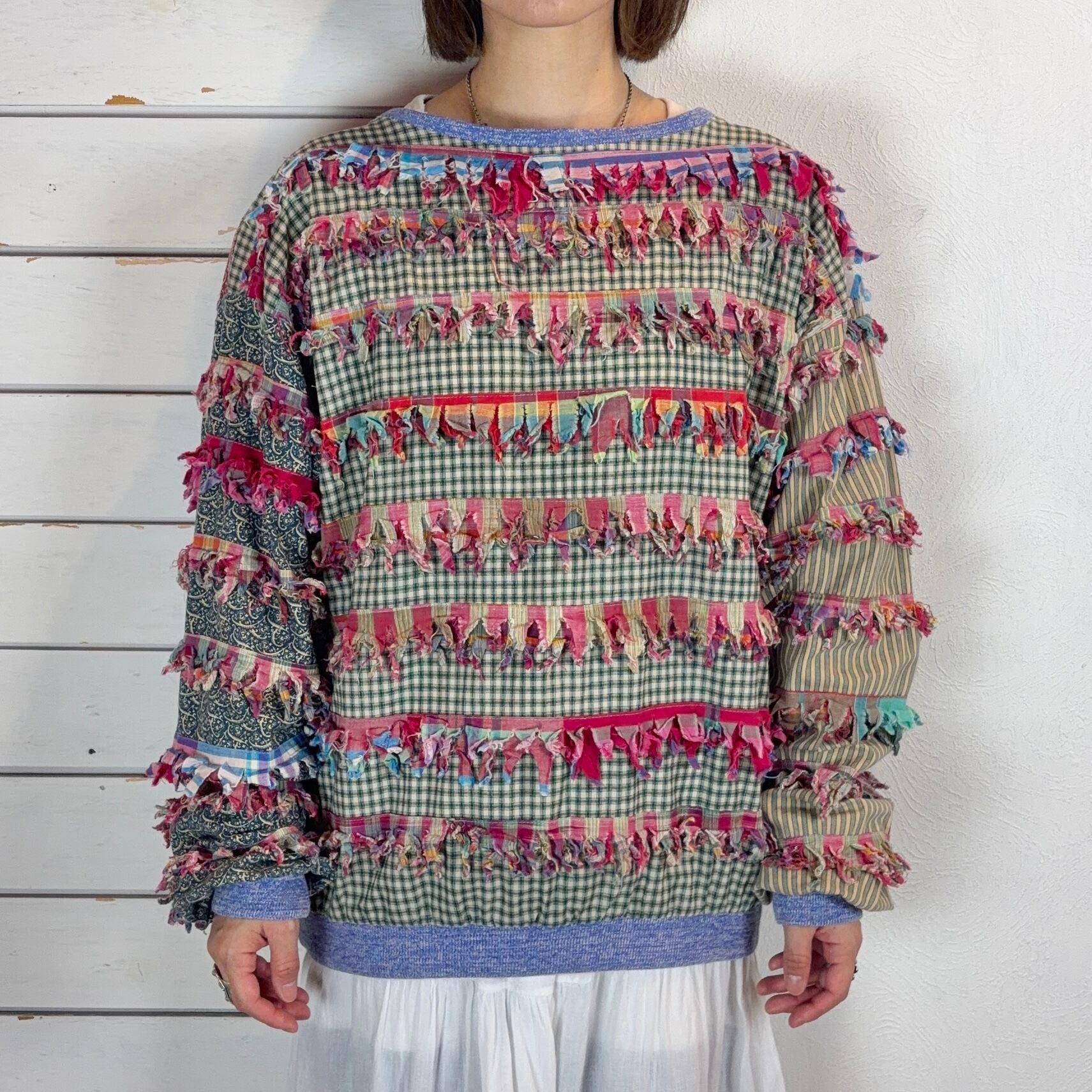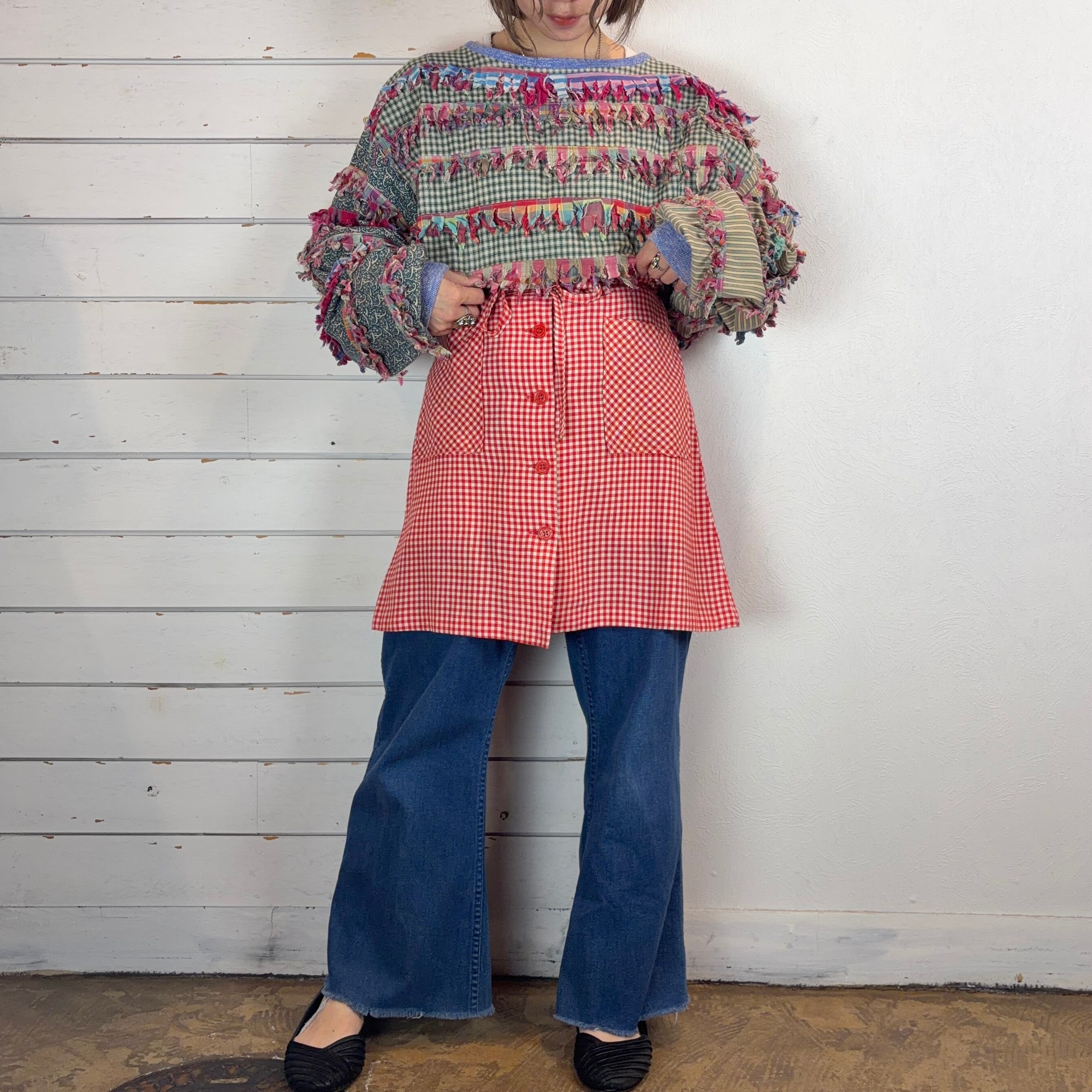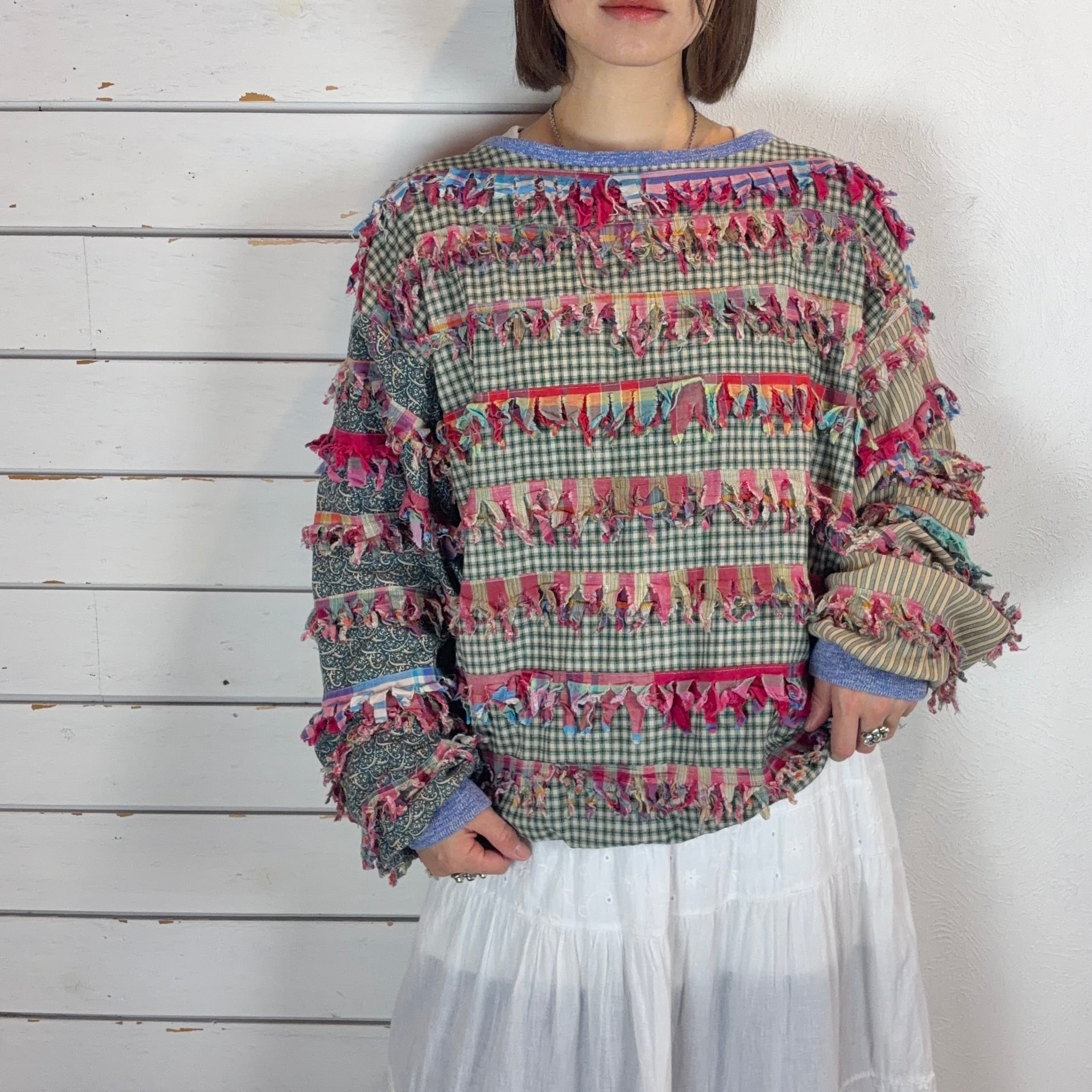 USA paula sweet / plaid× paisley fringe tops