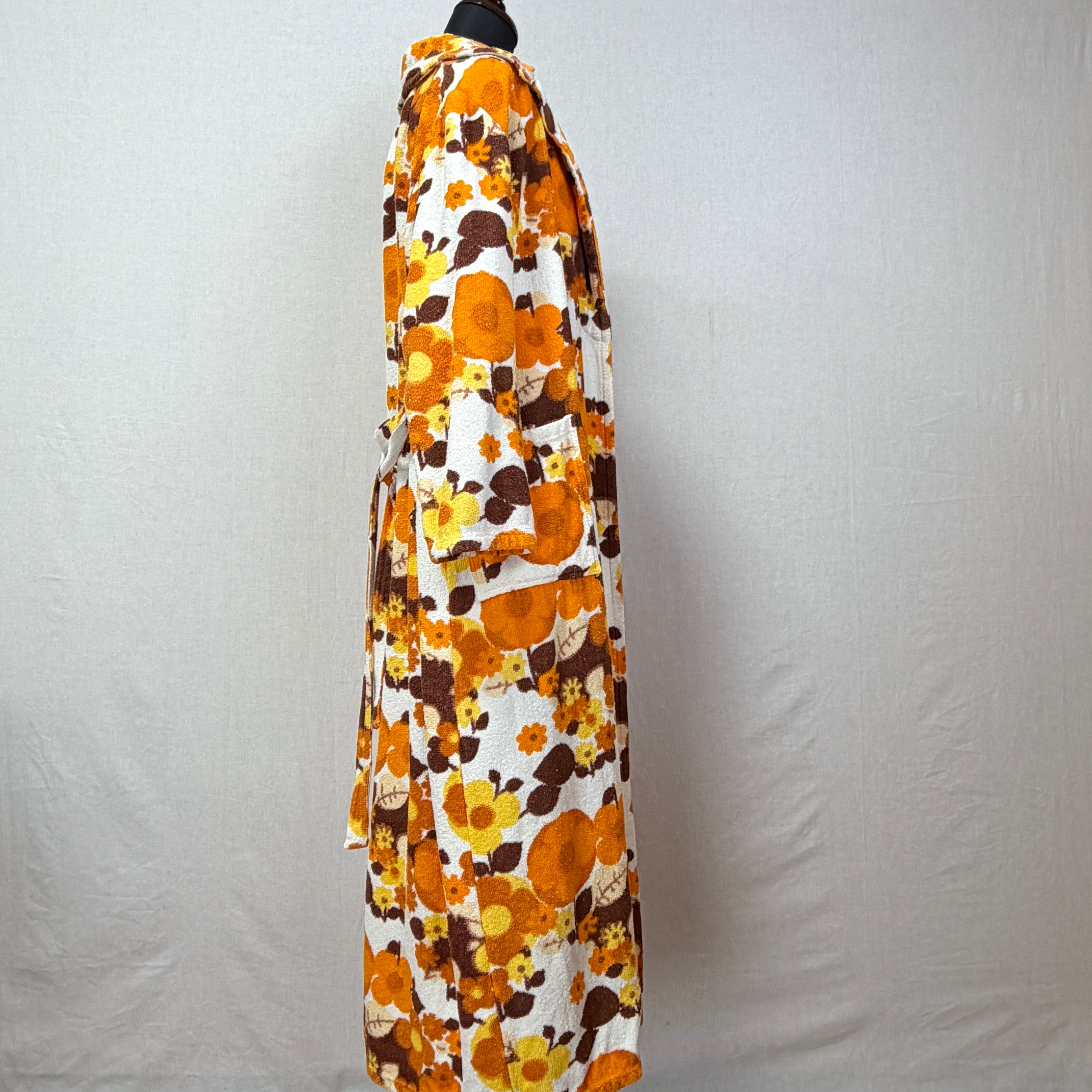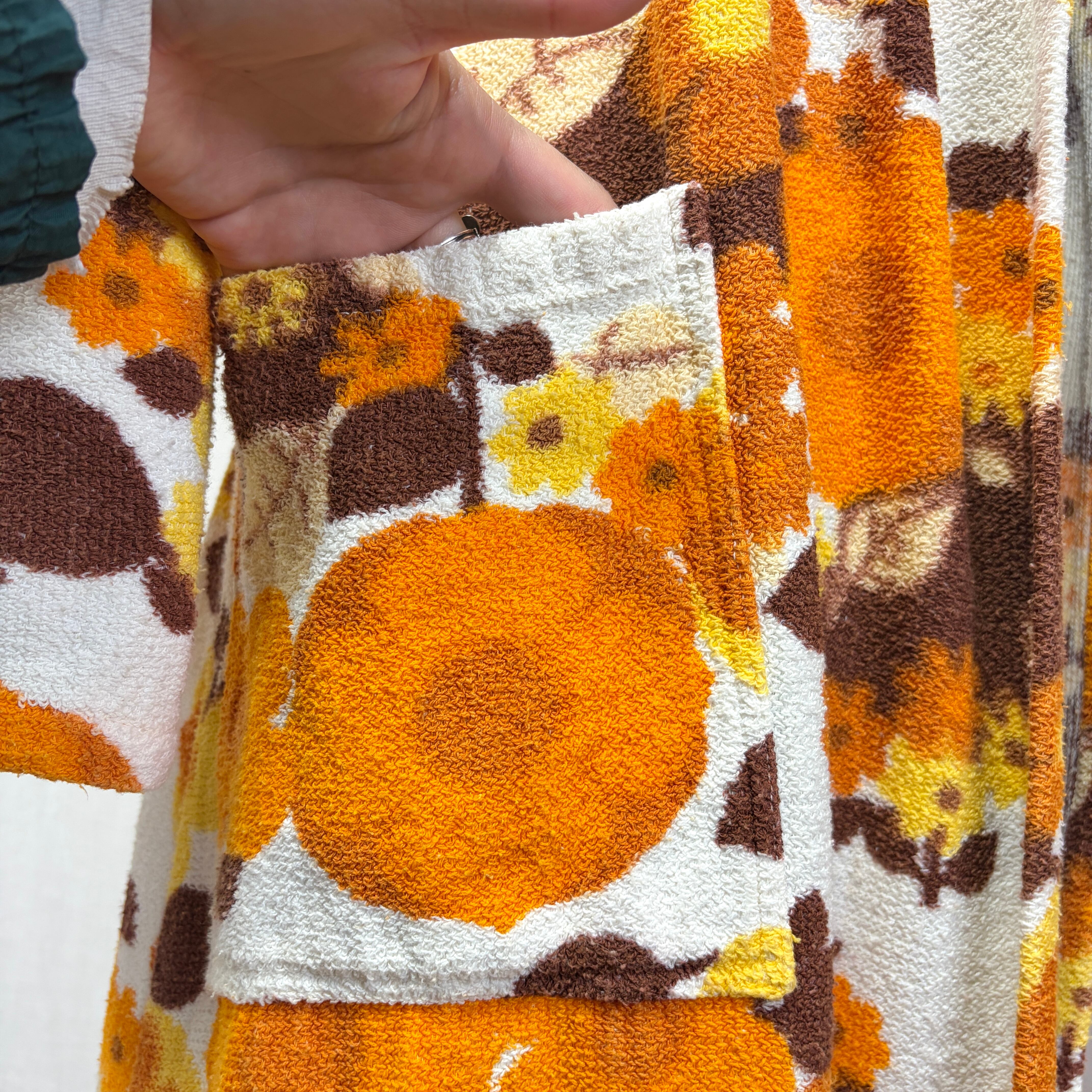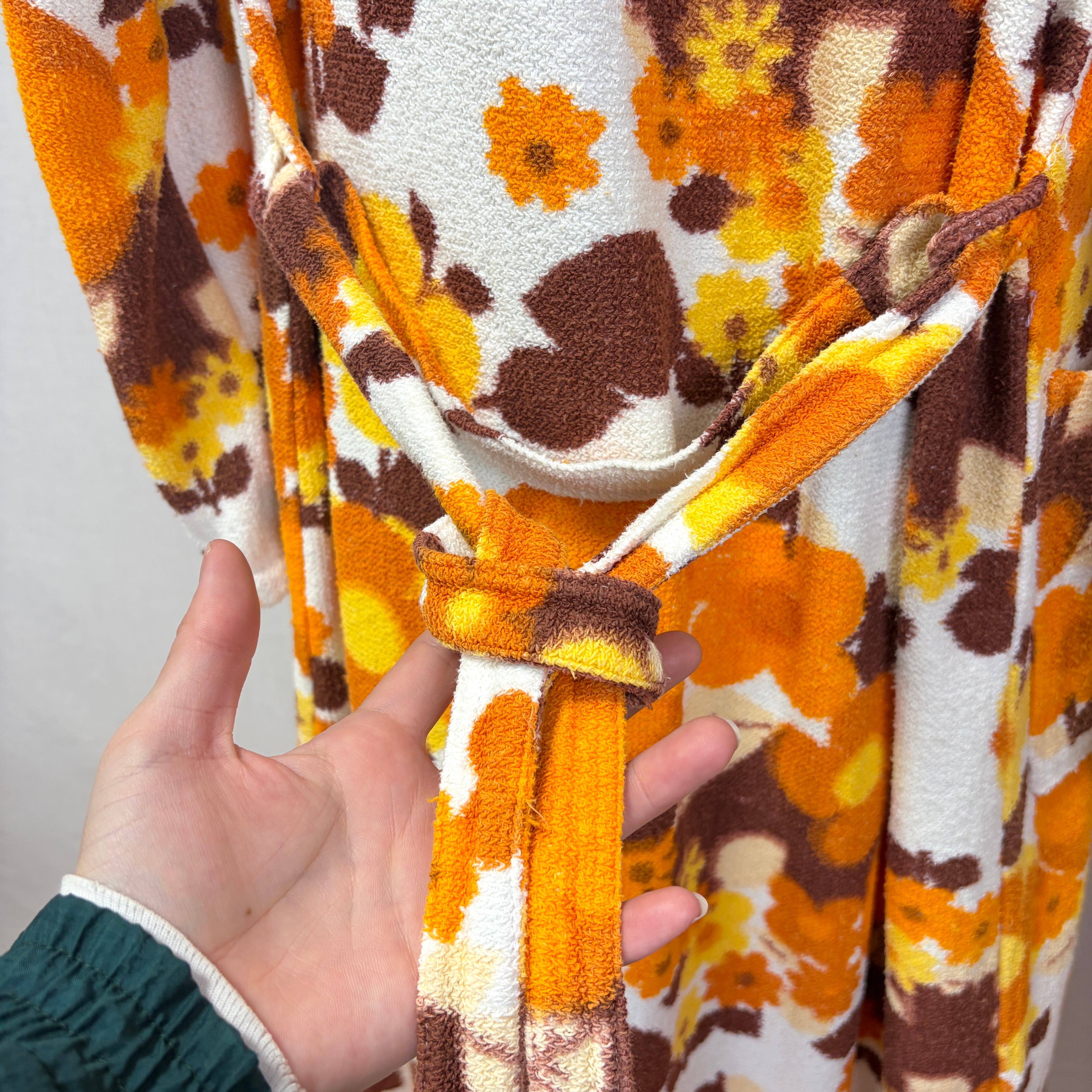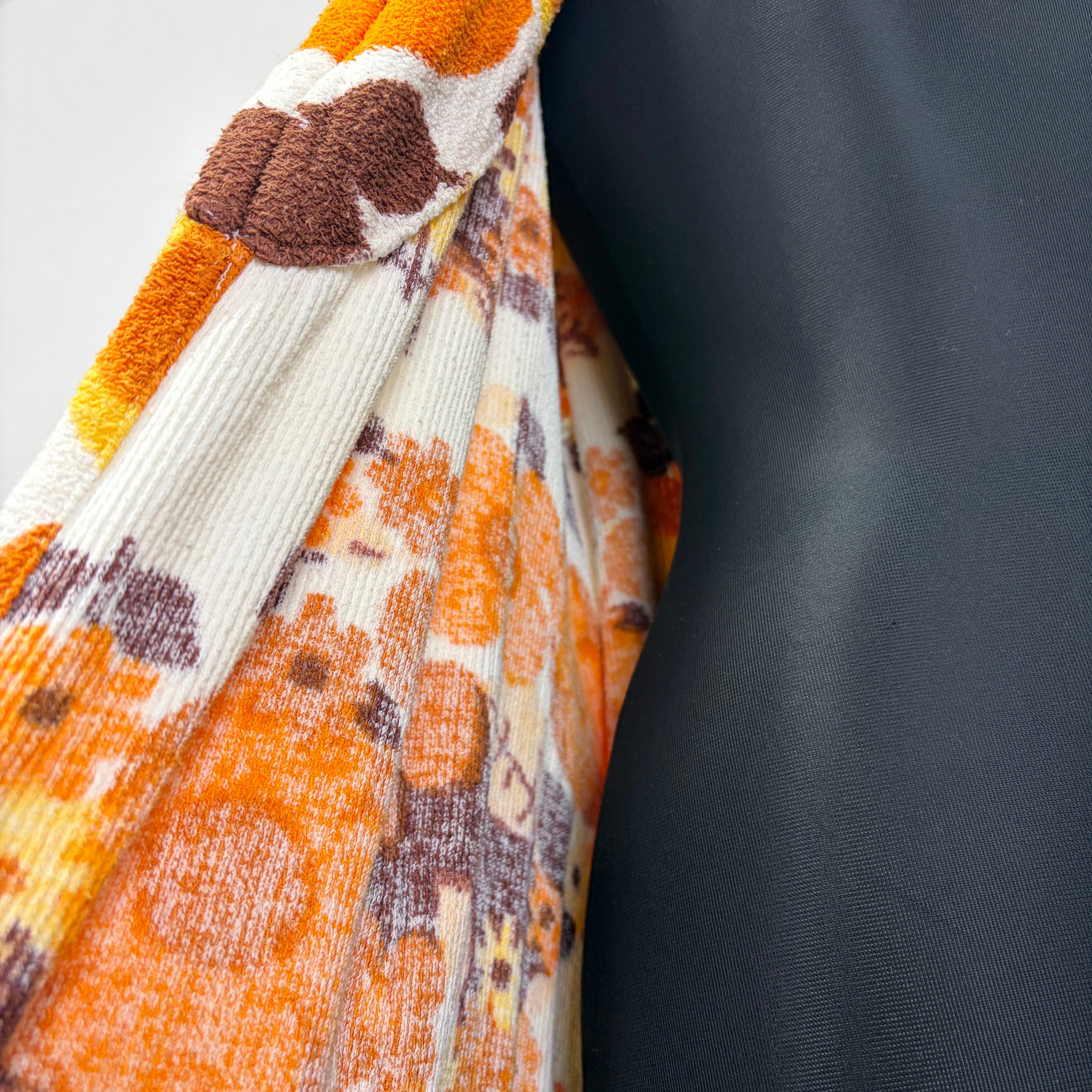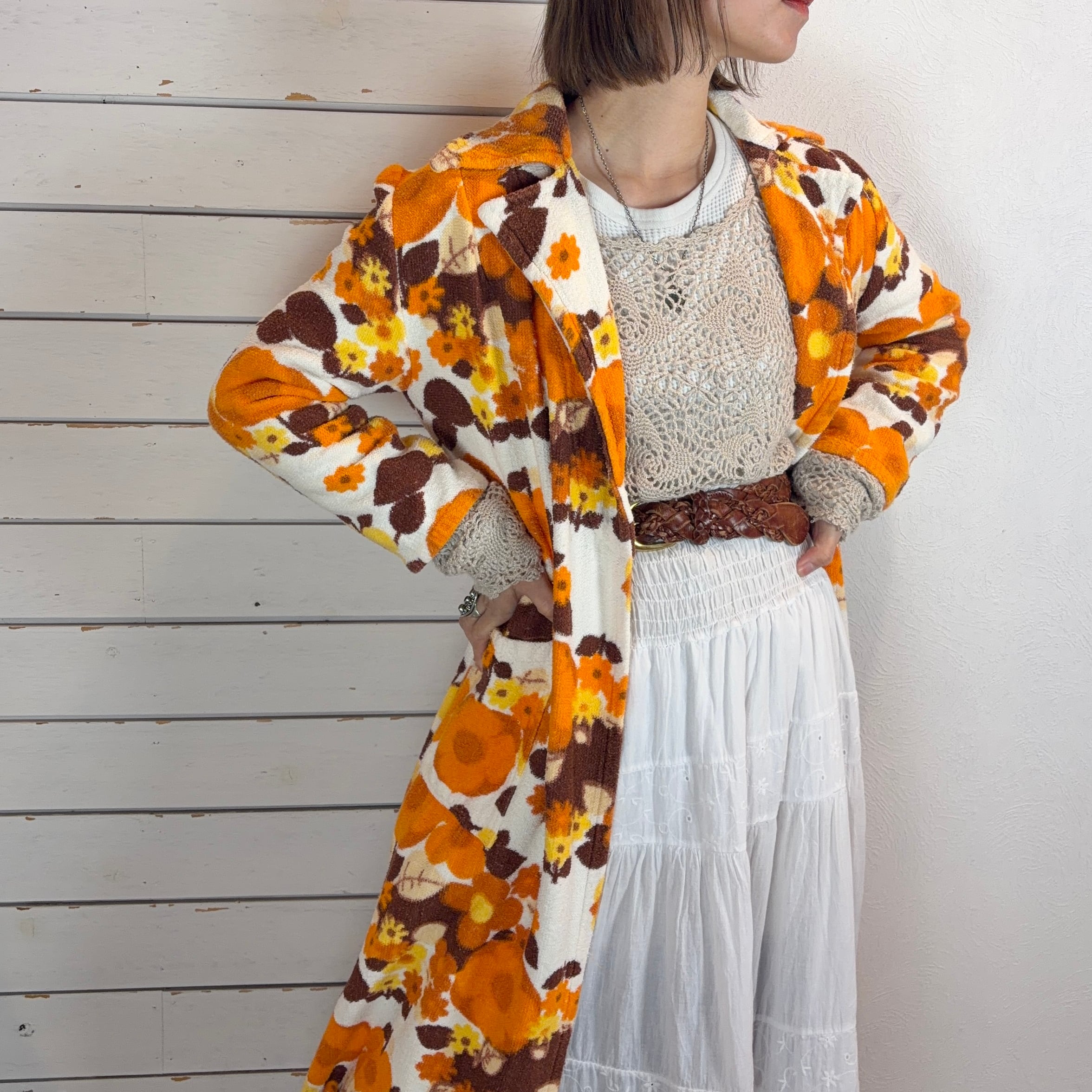 しっかりめのパイル生地で軽い羽織りとしてはもちろん、備えつけの紐や自身のベルトでウエストを絞ってワンピース感覚でも着用いただけます