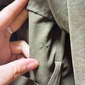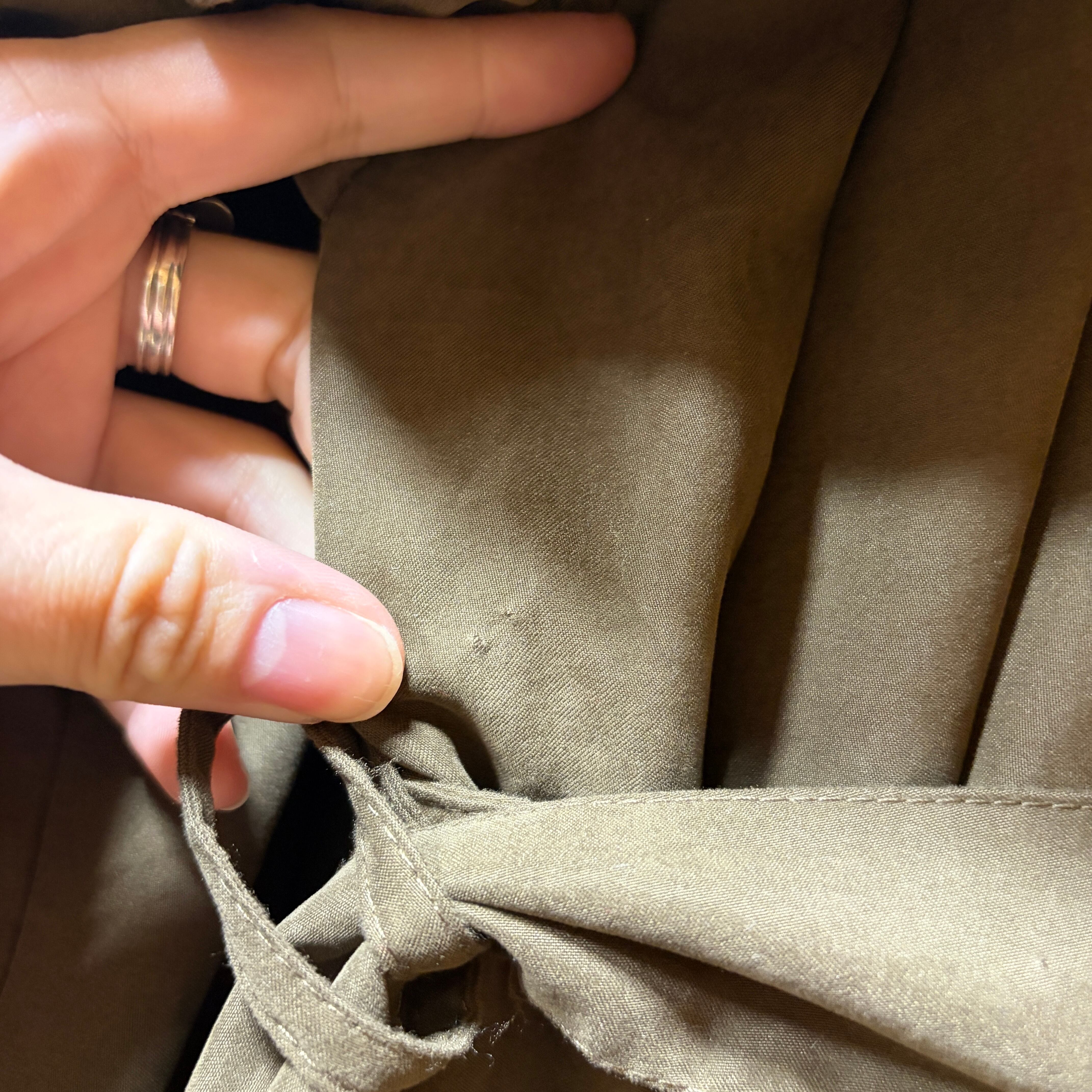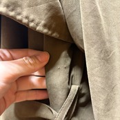 ベルトループ付近などにベルトを留めるためかピンホール穴がございます。(写真17枚目〜)