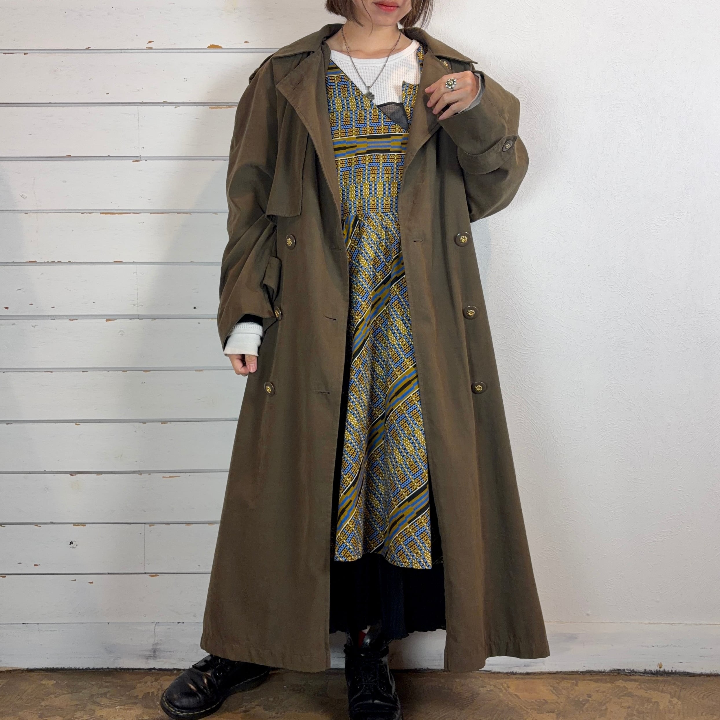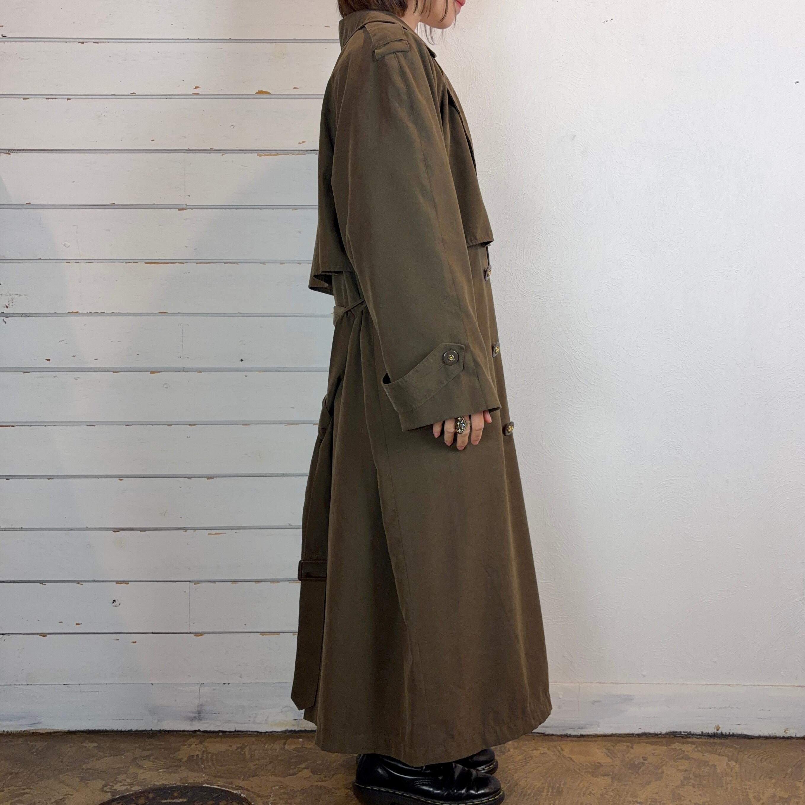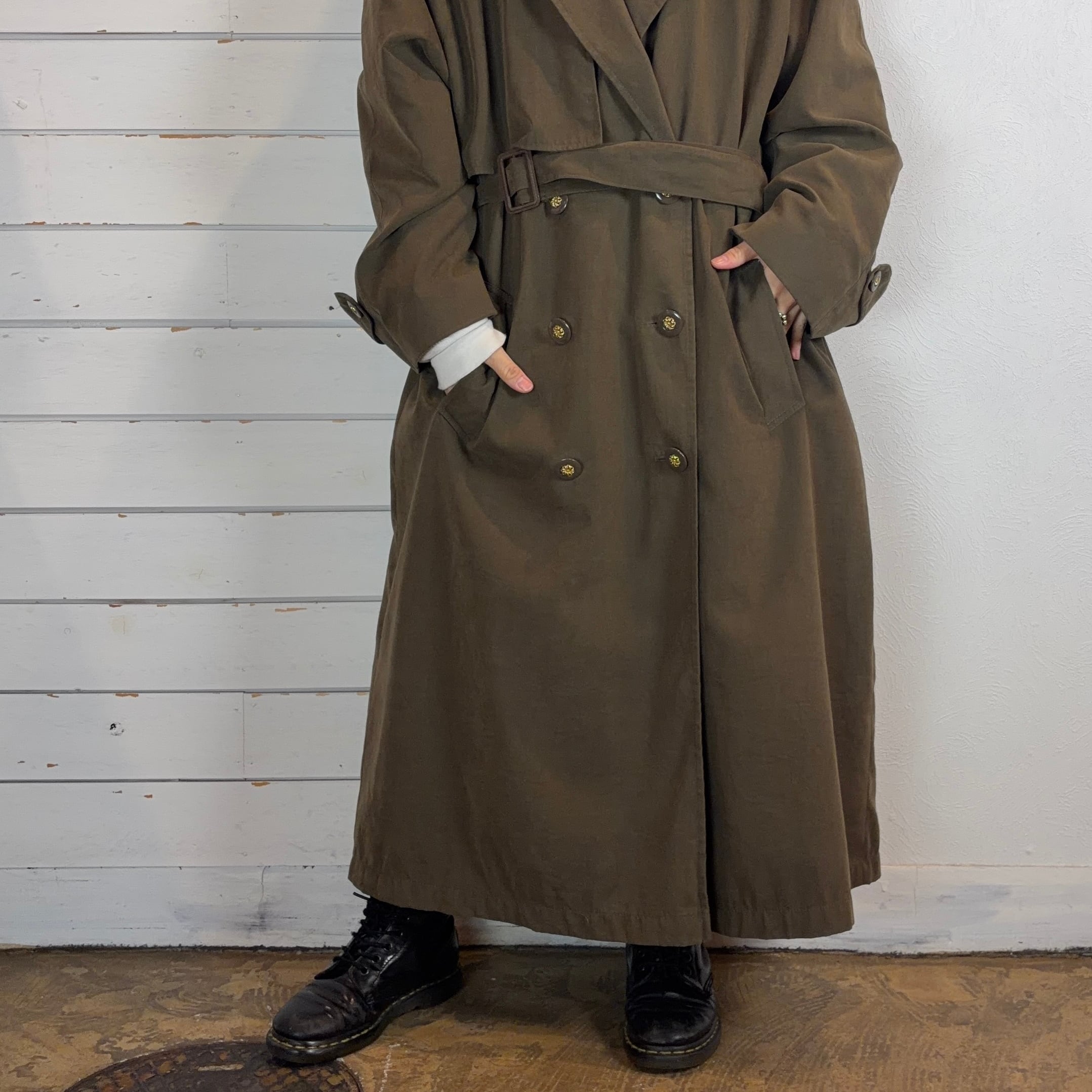 ポーランド製でしっとりとしたフェイクスエード調の質感が魅力のマキシ丈トレンチコート