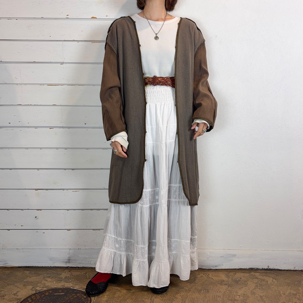 深みのあるブラウンカラーは大変使いやすくエイジレスに着用できるかと思います