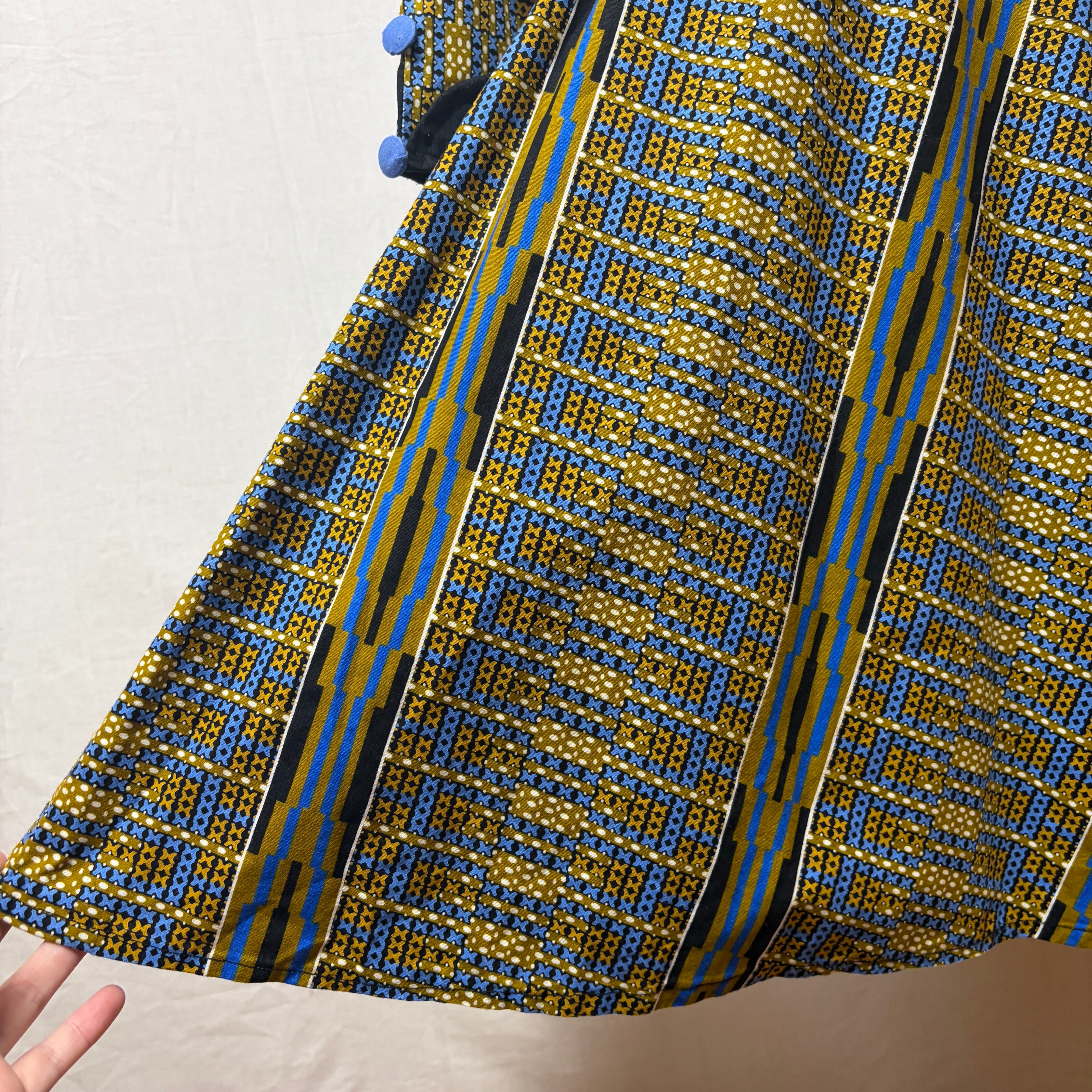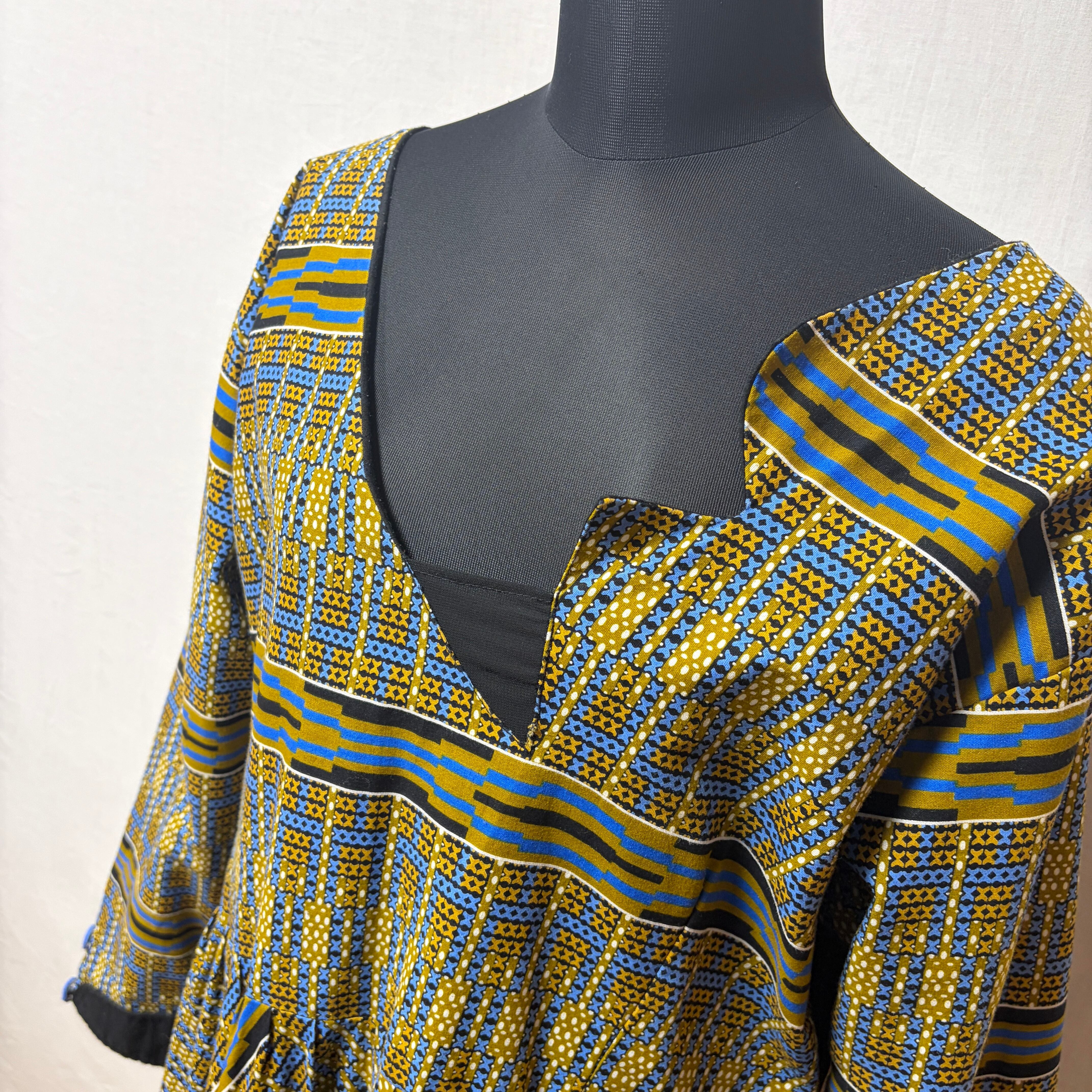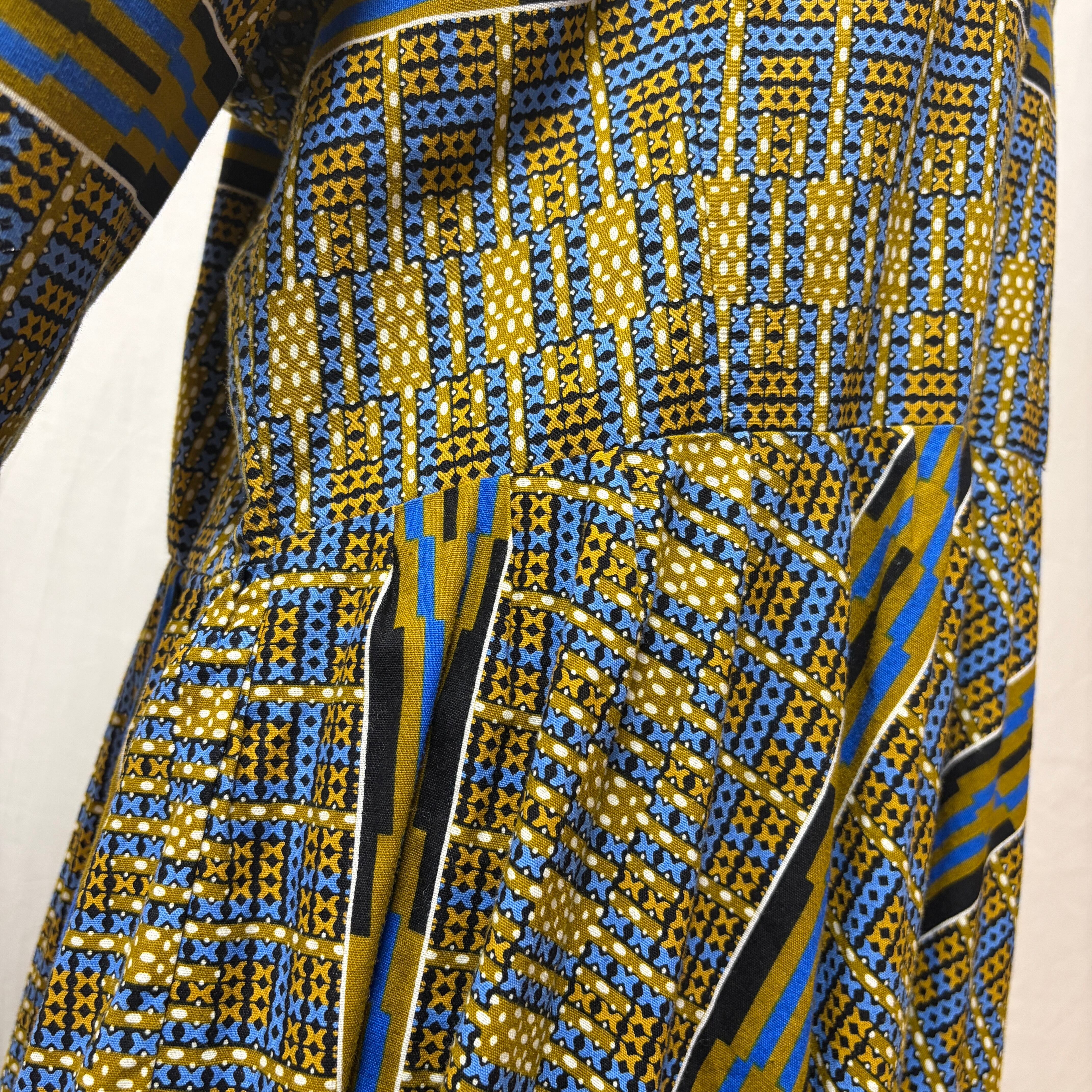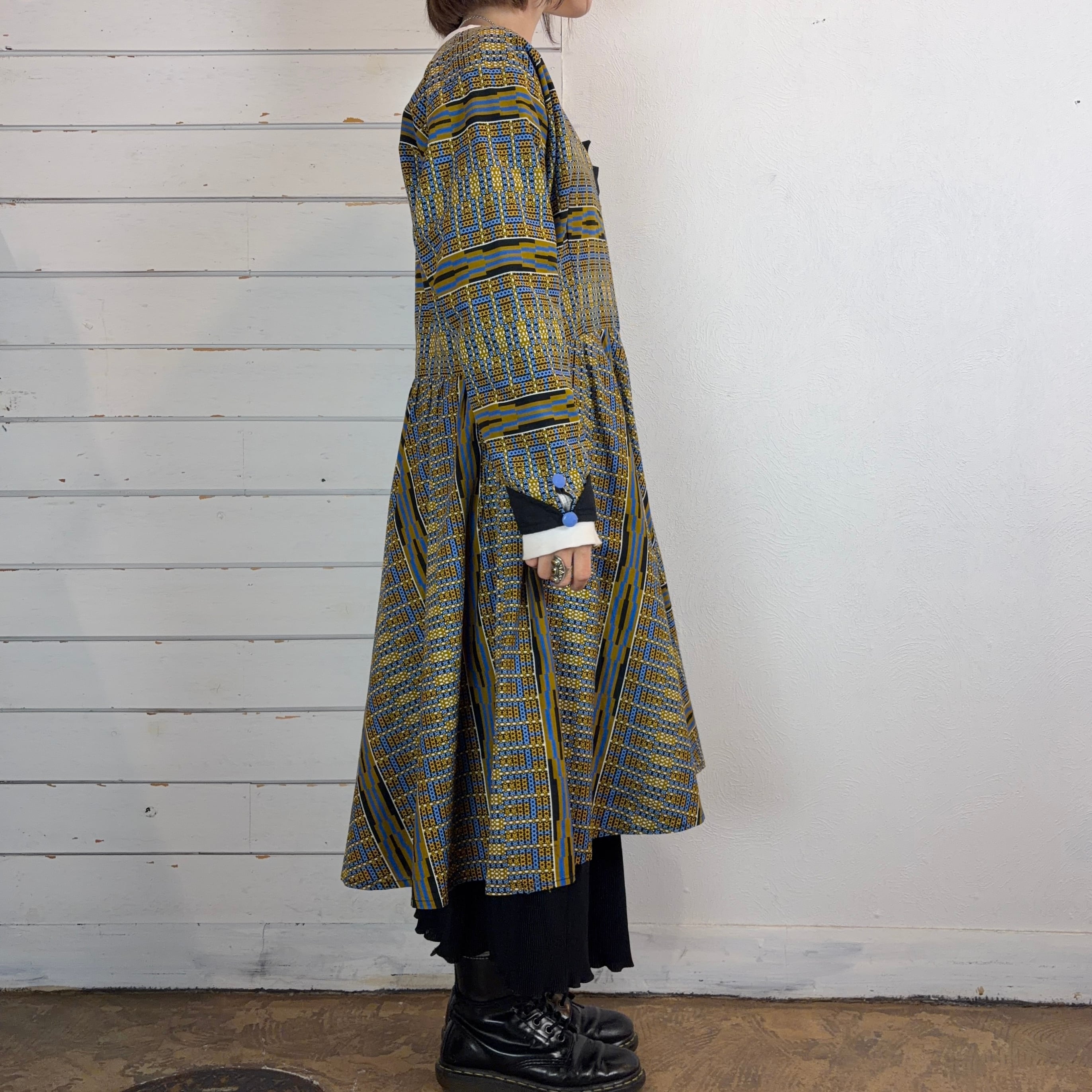 幾何学模様が印象的なアフリカンバティックのワンピース