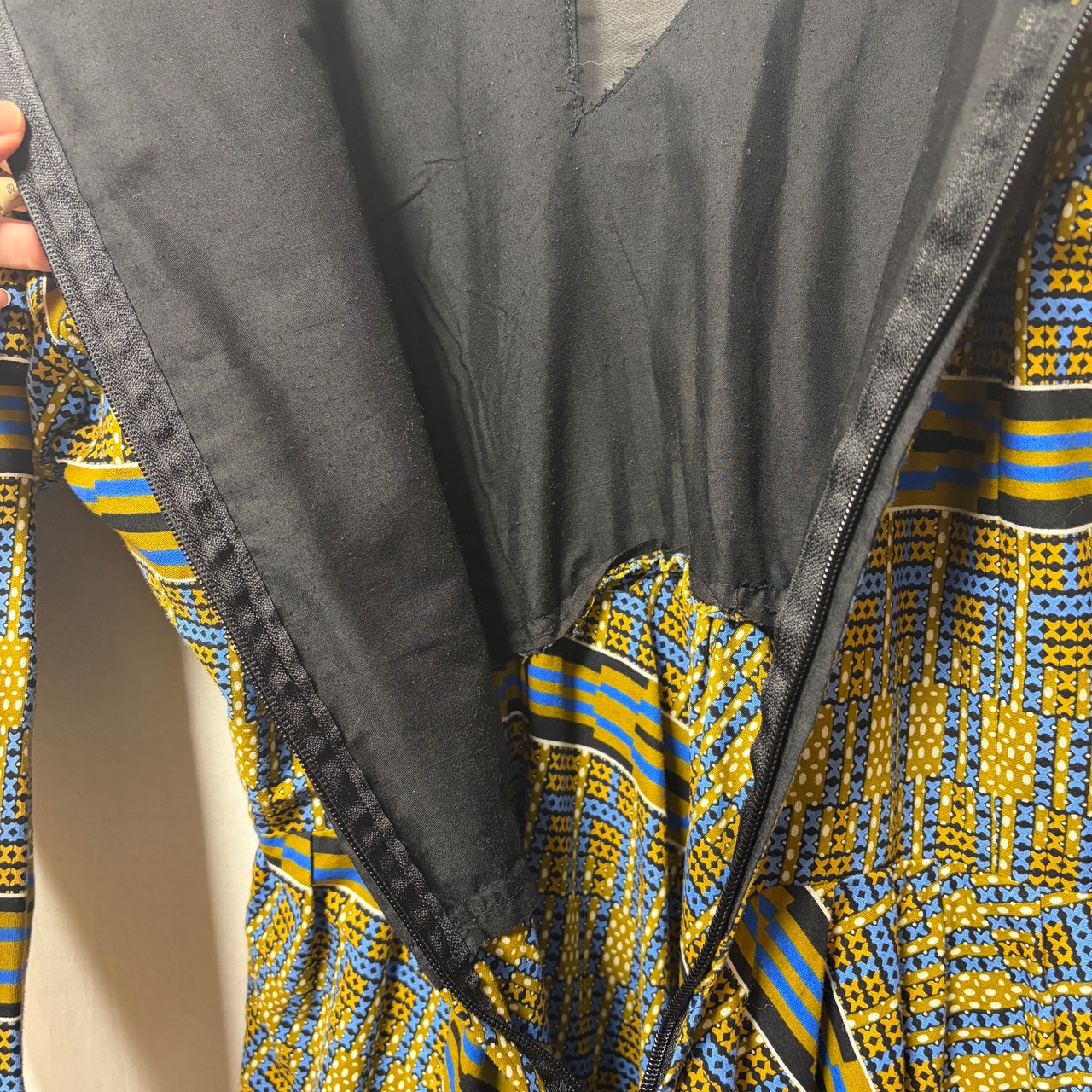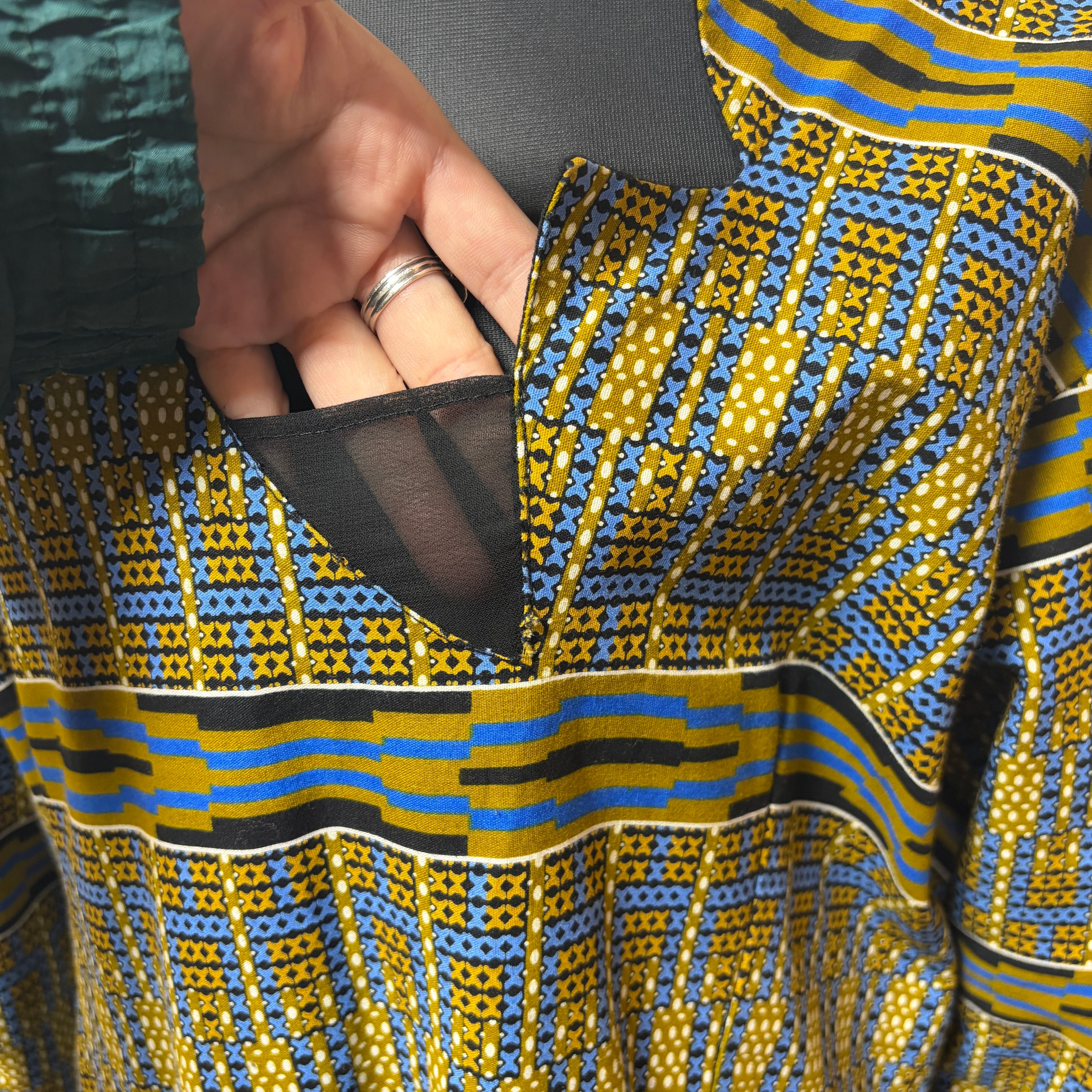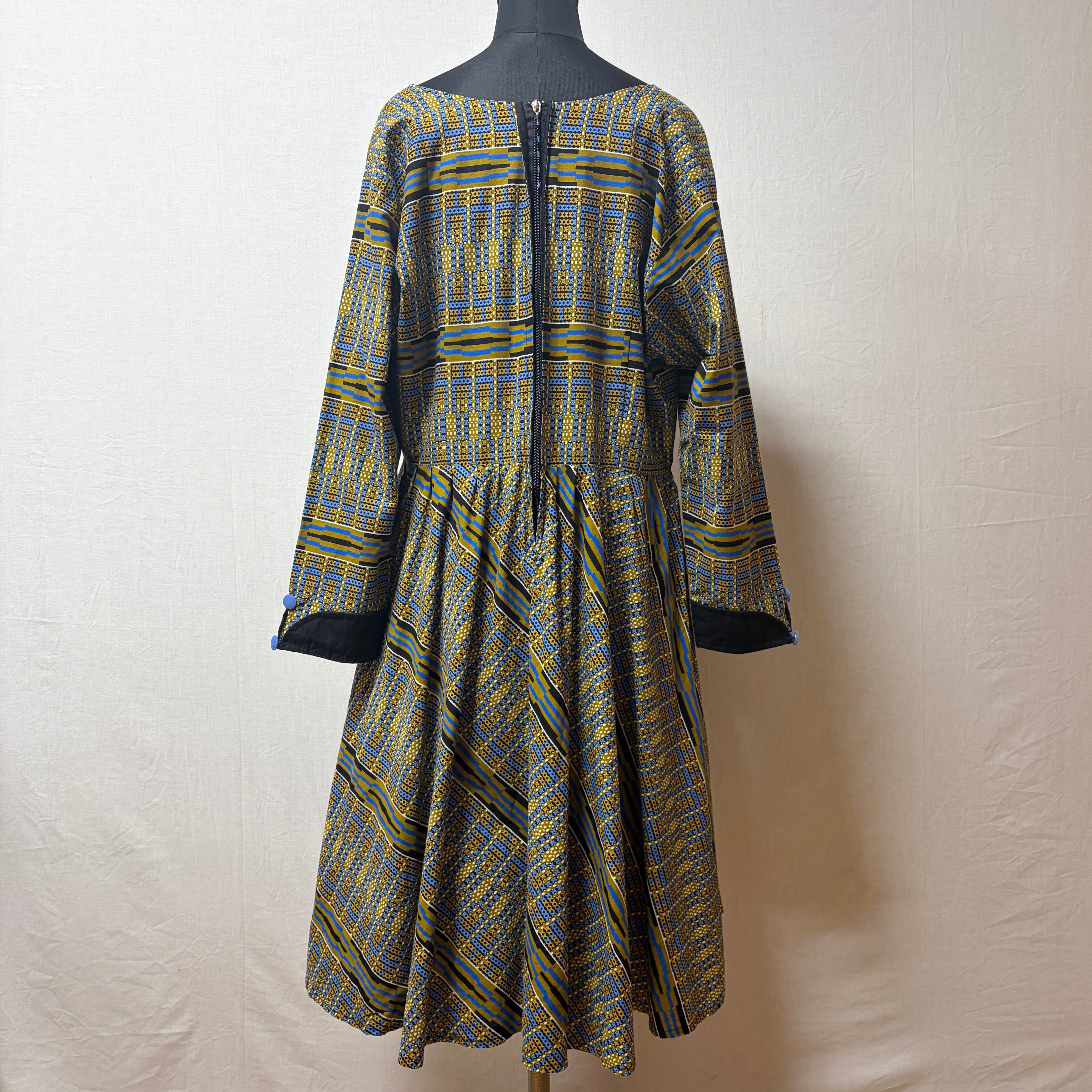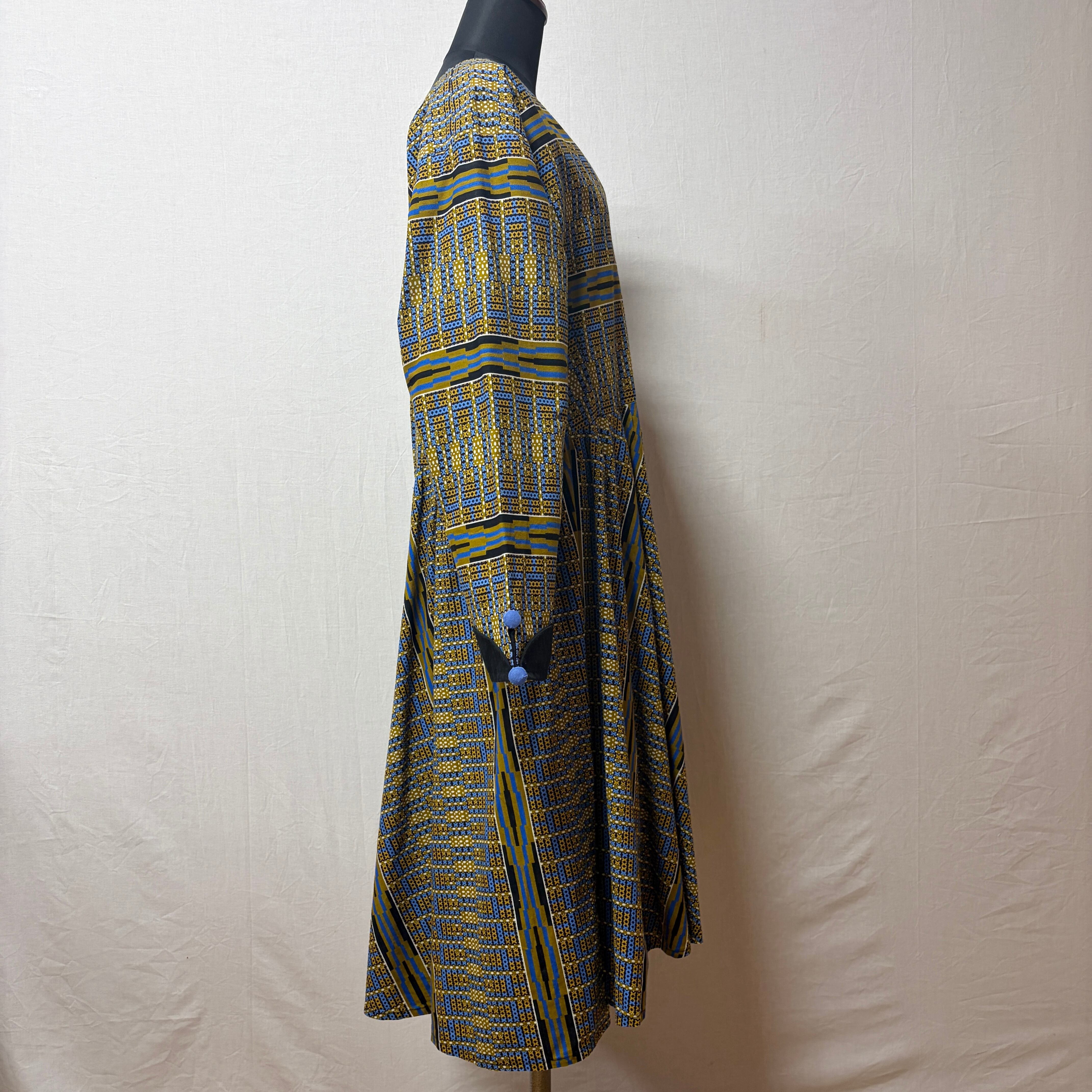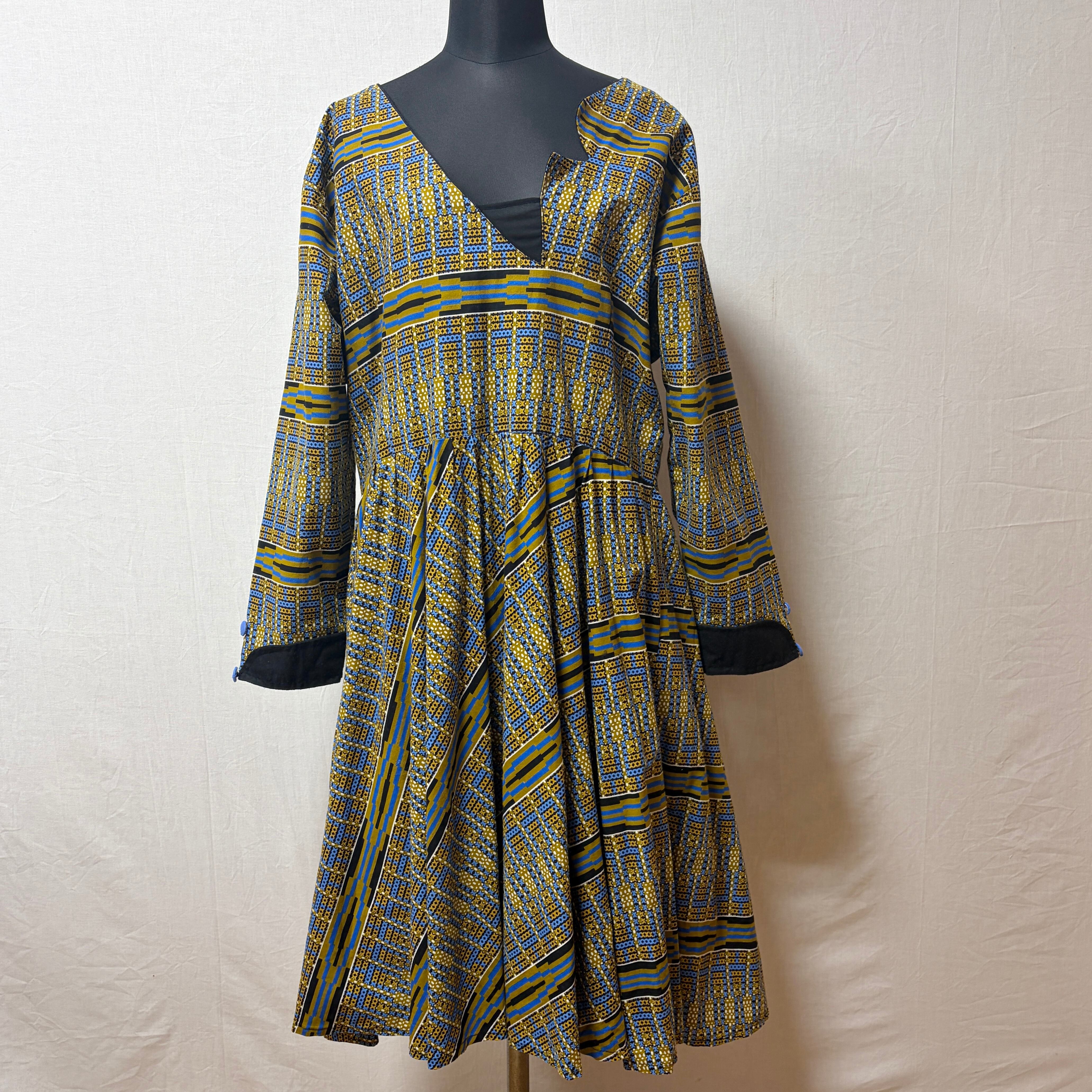 幾何学模様が印象的なアフリカンバティックのワンピース
