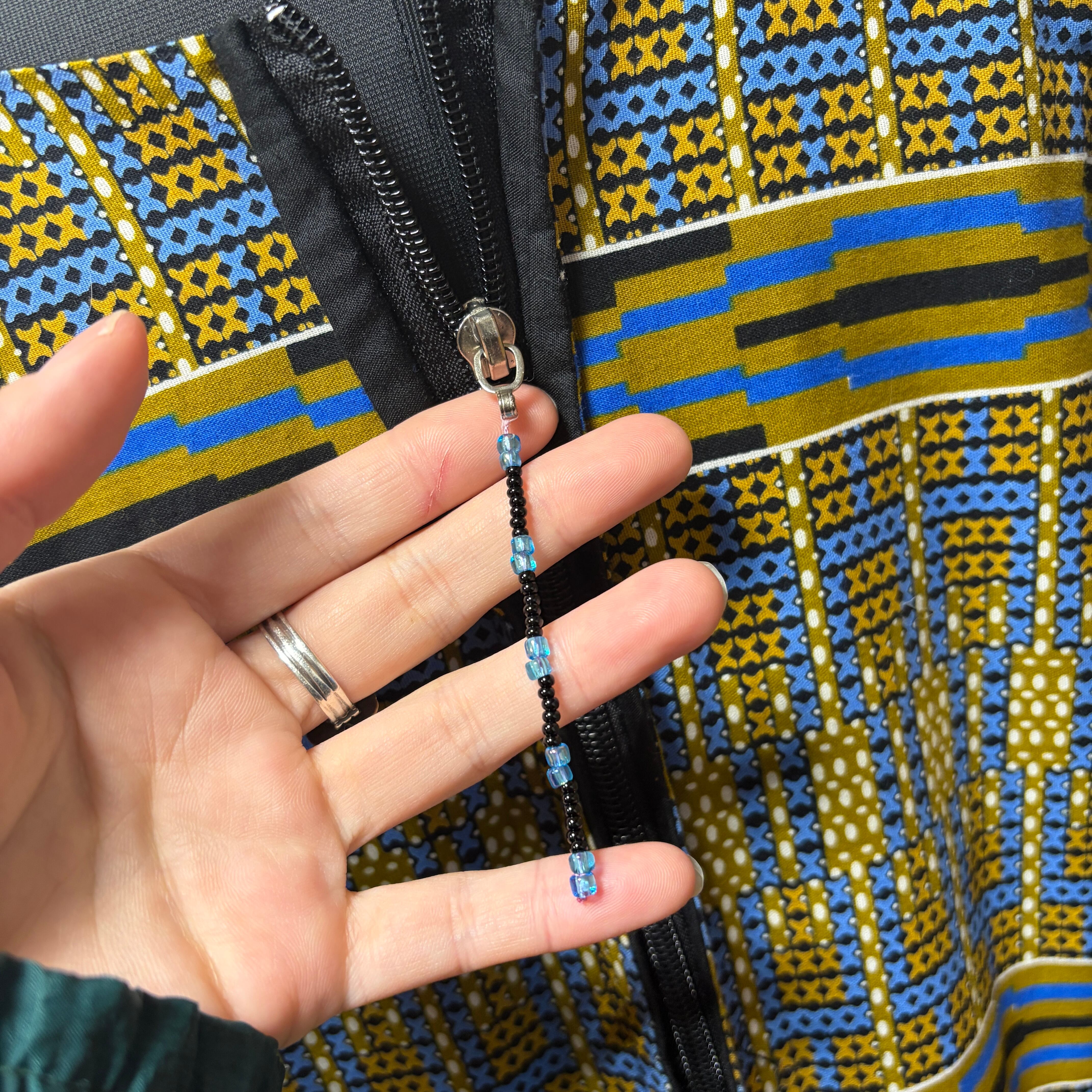 ジップチャームが欠陥したためか同系色のビーズがチャームになっており、ここからも古着ならではの一点物を感じれます