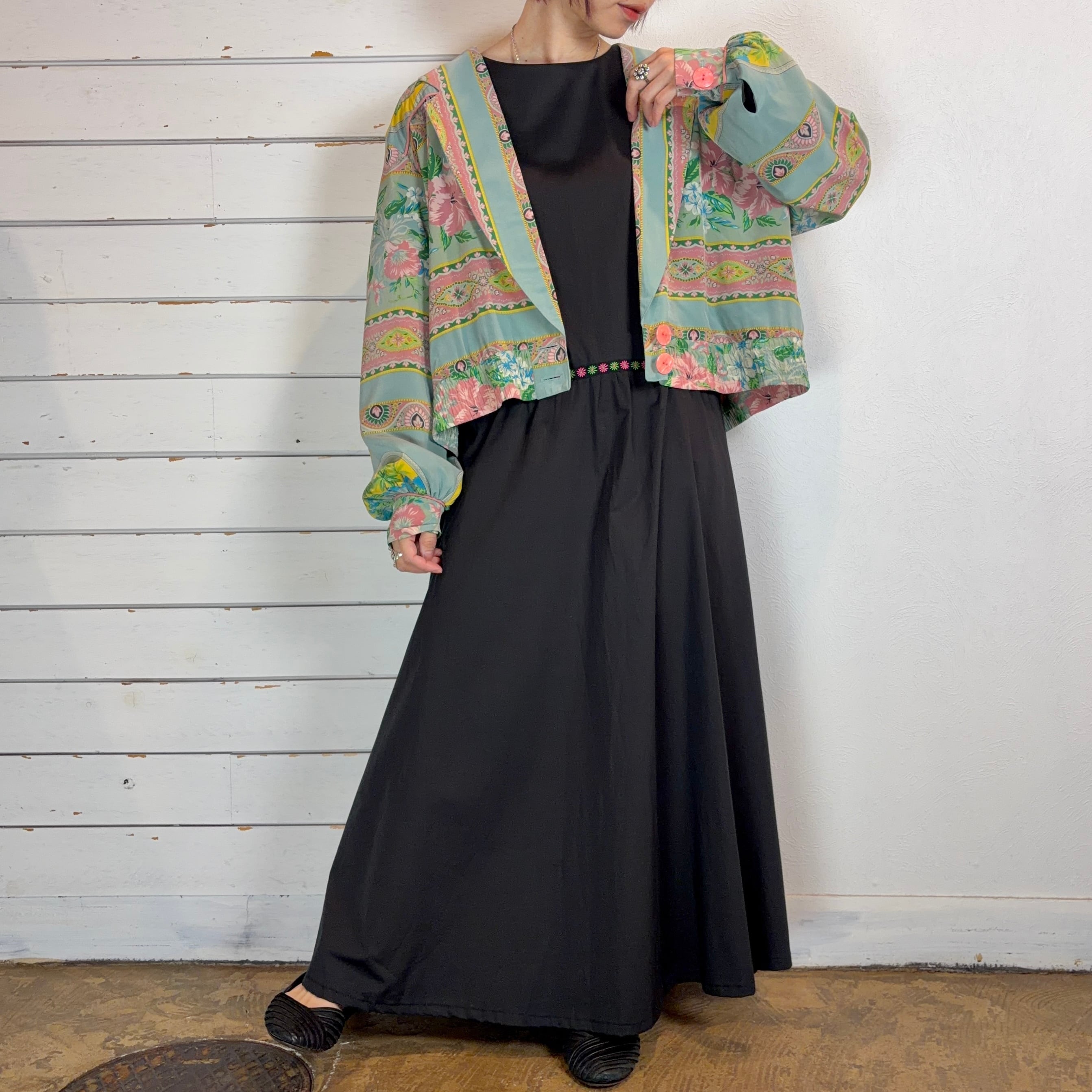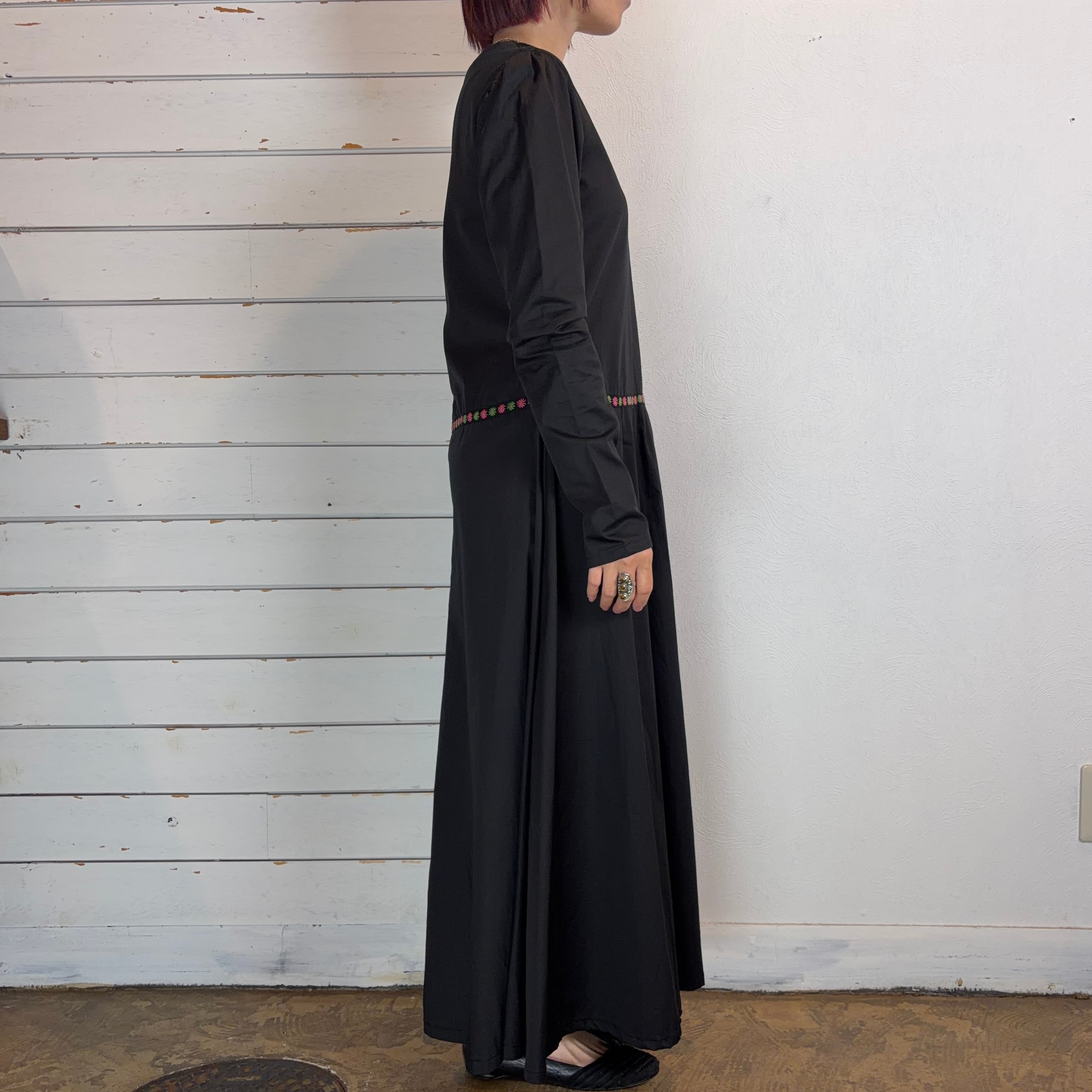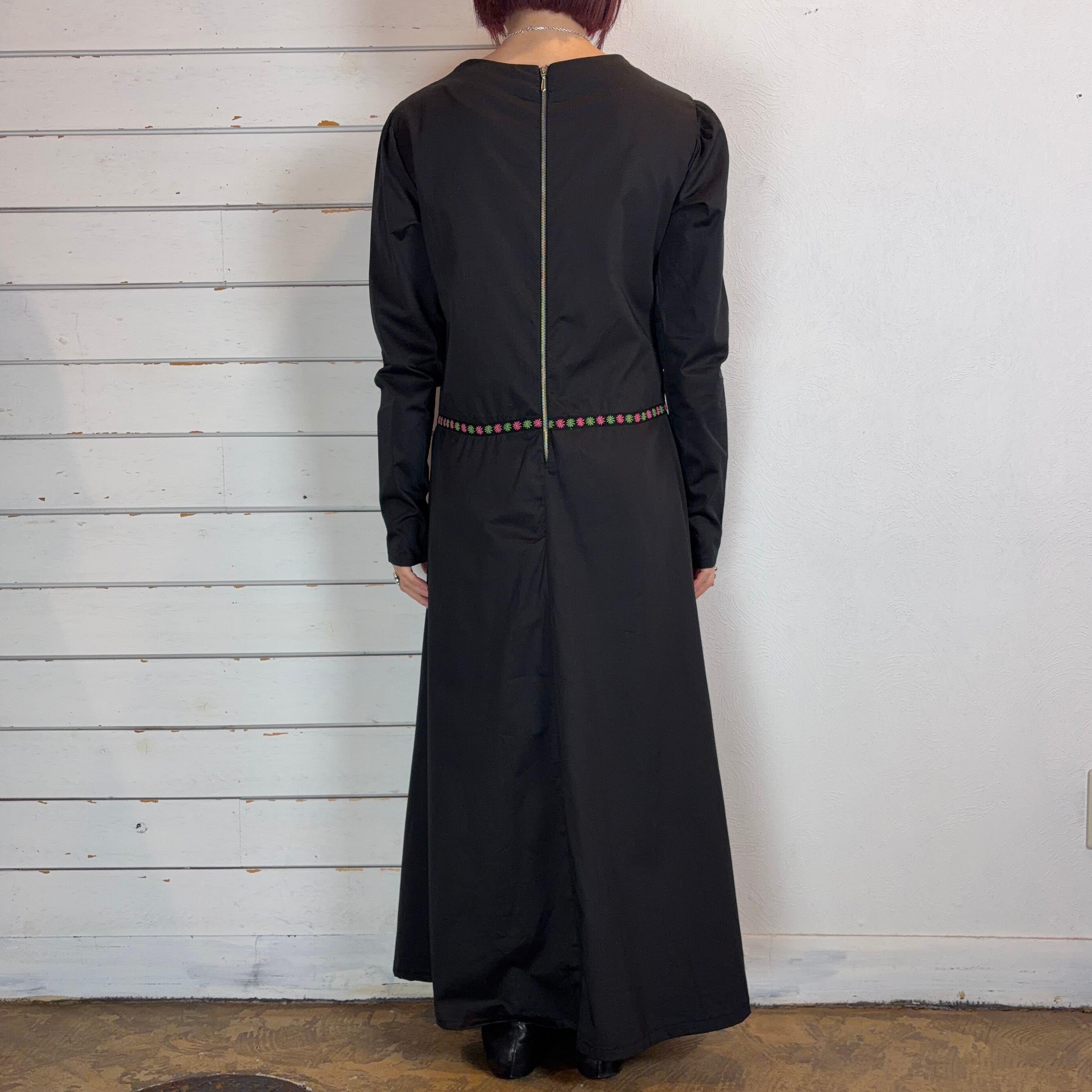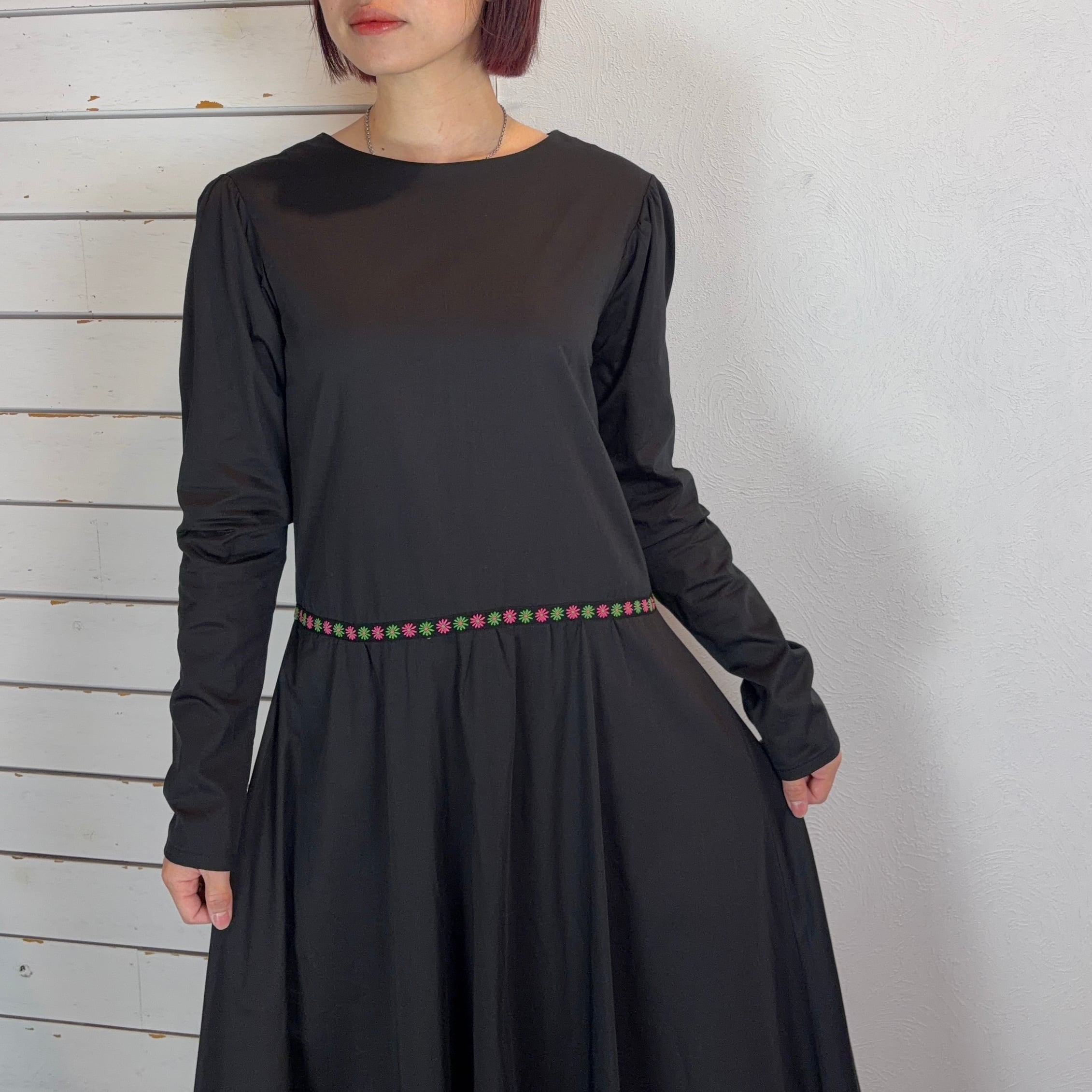 シンプルな無地ブラックにウエストのチロリアンテープが良いアクセントになったワンピース