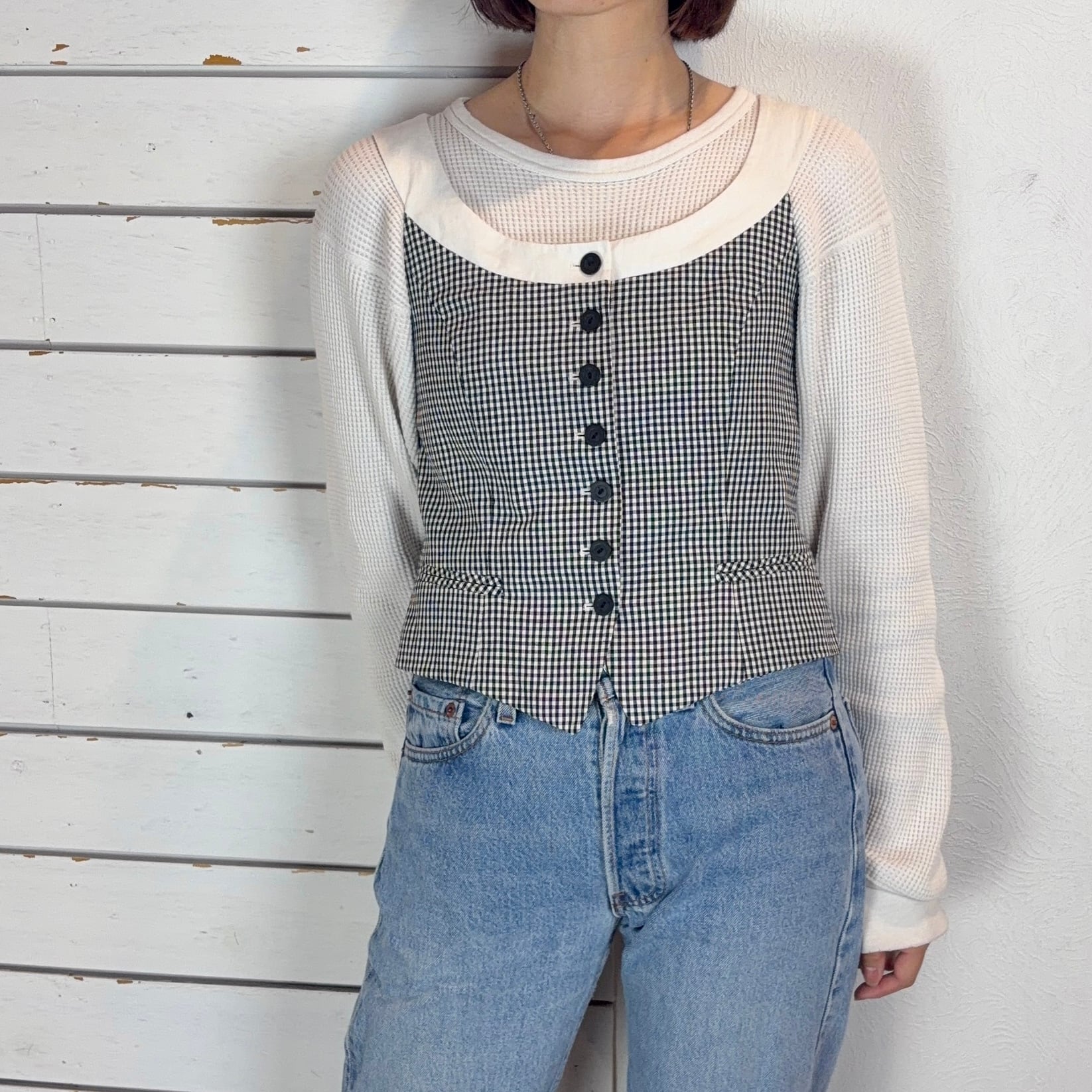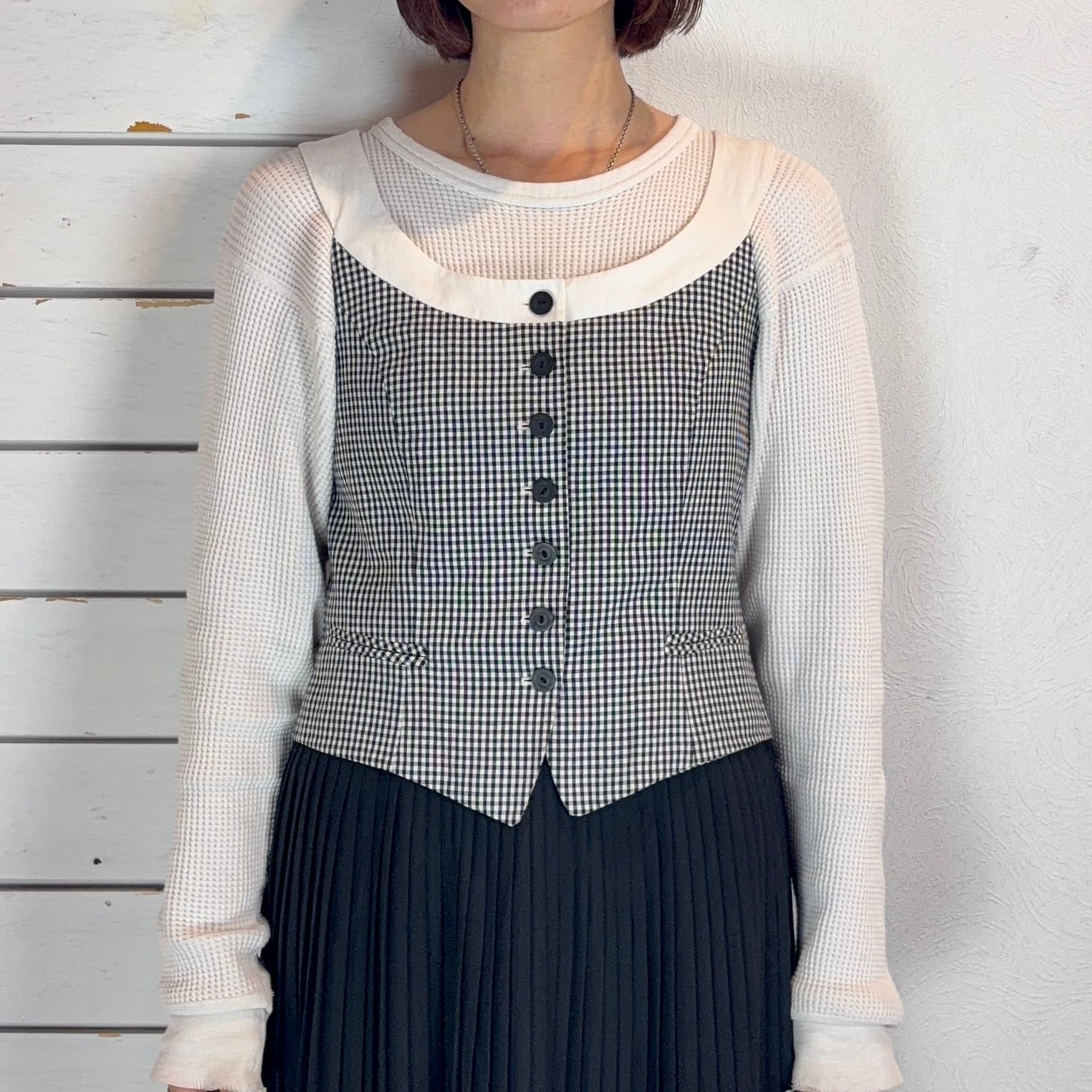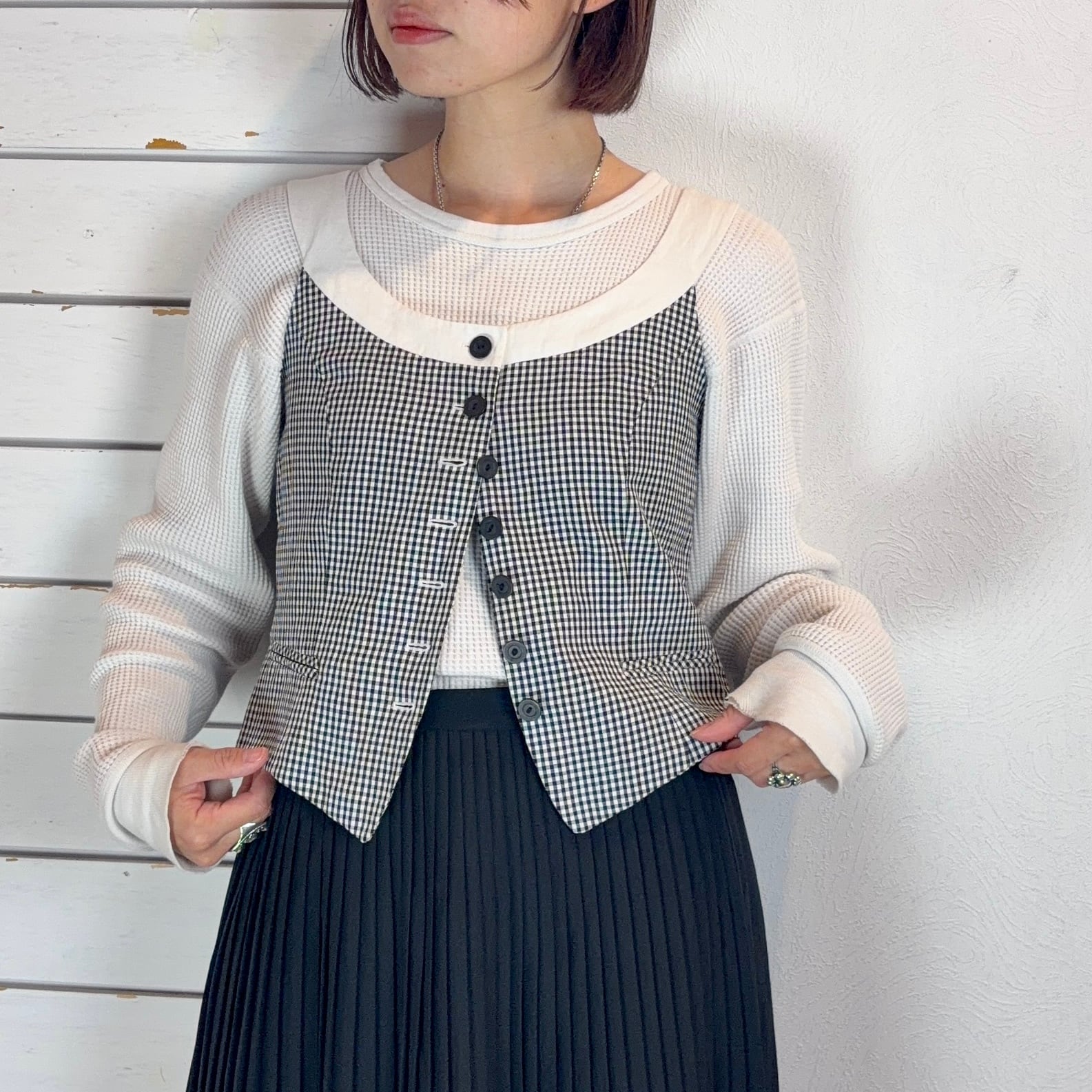 フェイクポケットやバックのスリット入りなところがカチッとしたベストのようでクラシカルなデザインです❤︎