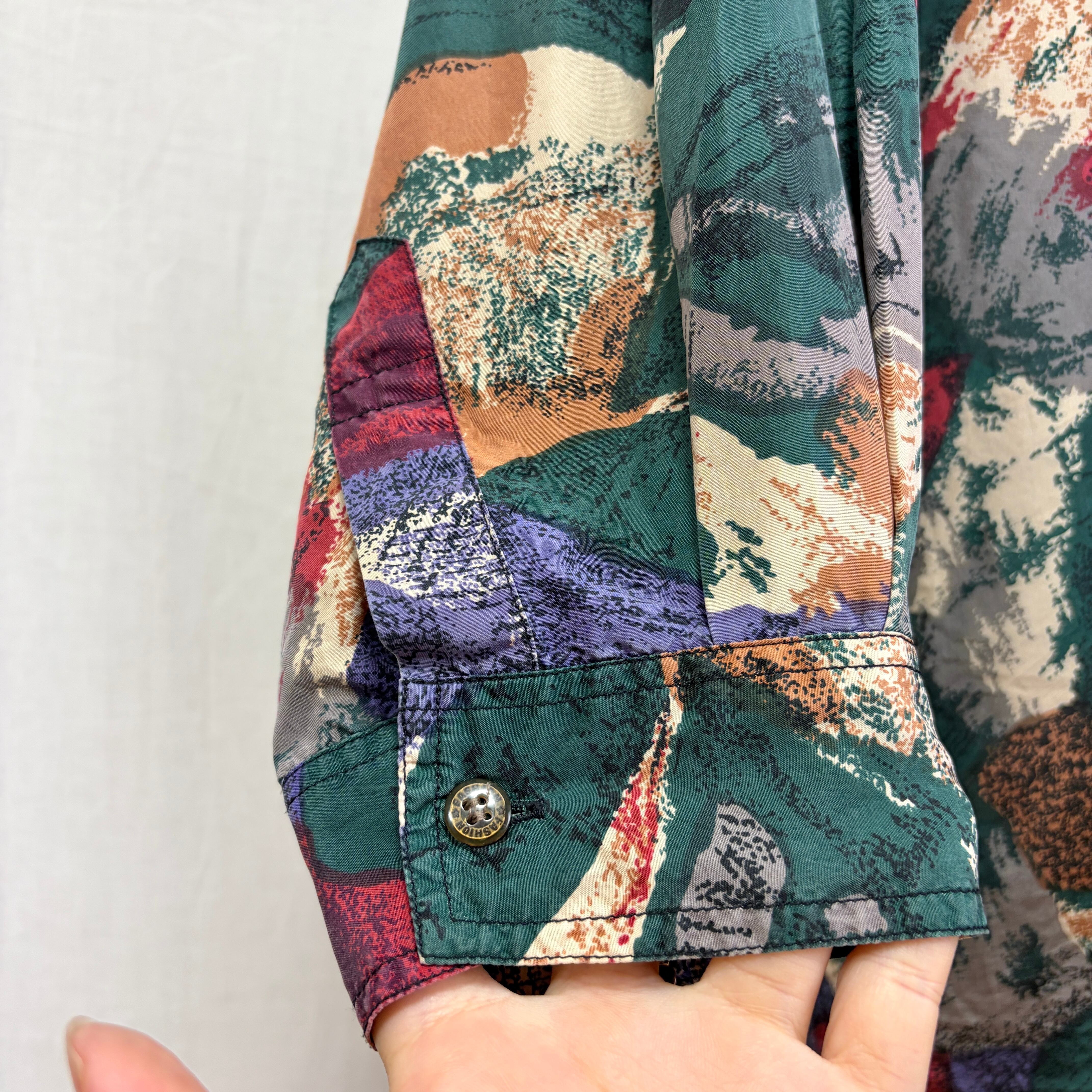 多色ですが少しくすんでトーン落ち着いたアート総柄
