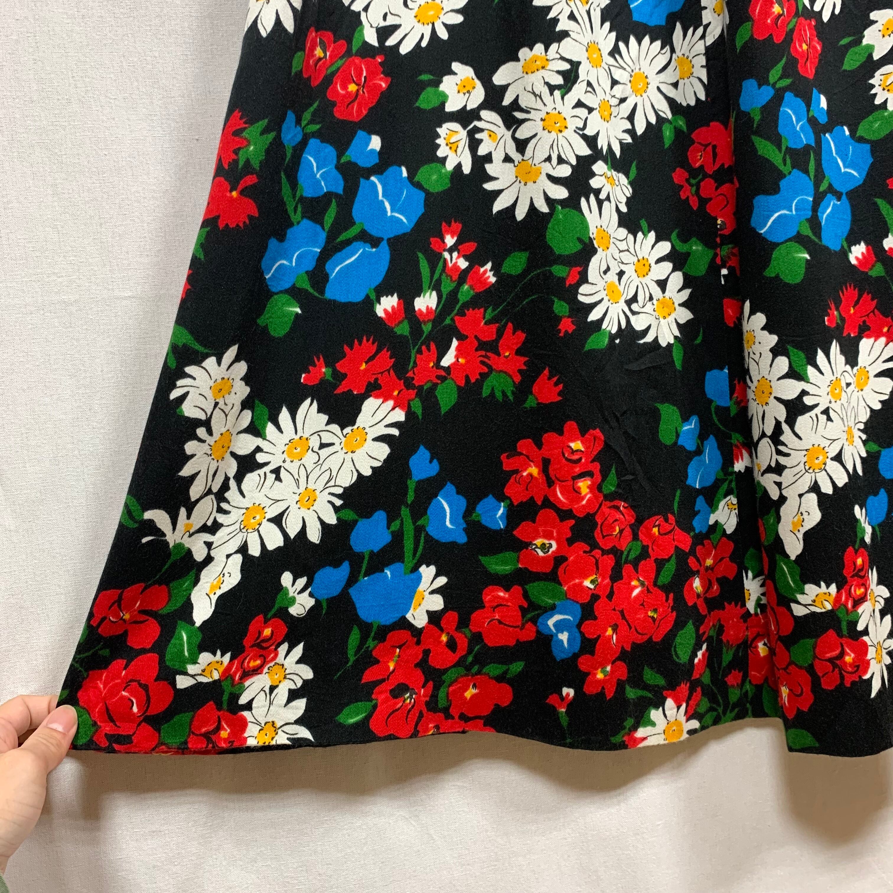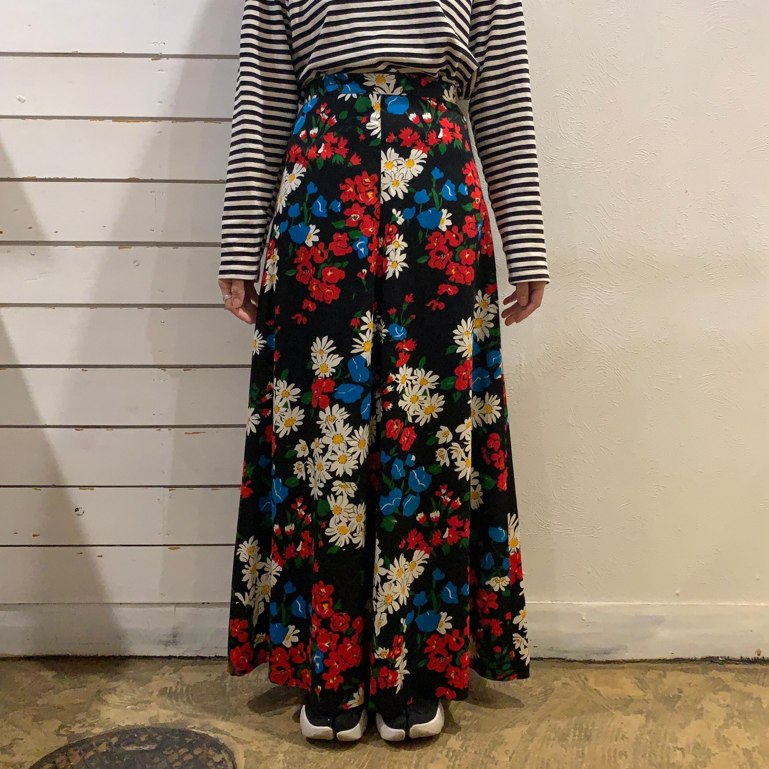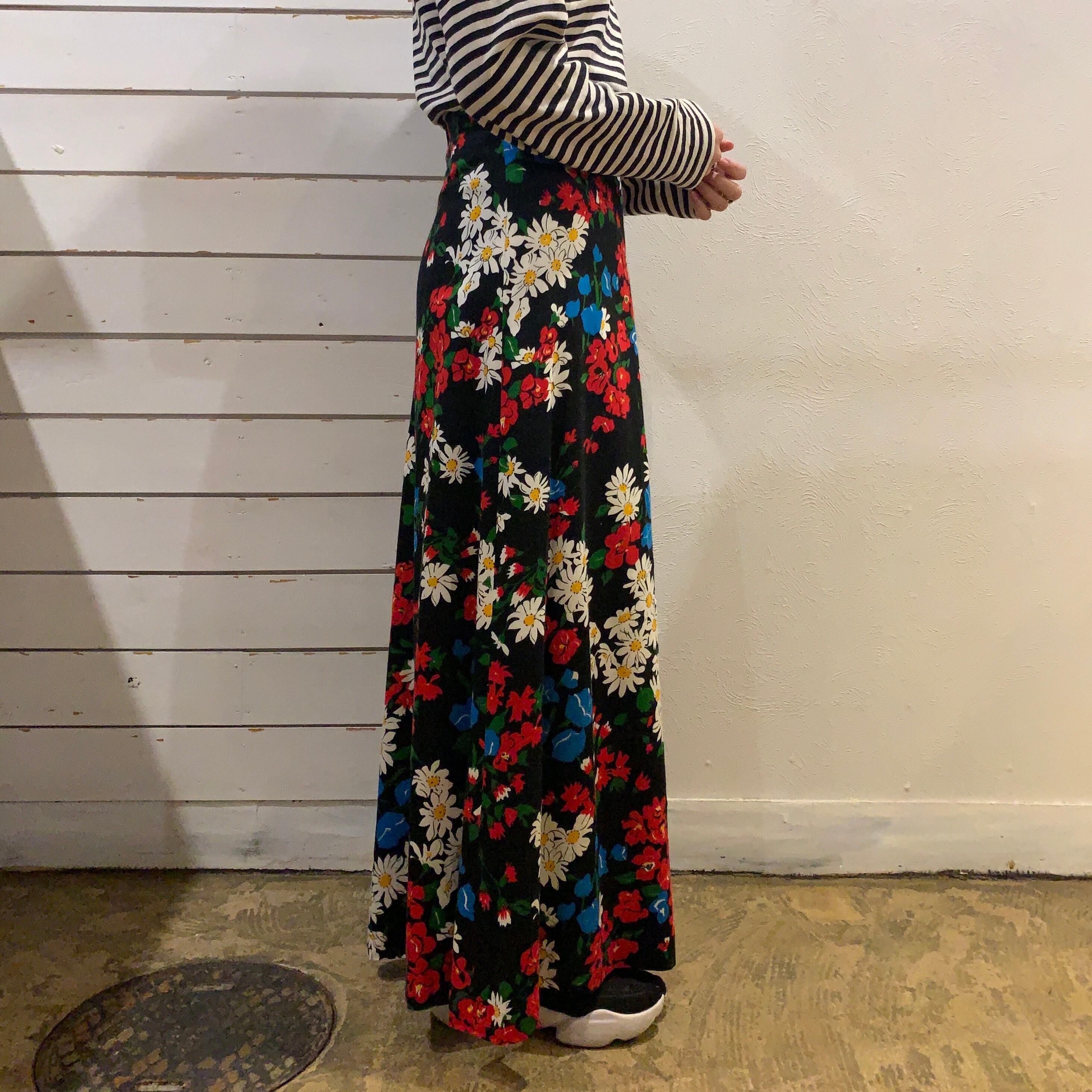 タイトめなAラインのマキシ丈、そしてブラックベースなので甘すぎずしっかりしまって見えます
