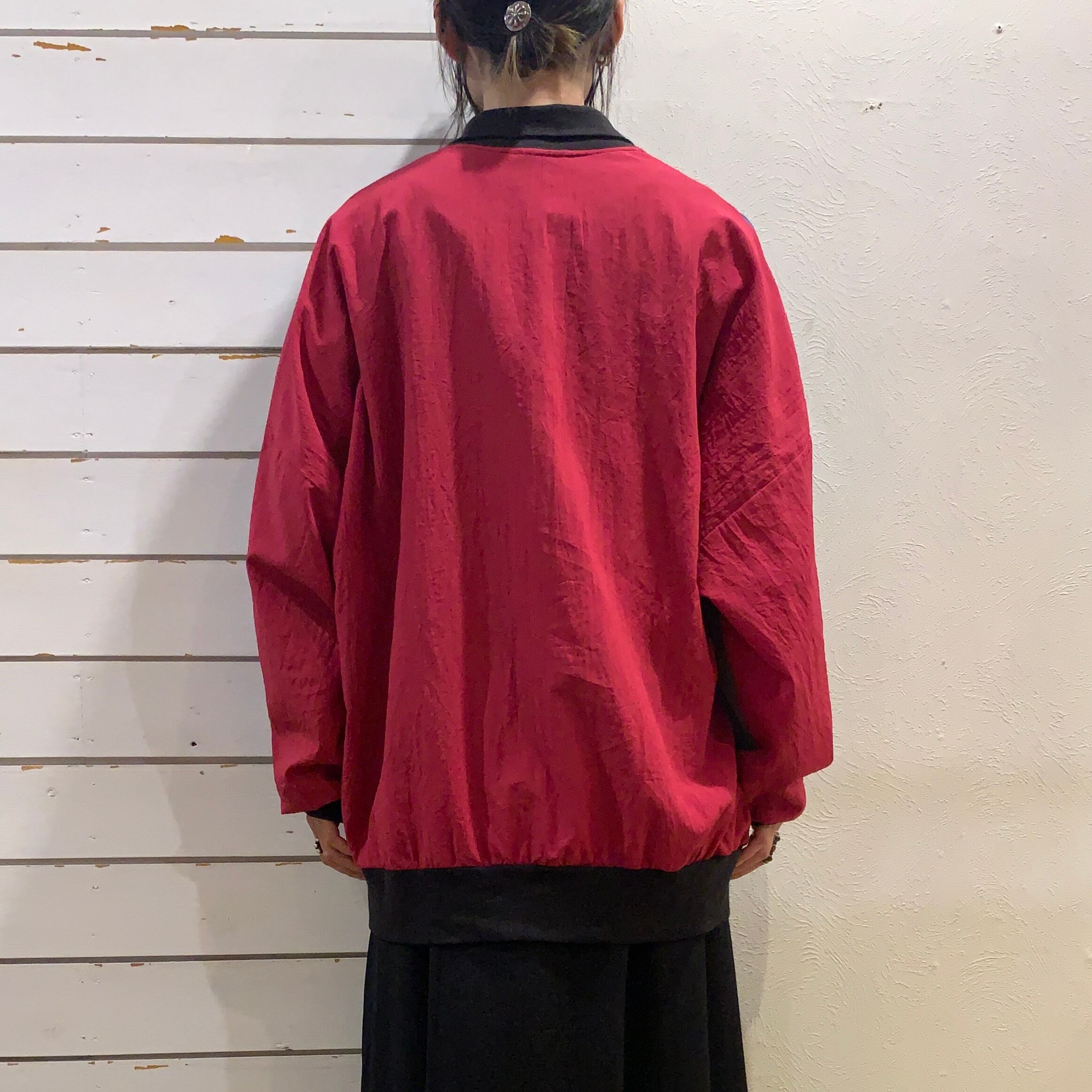 1番下ボタンの欠陥、右胸黒ライン部分一部ほつれ、フロント左上にうっすら汚れ、バック左袖に一直線上に糸ほつれ(糸抜け)の跡がございます。