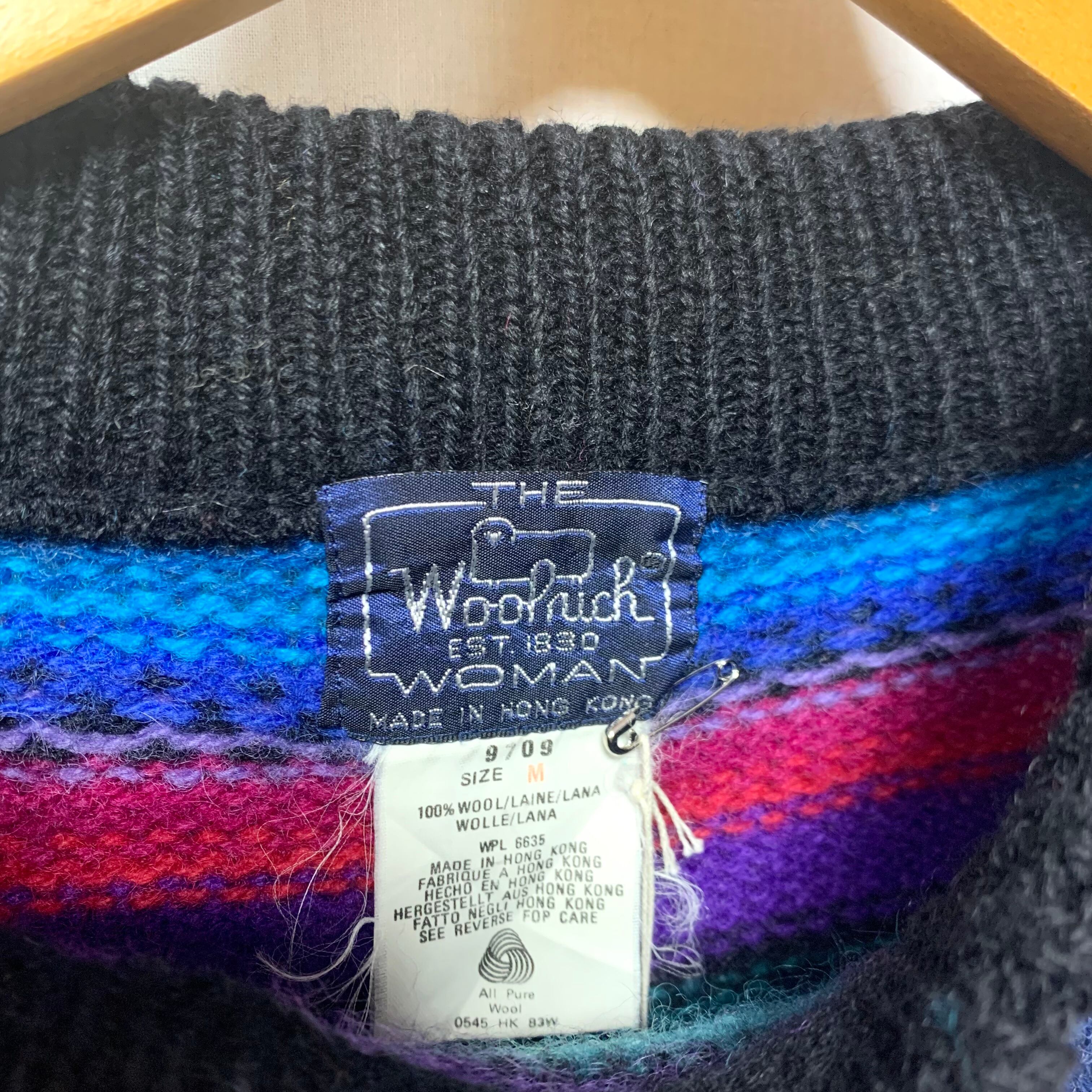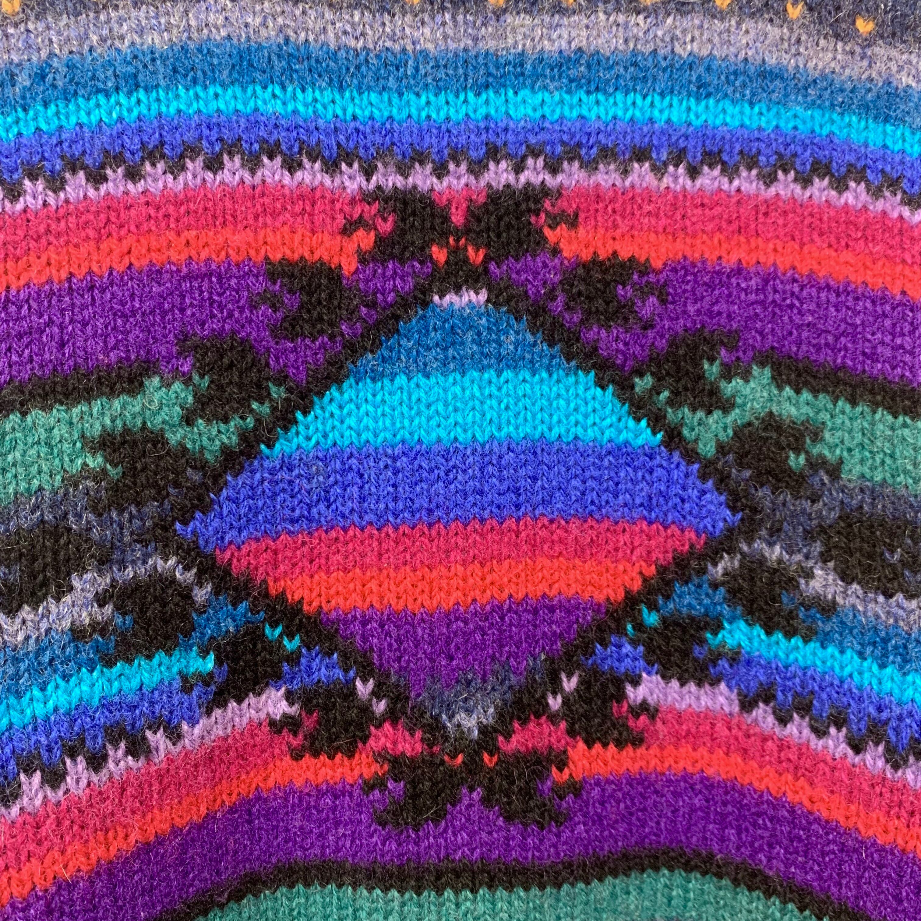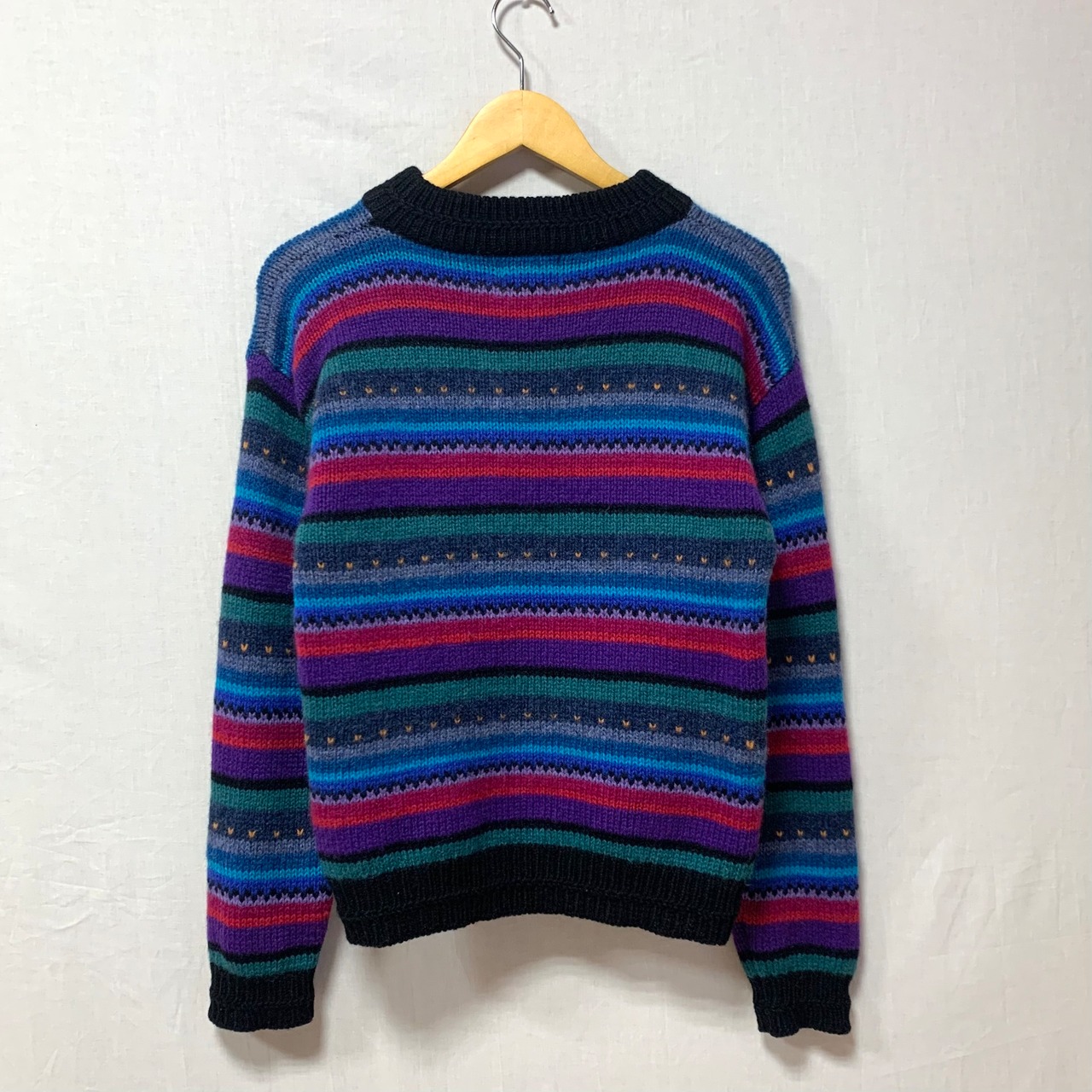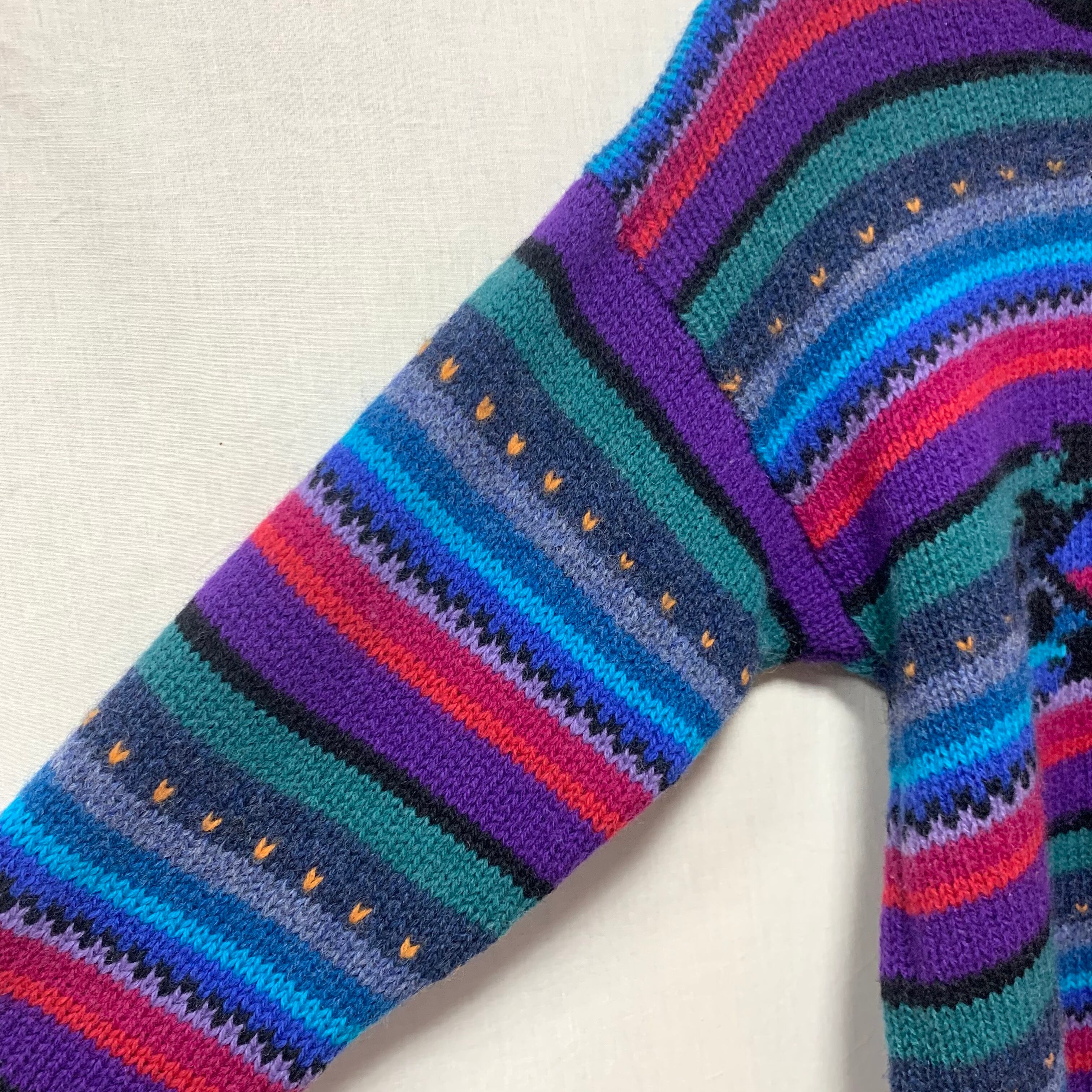 カラフルで目を惹くマルチボーダーにネイティブ柄が中央におかれたデザインニット❤︎