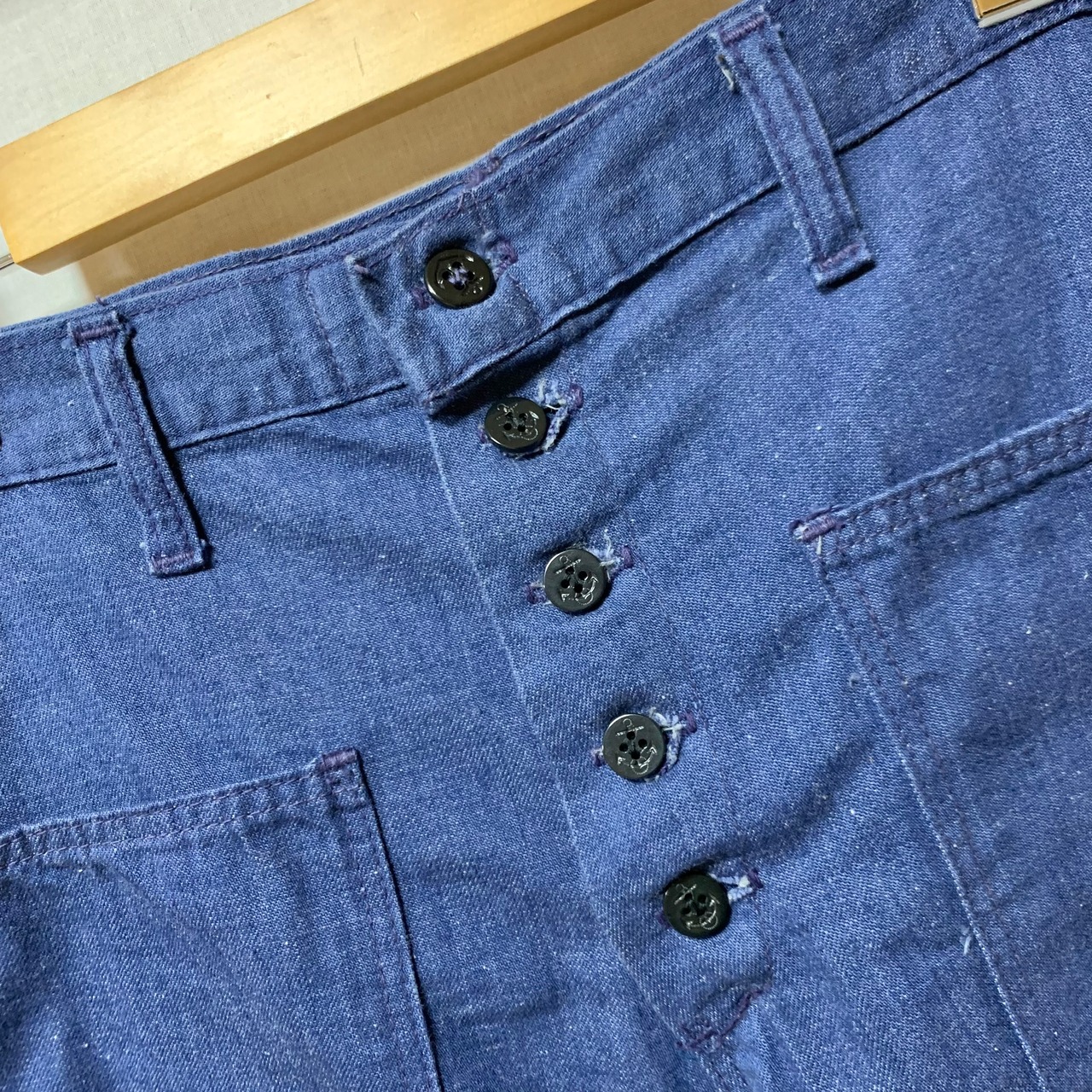 丈詰めしたような痕跡、ボタンが種類違いでついております。