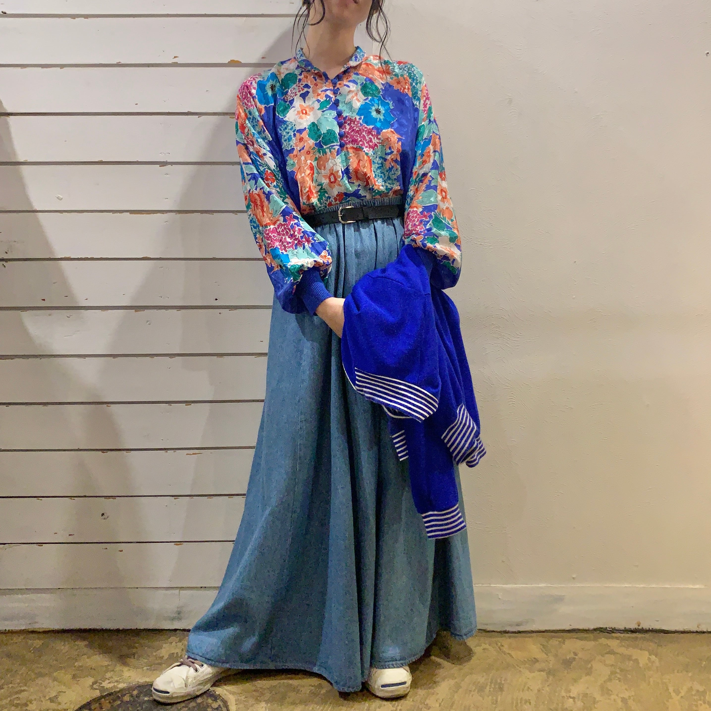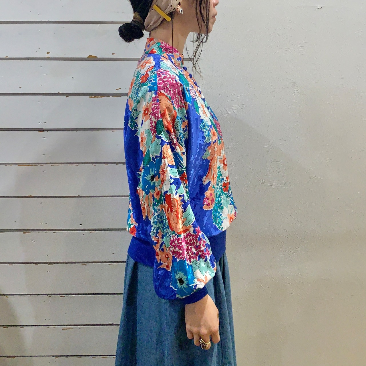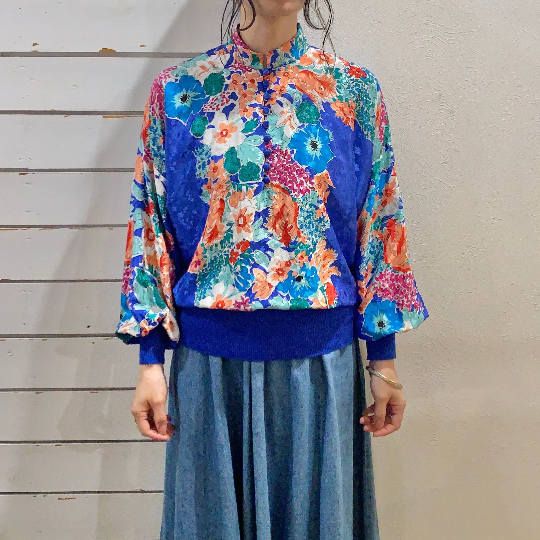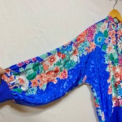 スカーフを繋ぎ合わせたような花柄デザイントップス