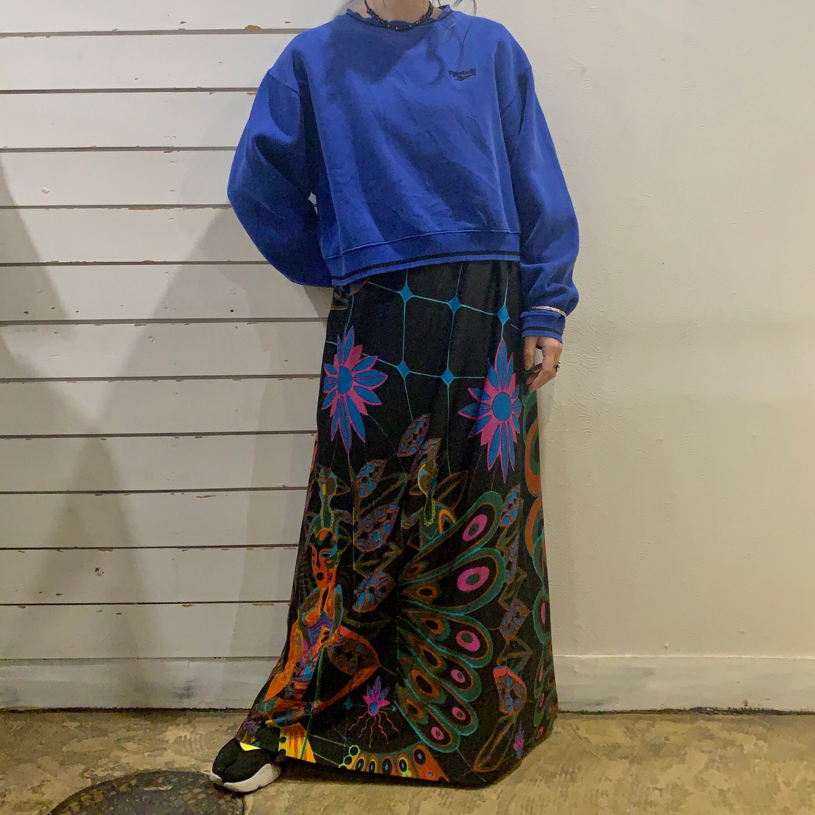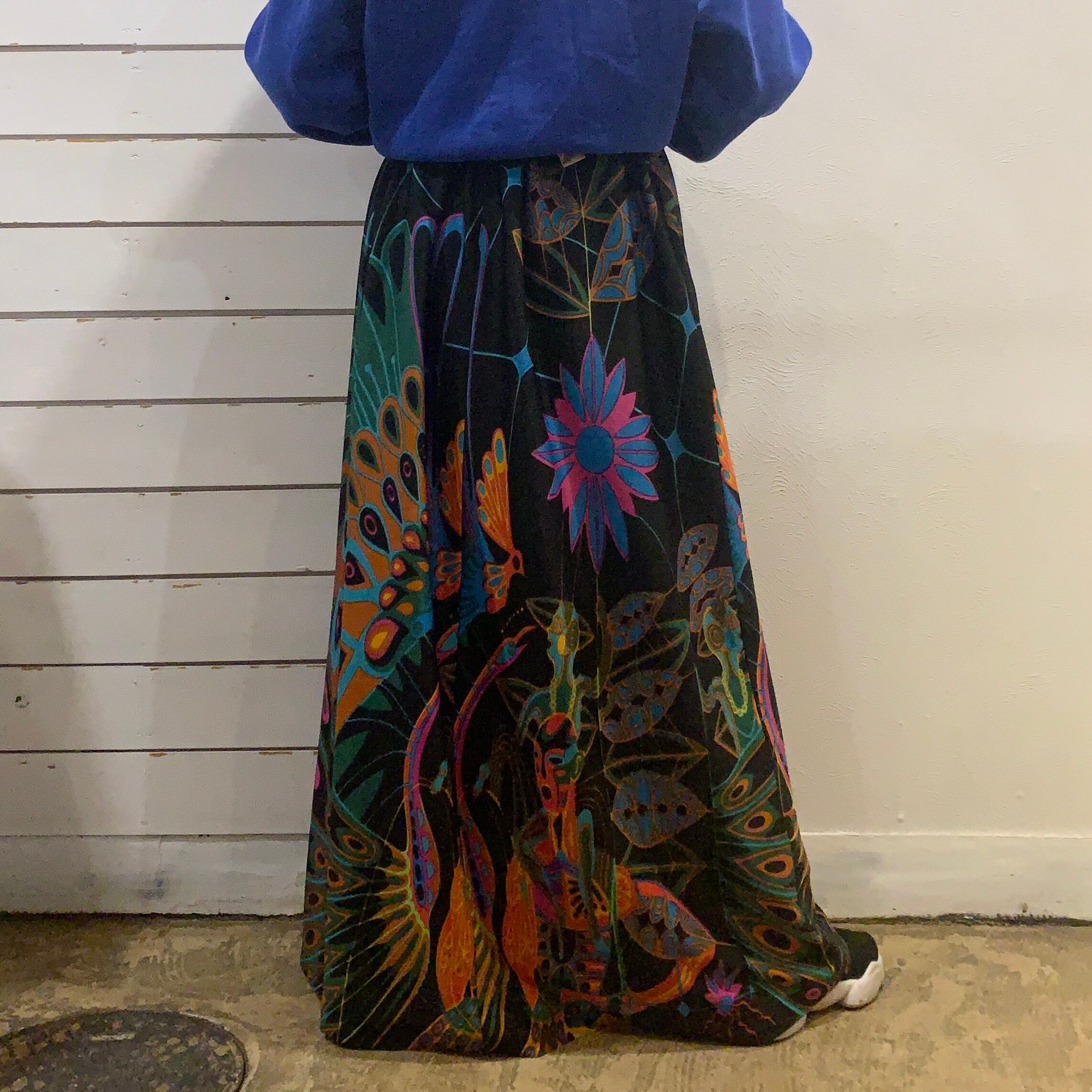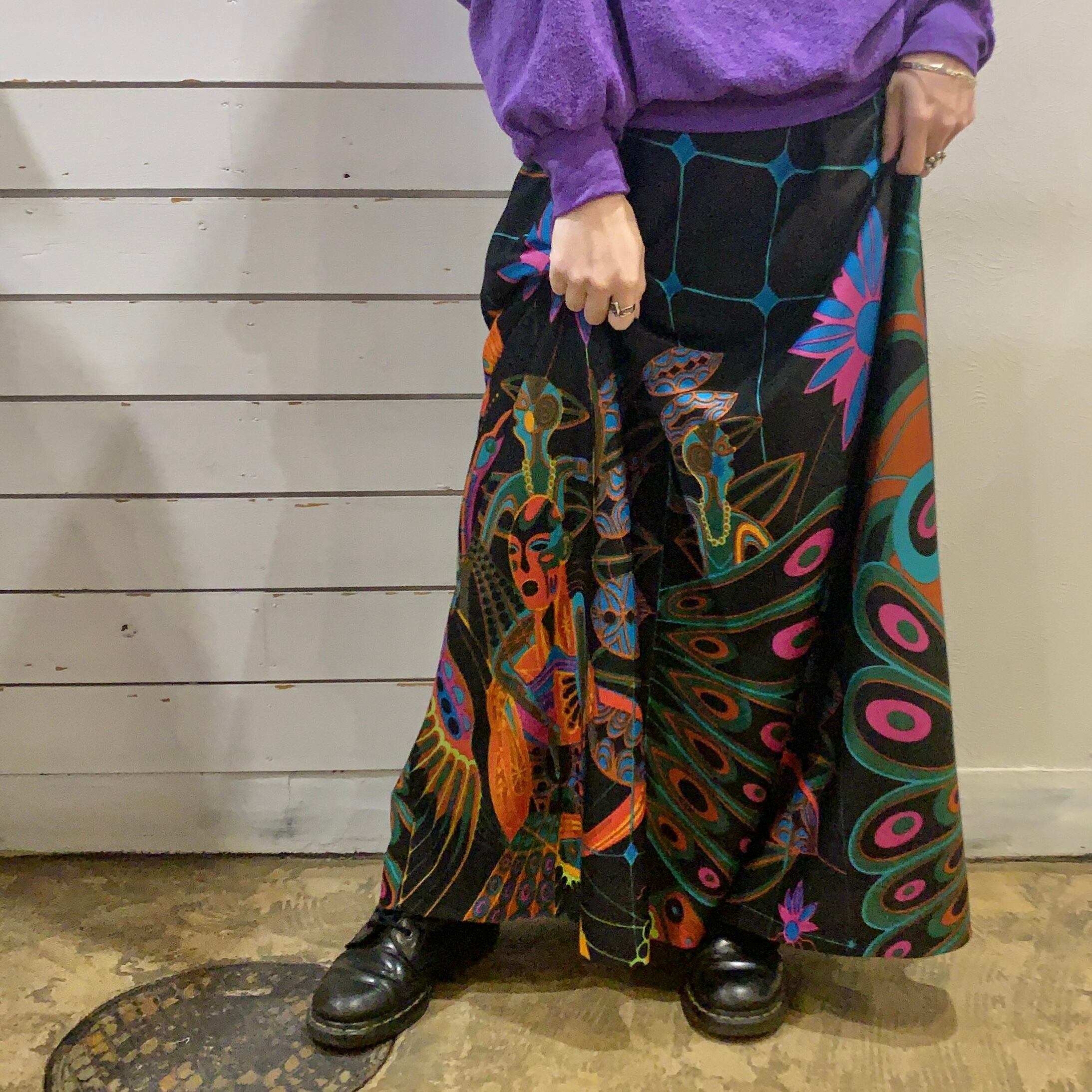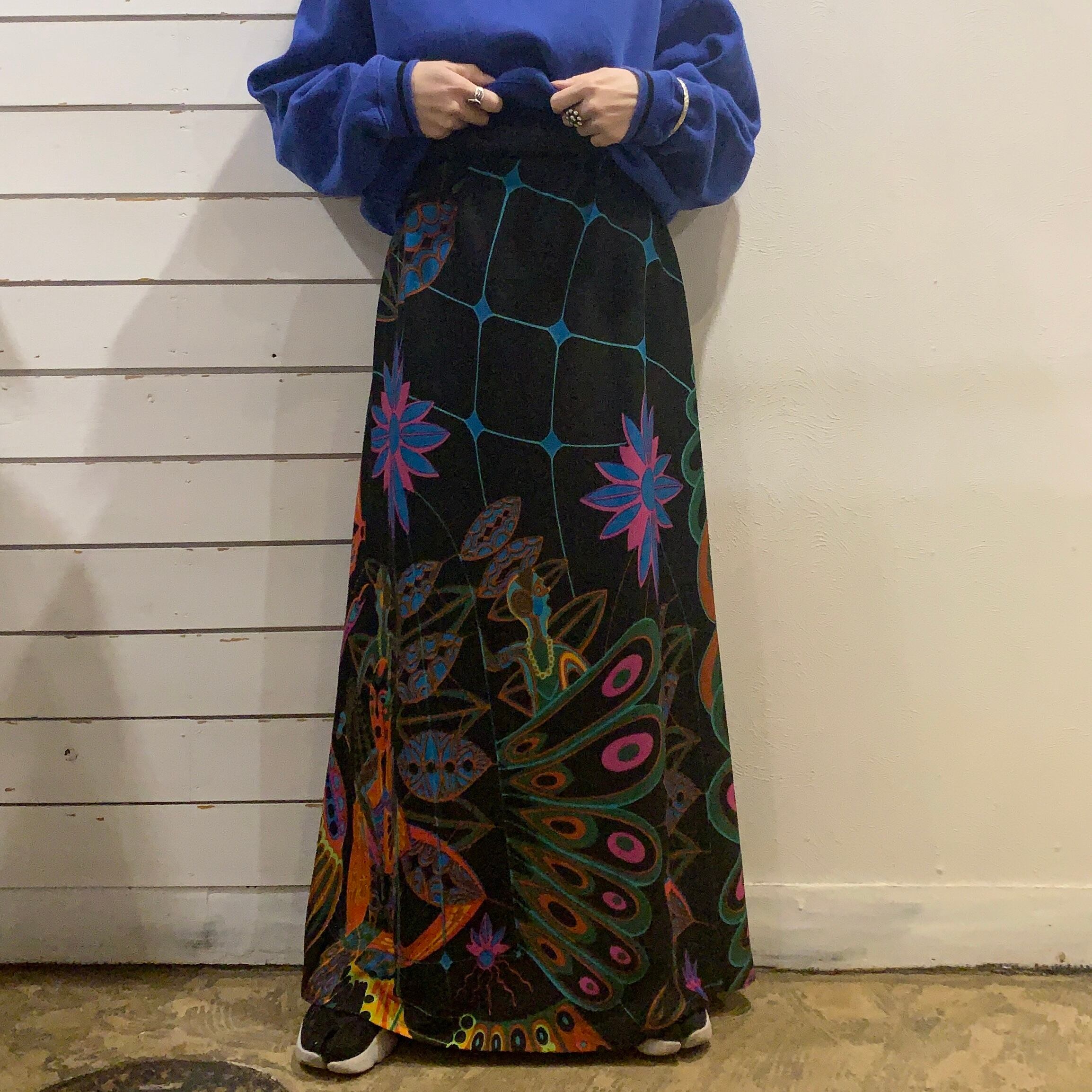 サイケデリックな配色と柄が目を惹くマキシ丈スカート