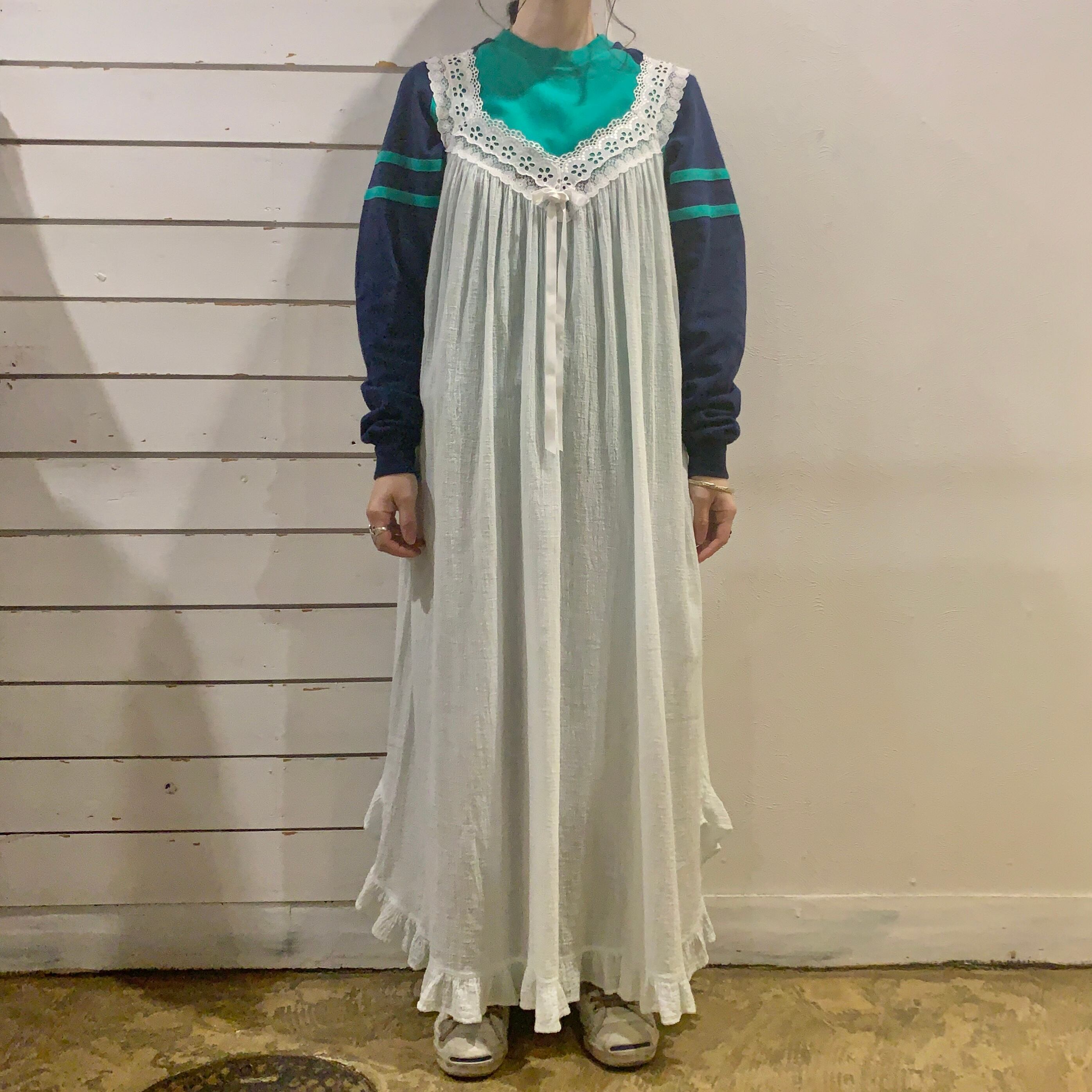 白に近い、ほんのり淡いアイスブルーのランジェリーワンピース