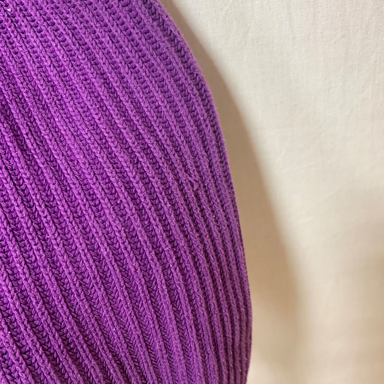 パキッとしたパープル、無地なのでなにかと使えるカラーアイテムのひとつ