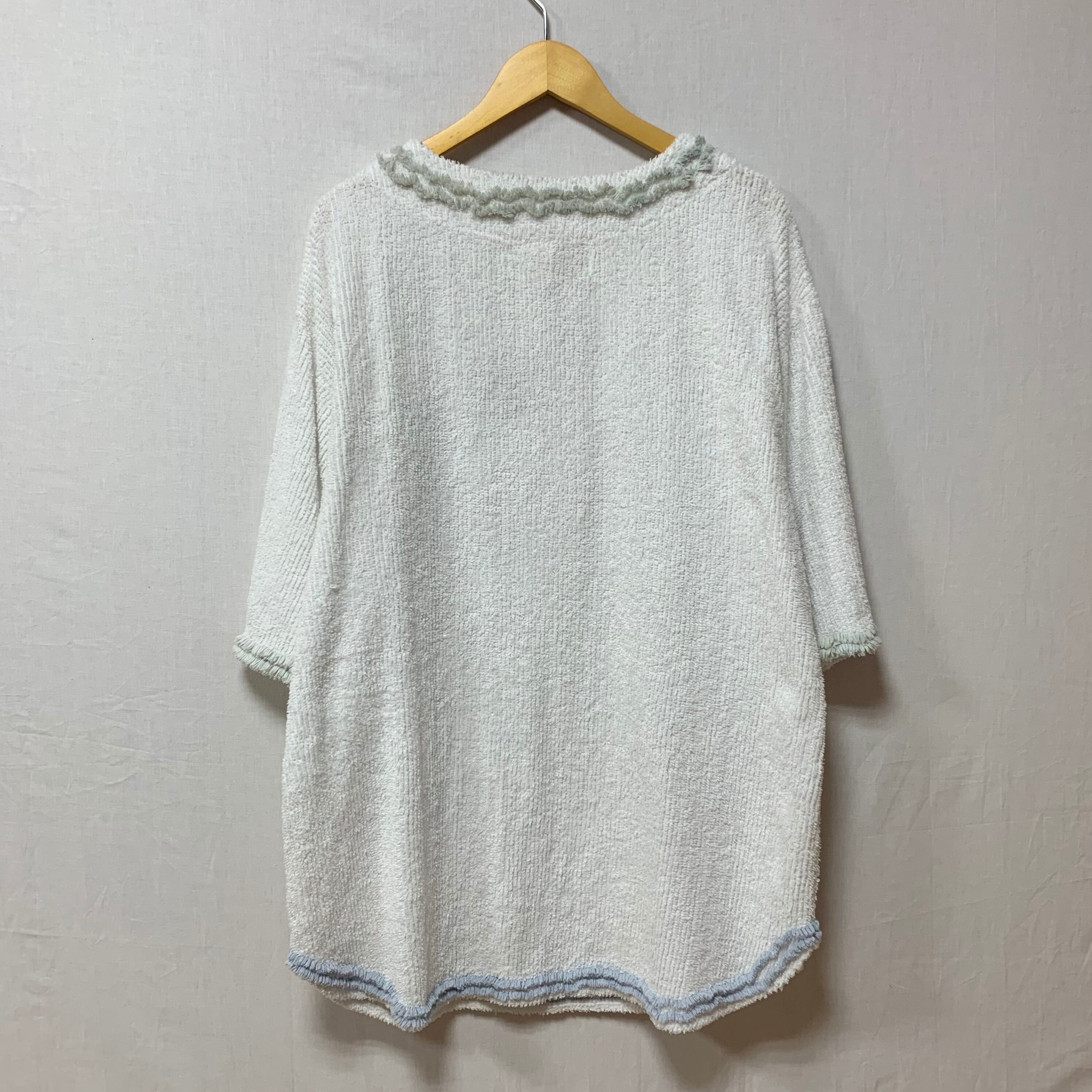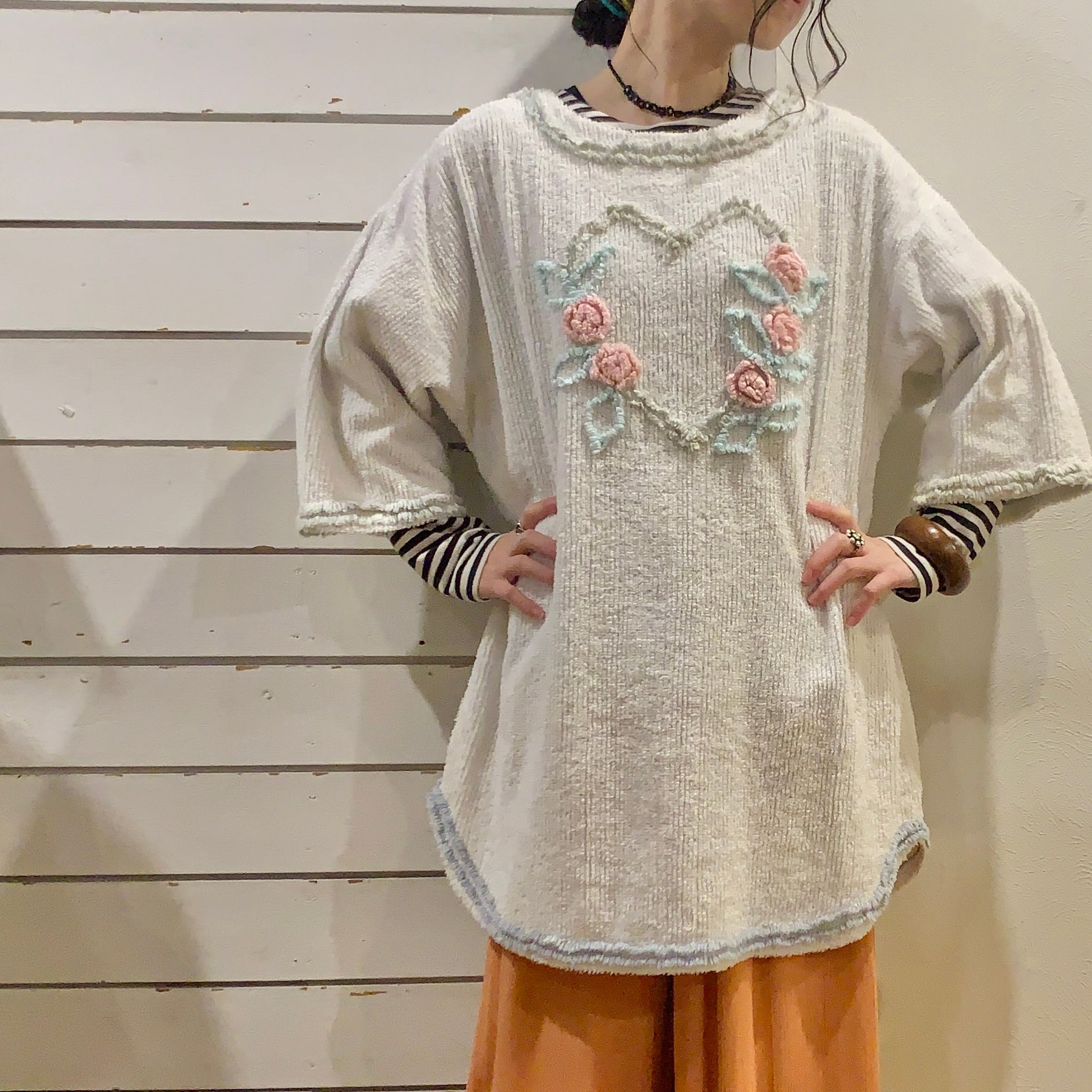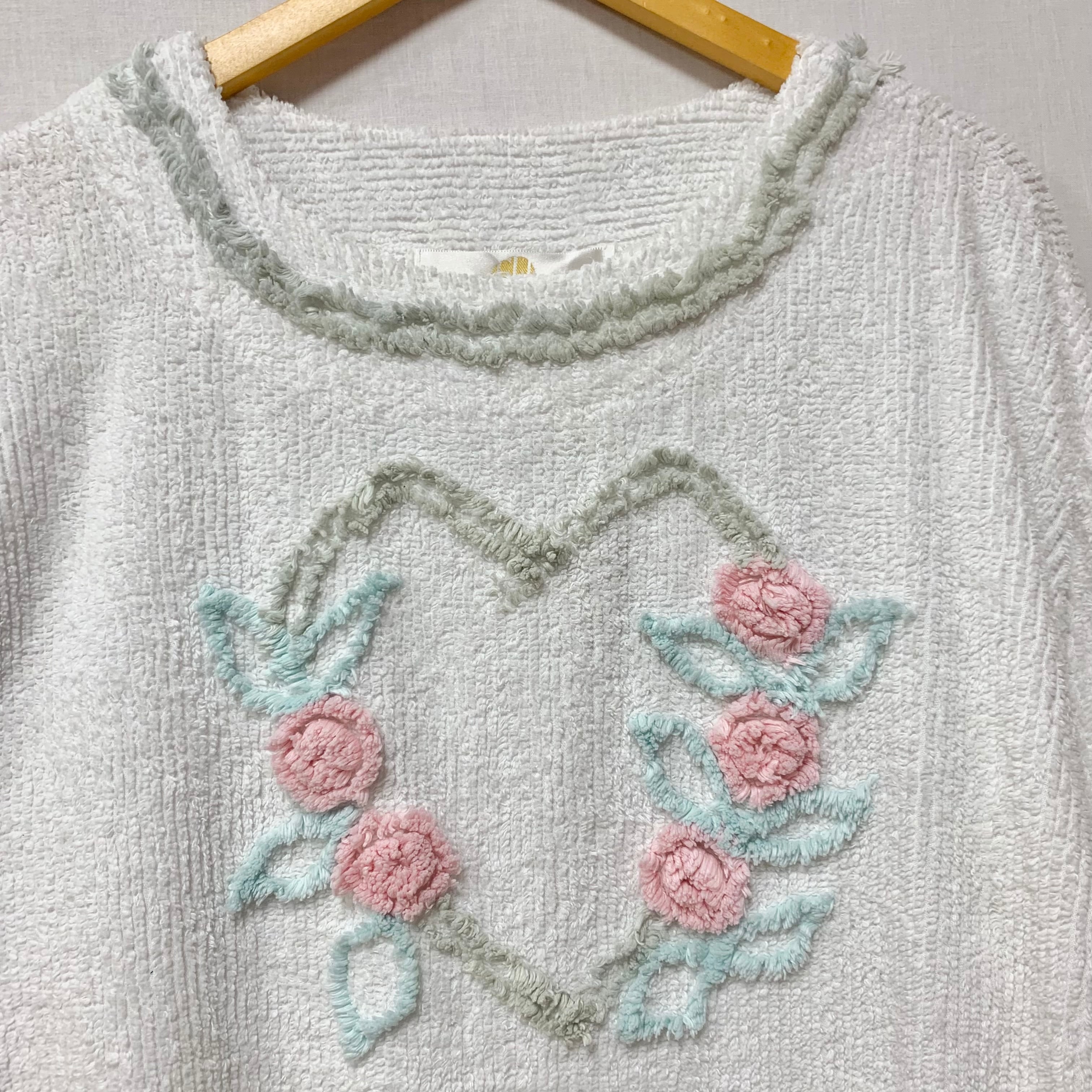 ふんわりパステルカラーのお花デザインが春らしいシェニール生地のトップス