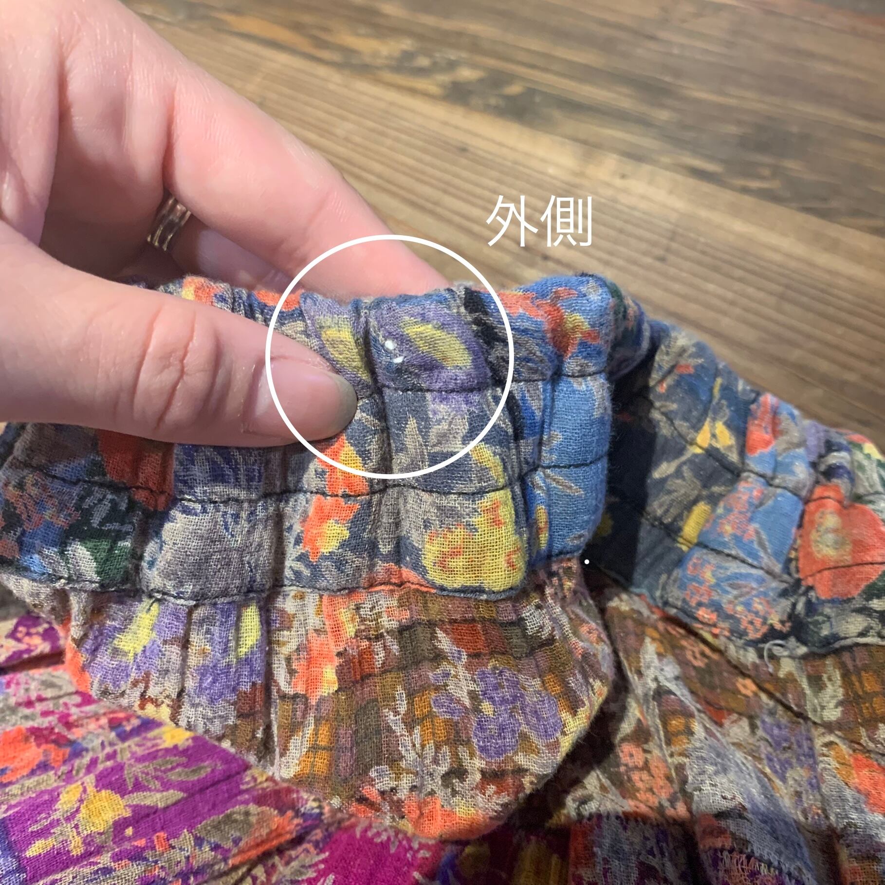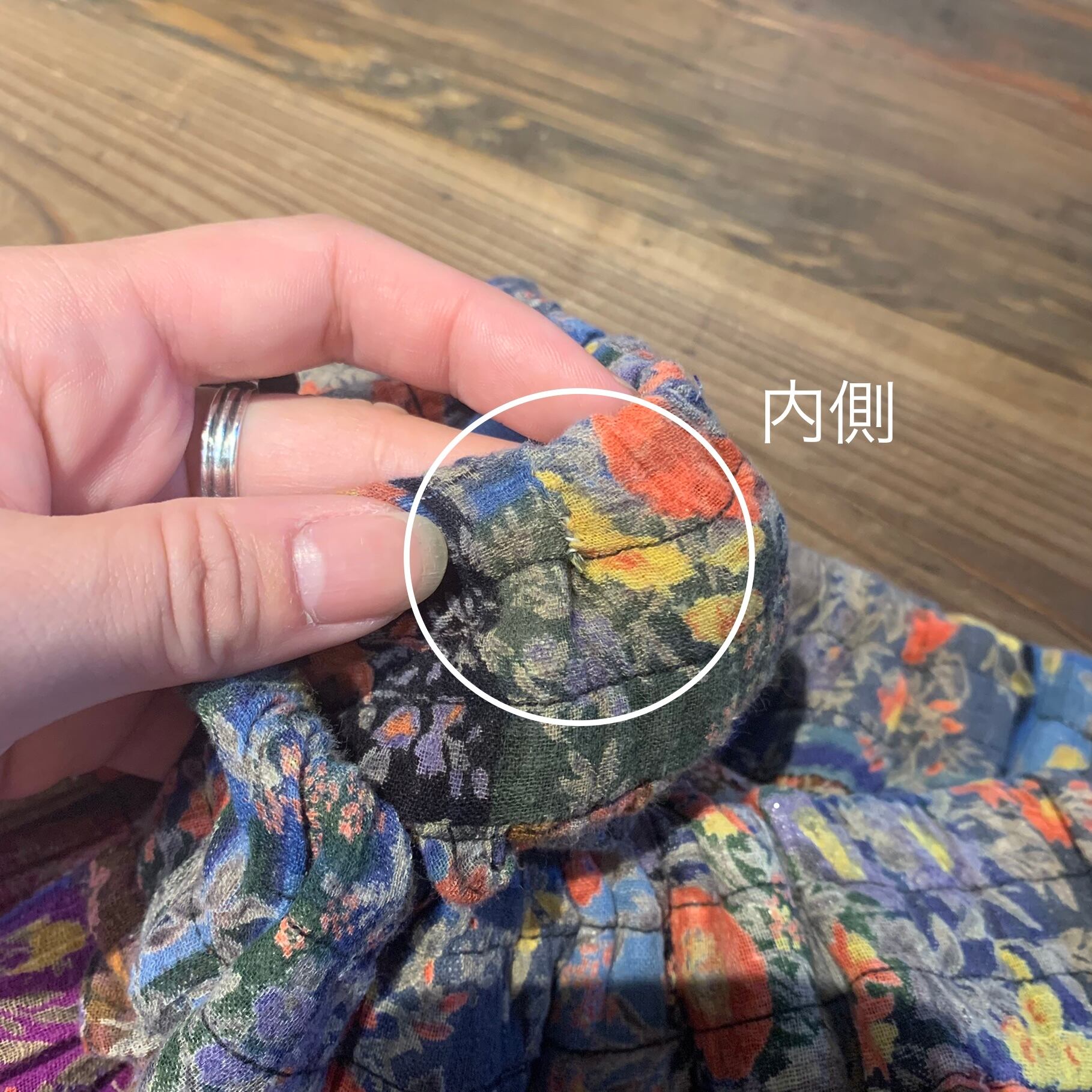 内側、生地の端のロックミシンでロックがかかっている所が外れている箇所が所々ございます。(写真11・12枚目参考)