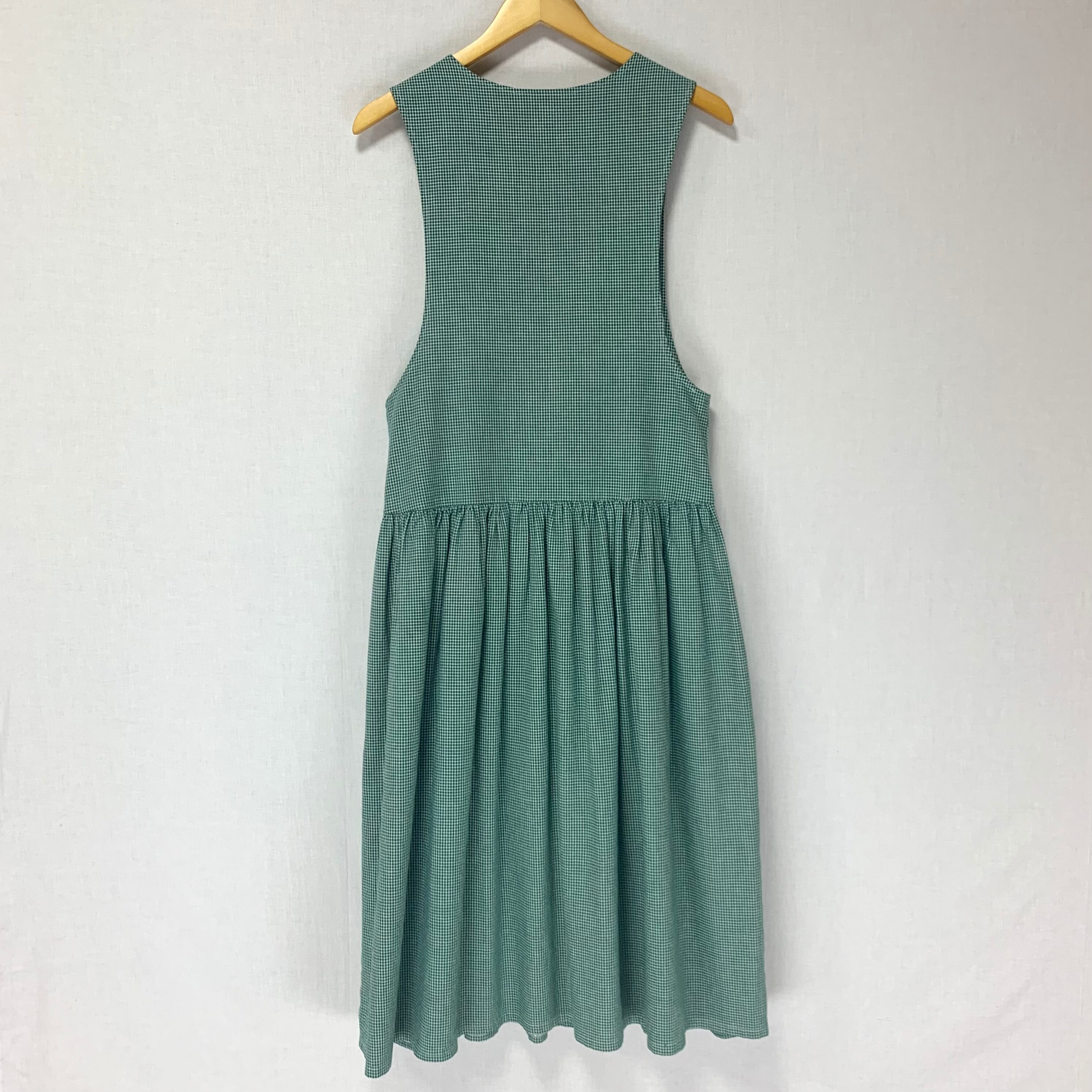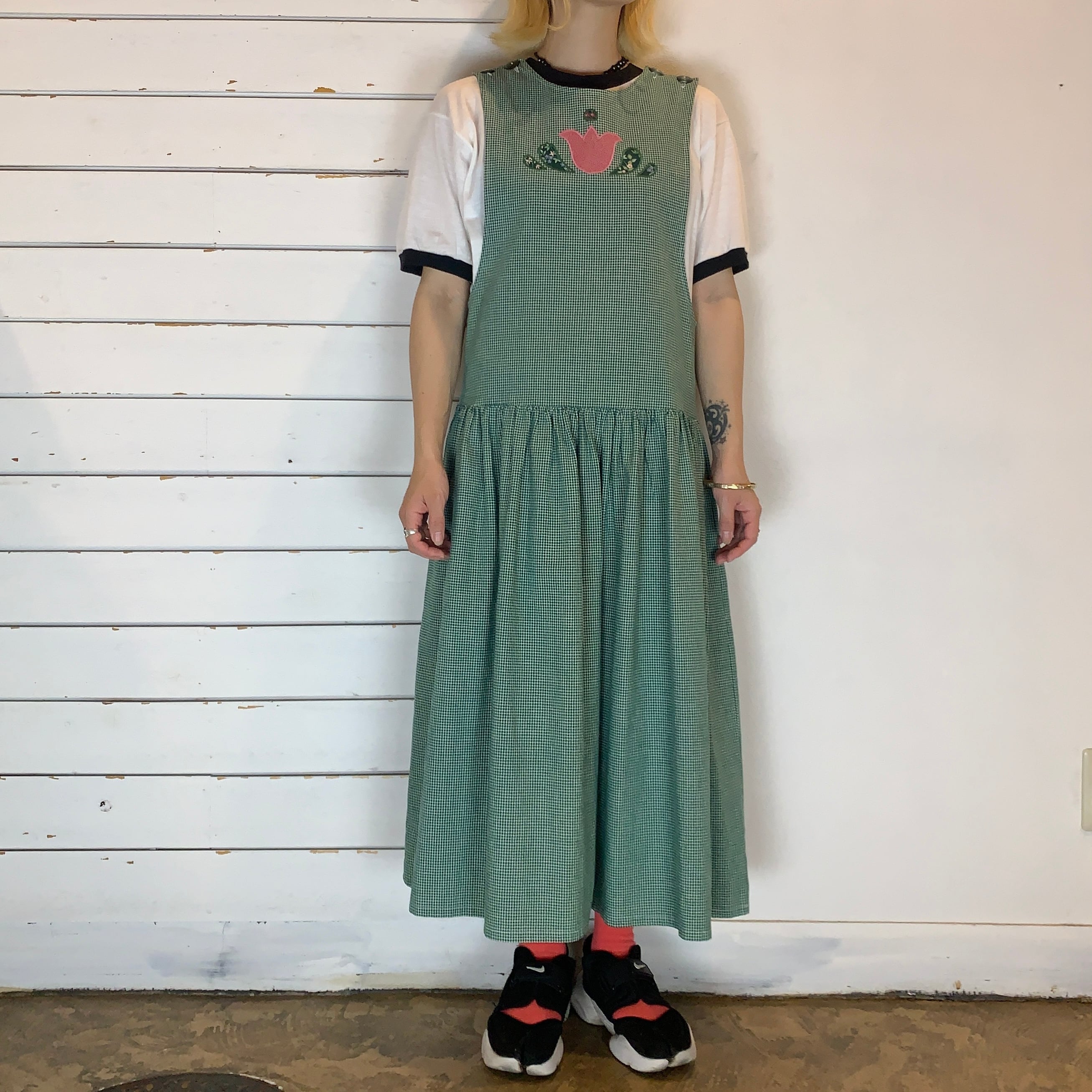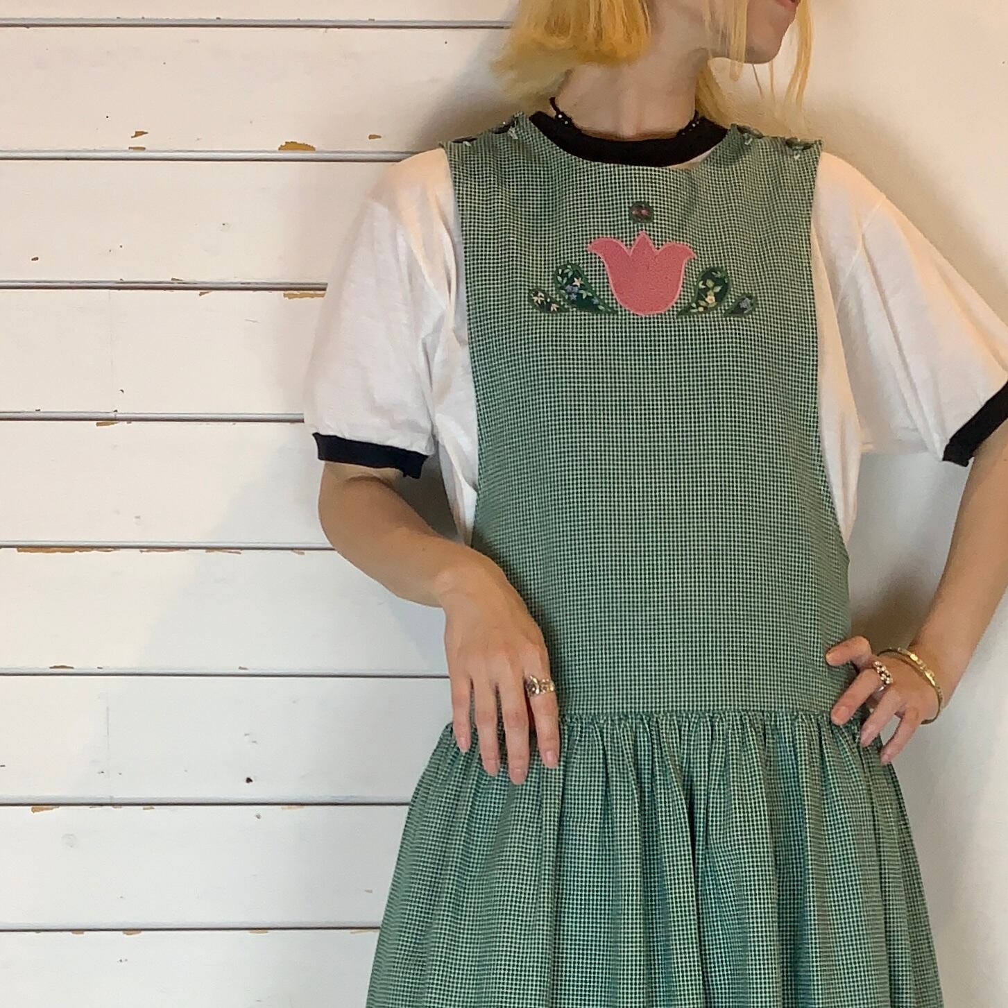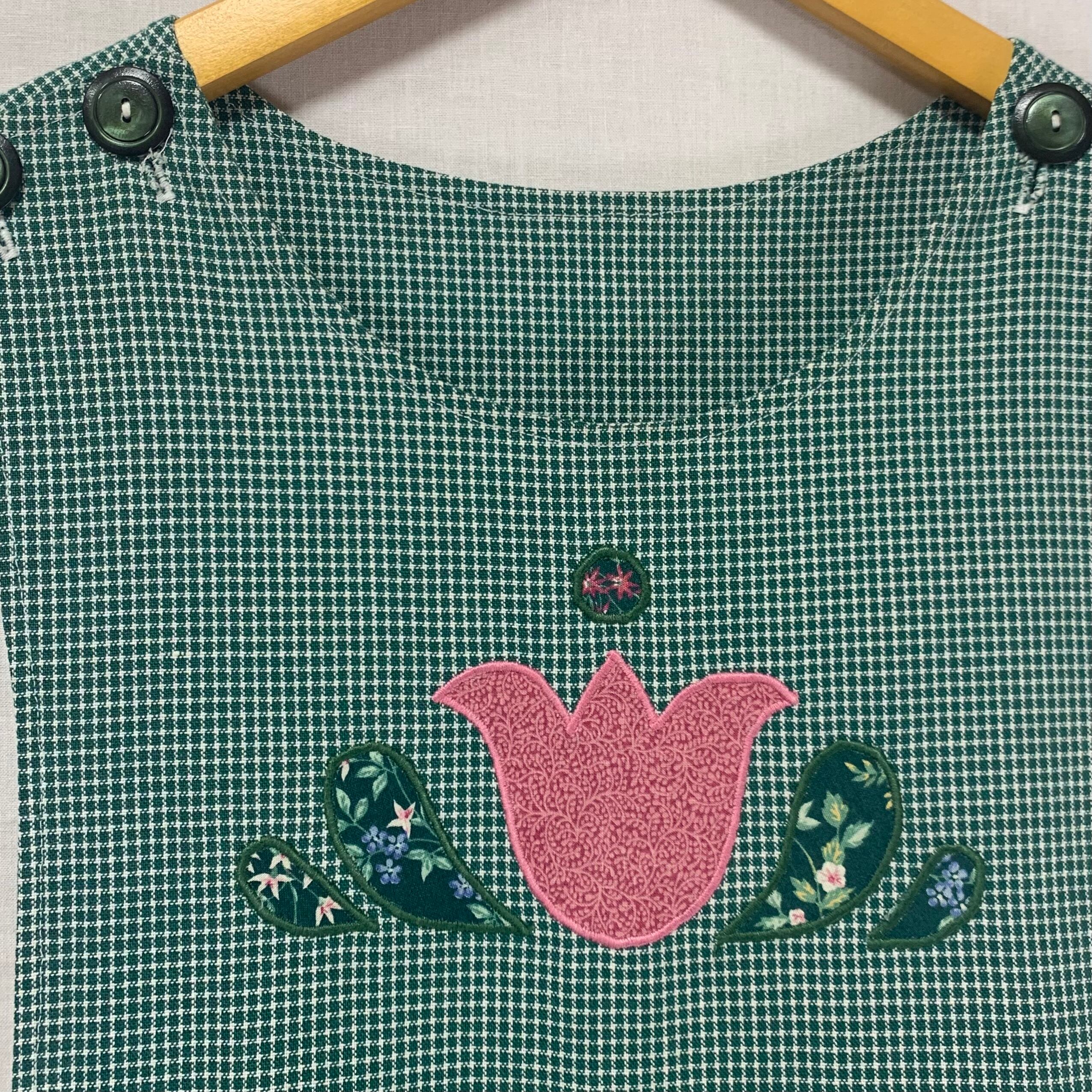細かなグリーンのギンガムチェックにお花アップリケがワンポイント❤︎