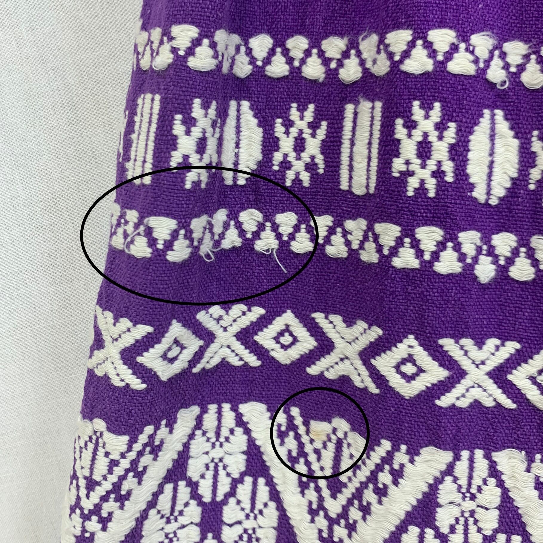 刺繍部分にシミ、ほつれ箇所が何箇所かございます。(写真12枚目〜)