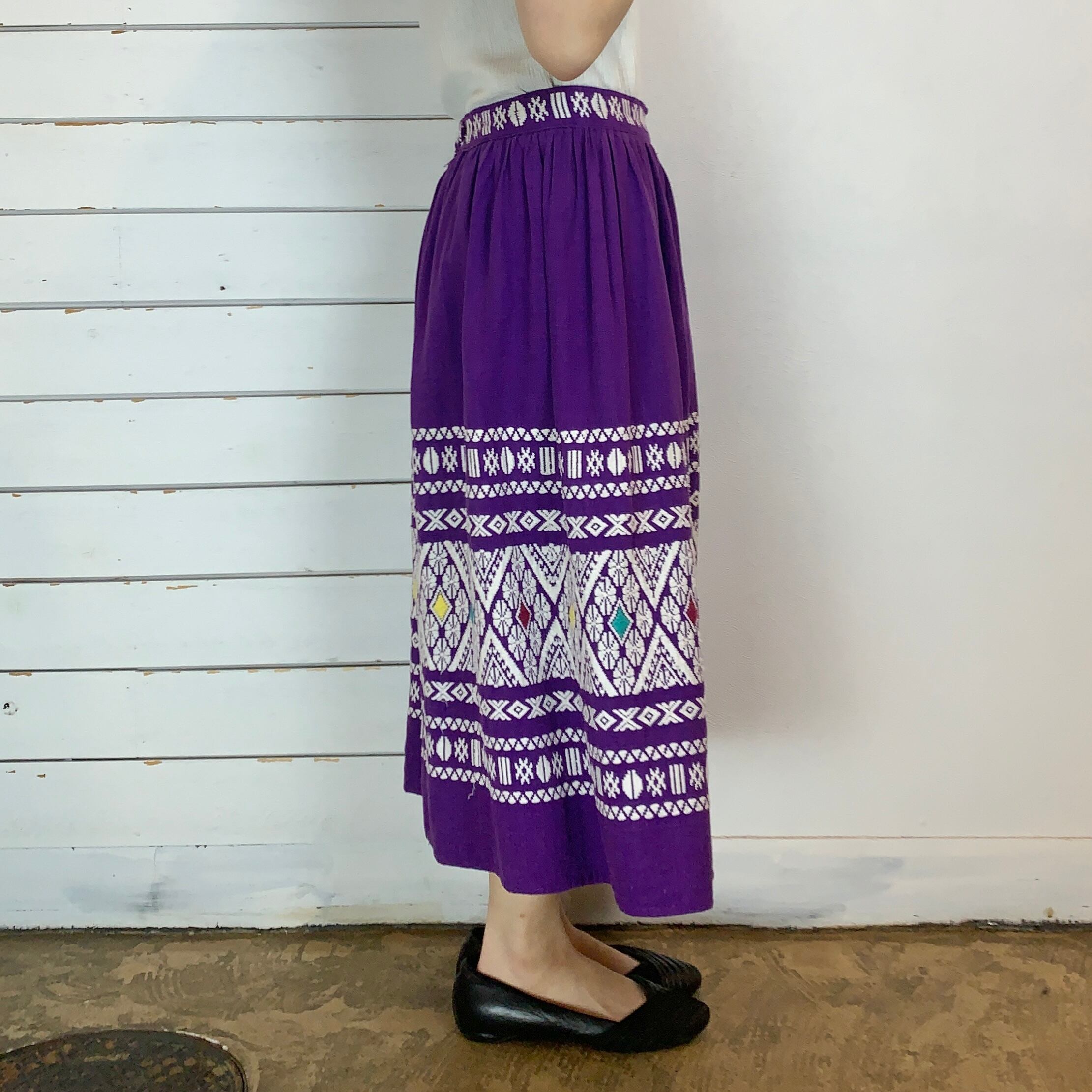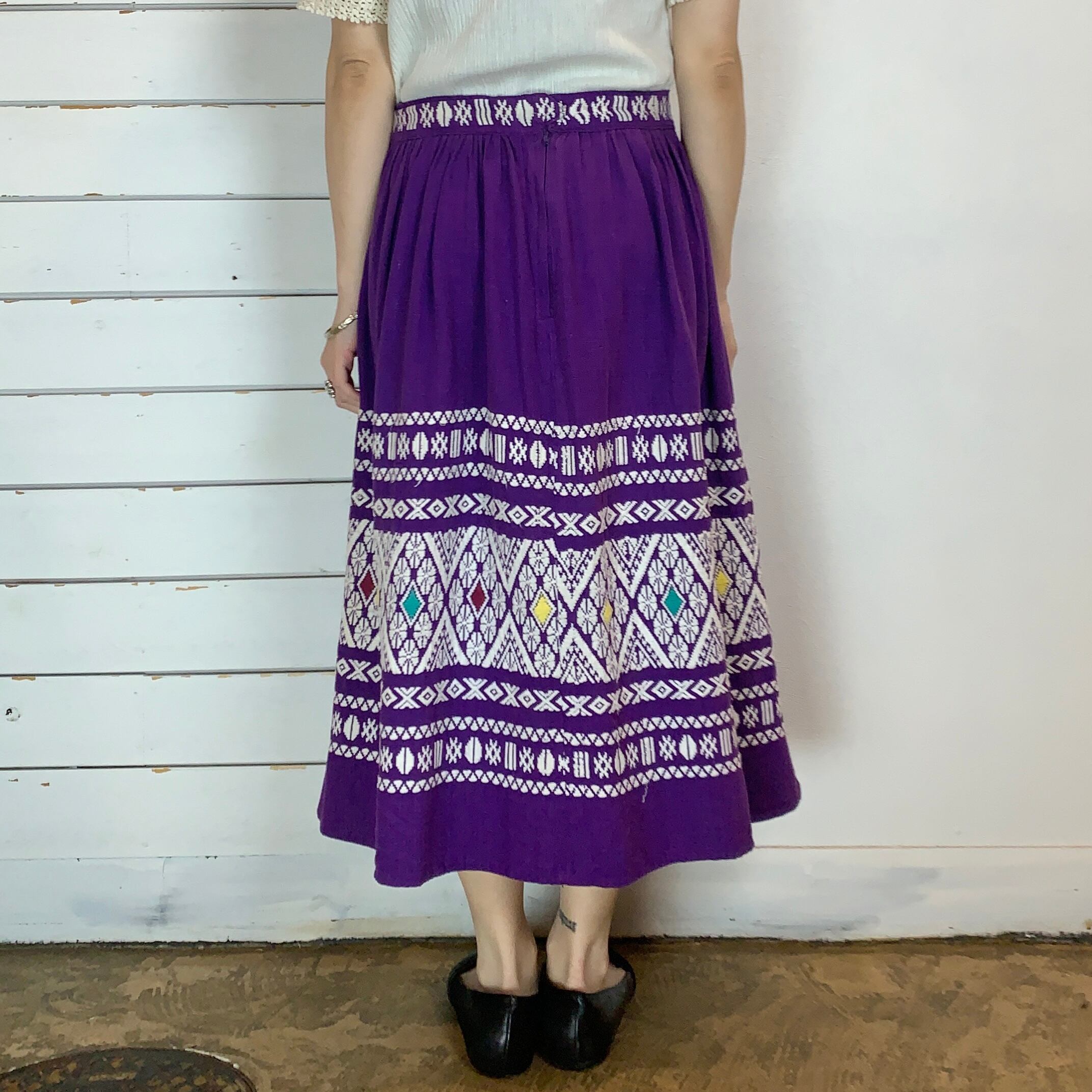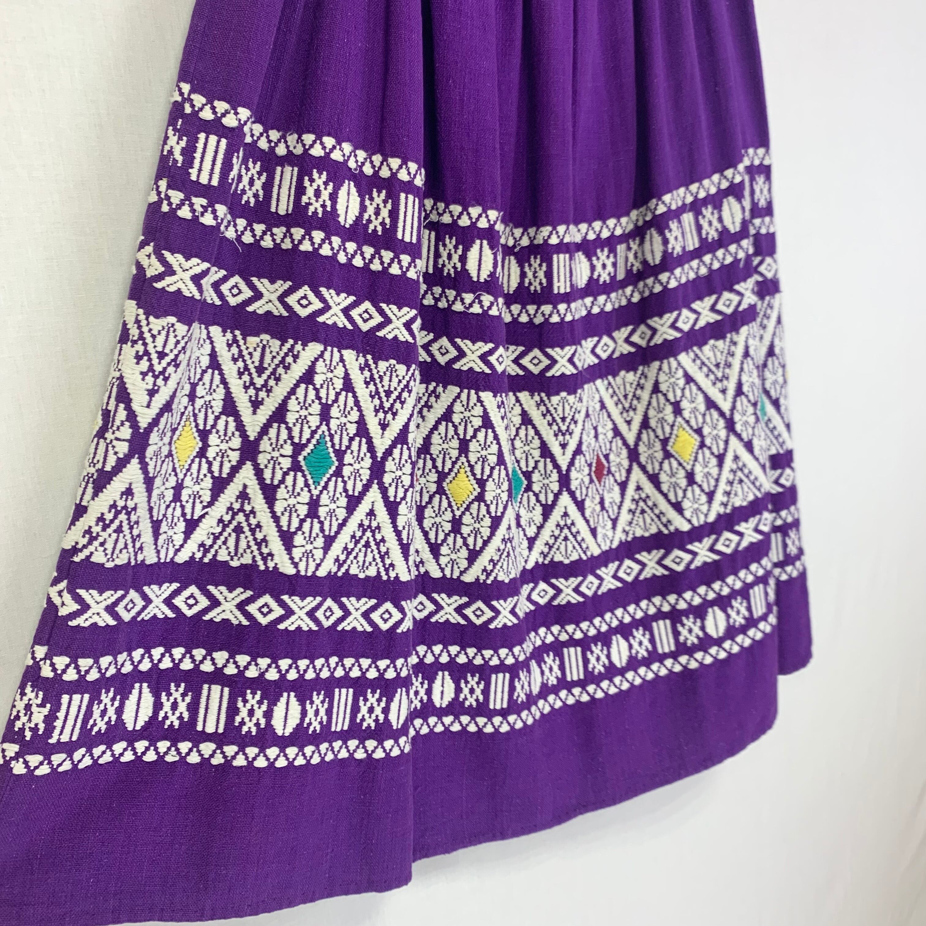 70s~ Guatemala embroidery skirt / purple