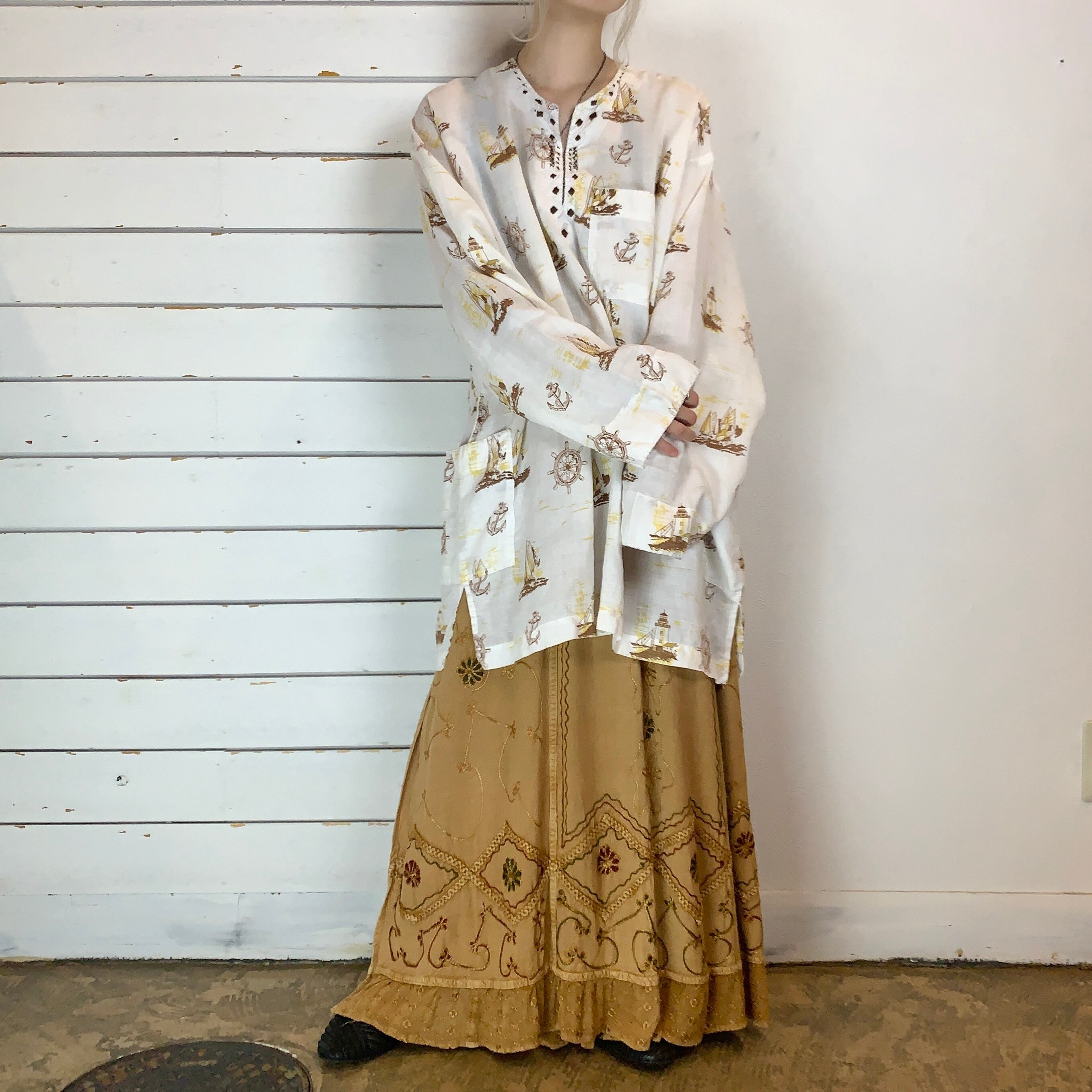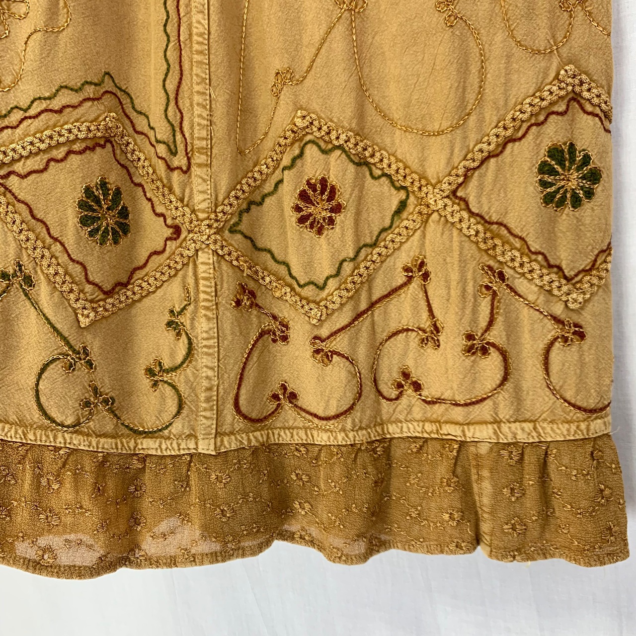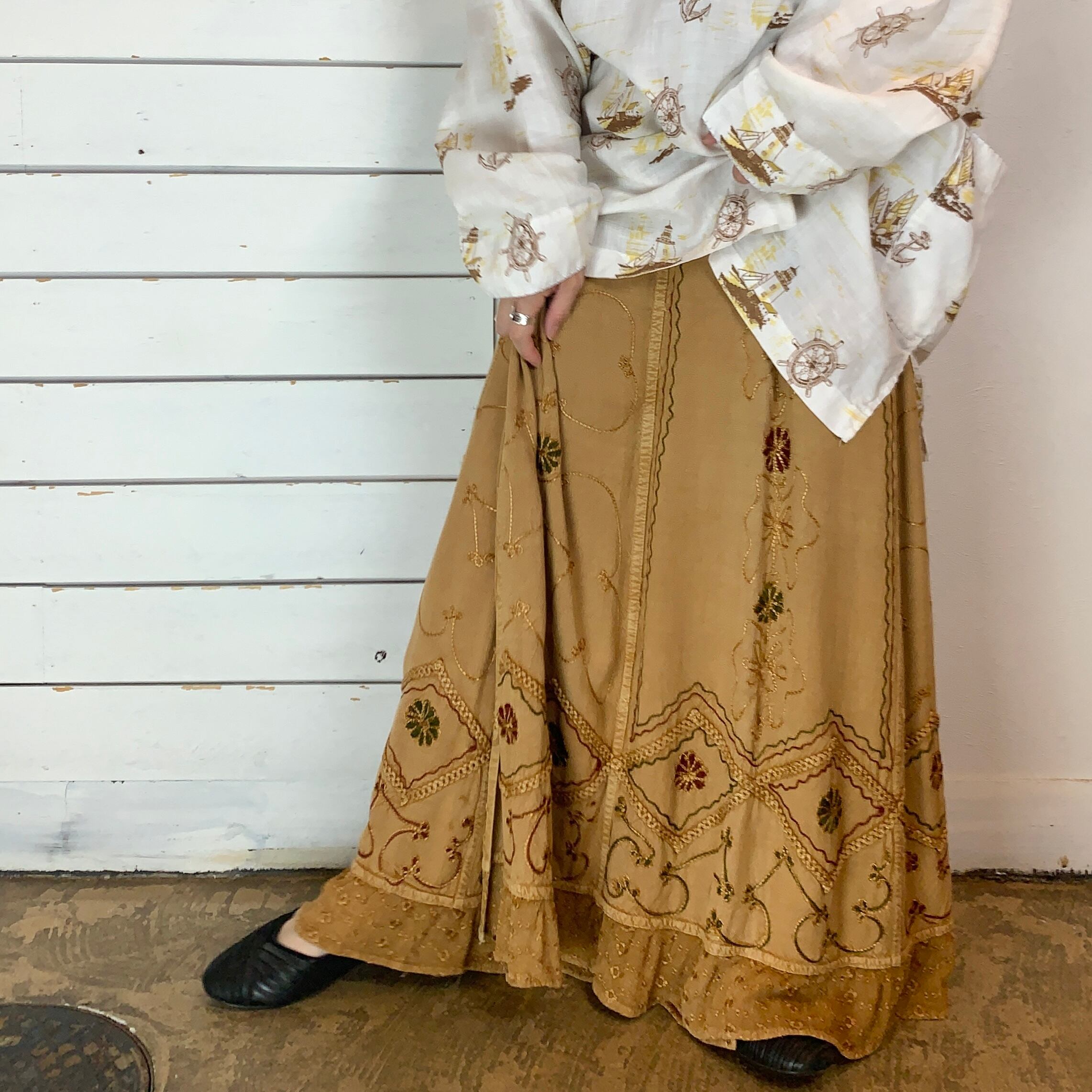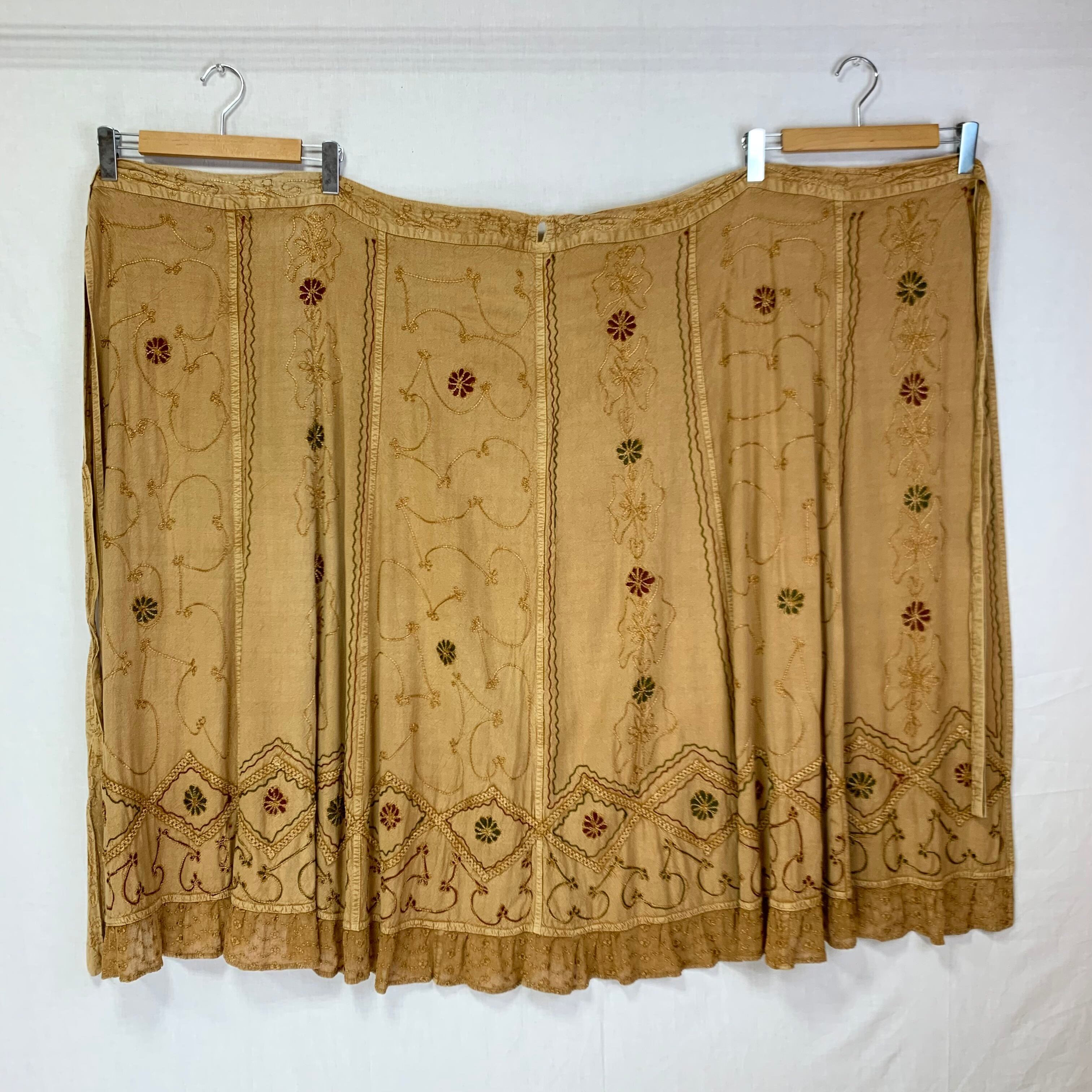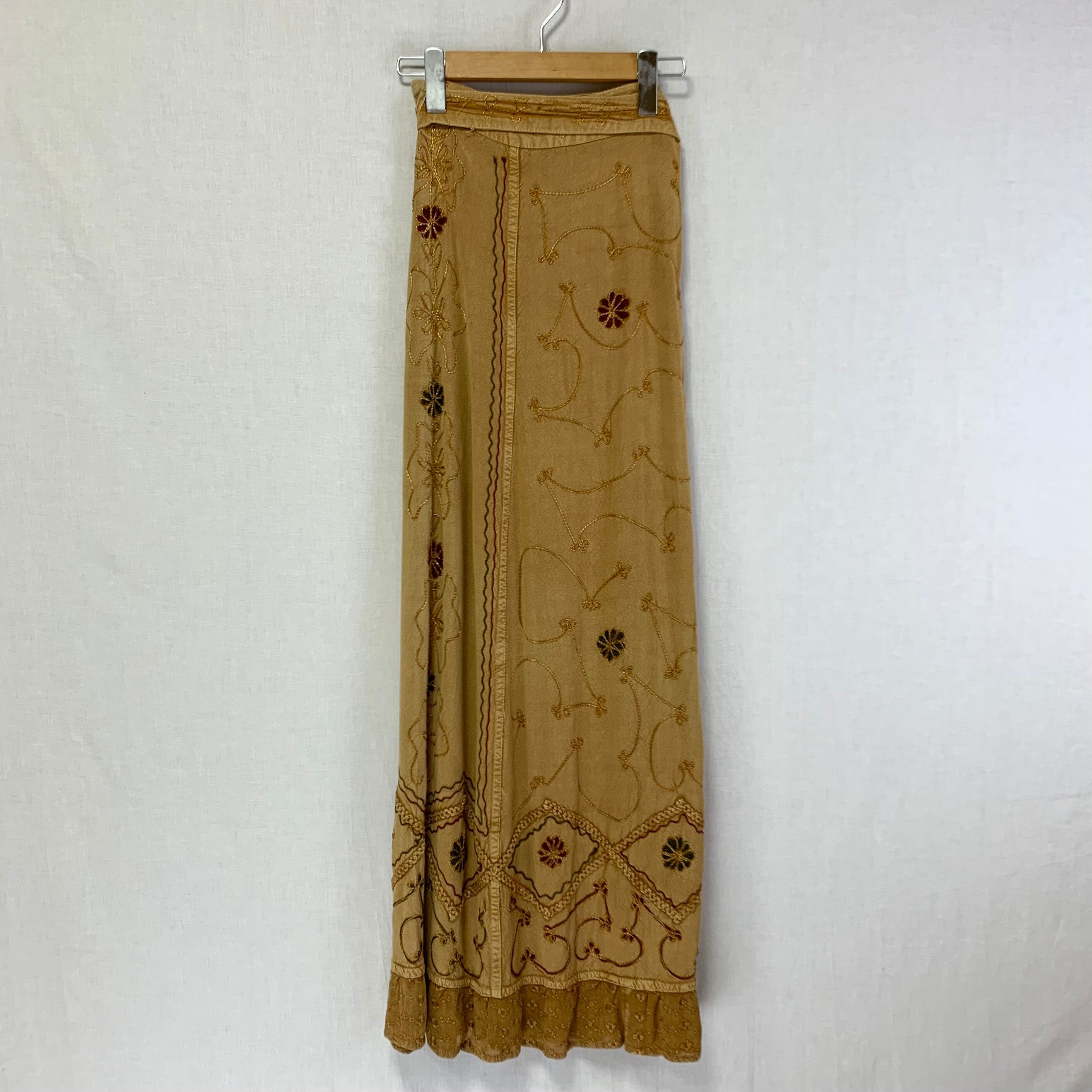 落ち着いたベージュのインド刺繍ラップスカート