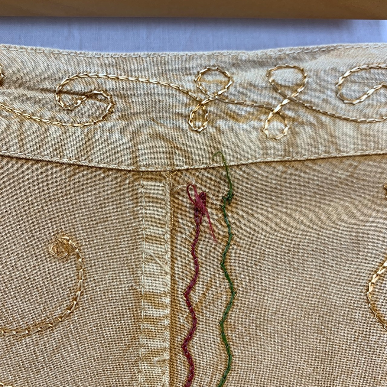 何ヶ所か刺繍抜けやほつれが見られます。(写真13枚目〜)